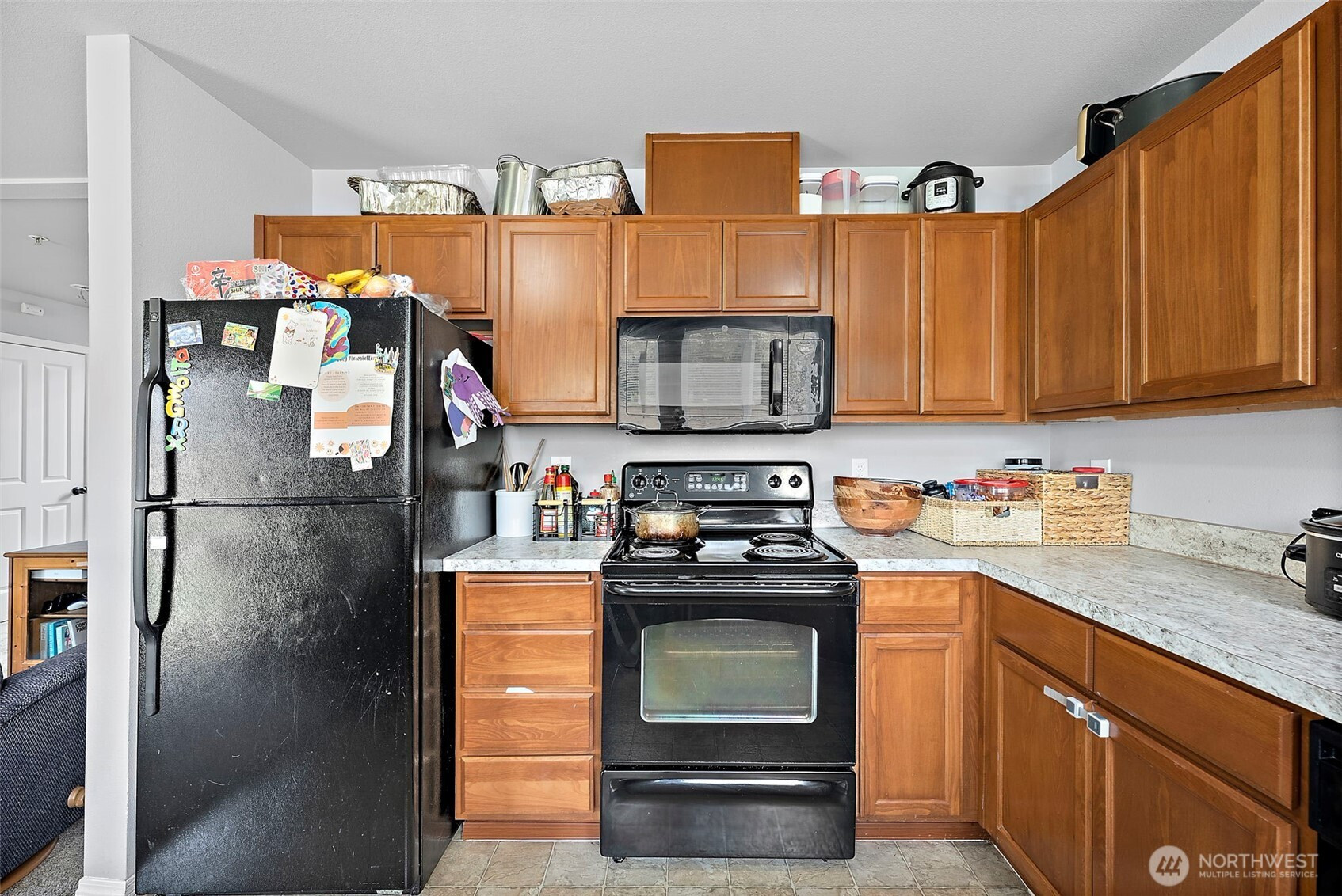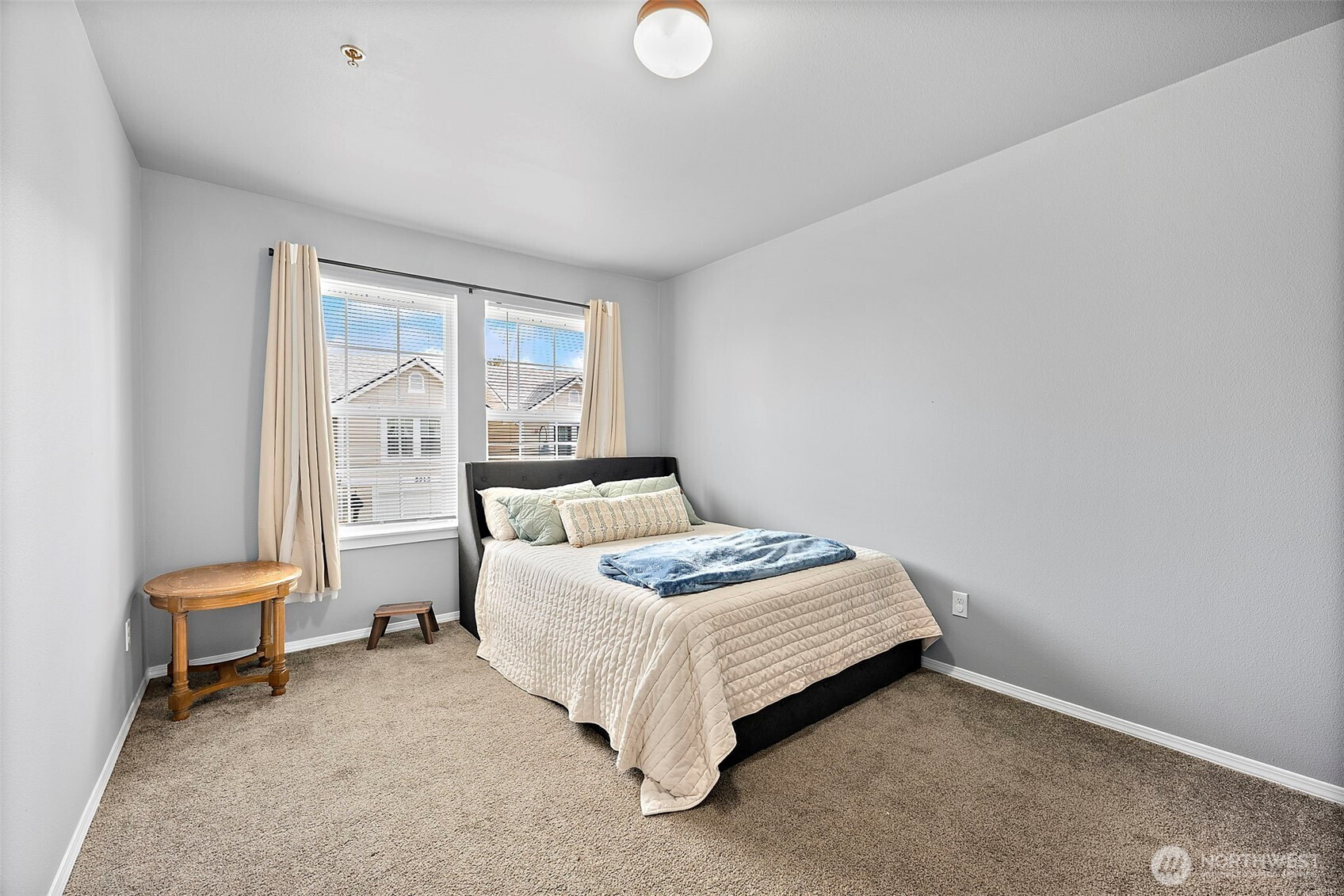 Welcome to Courtney Ridge Condominiums,. This home highlights 2-panel raised interior doors, tile in the entry and bathrooms, custom cabinetry, and window treatments throughout. The kitchen comes complete with a microwave hood, refrigerator, and dishwasher, complemented by upgraded lighting and hardware. A built-in security system adds peace of mind. Conveniently located just minutes from shopping, dining, and with easy access to downtown Puyallup and Tacoma, this condo blends style, comfort, and everyday convenience.
