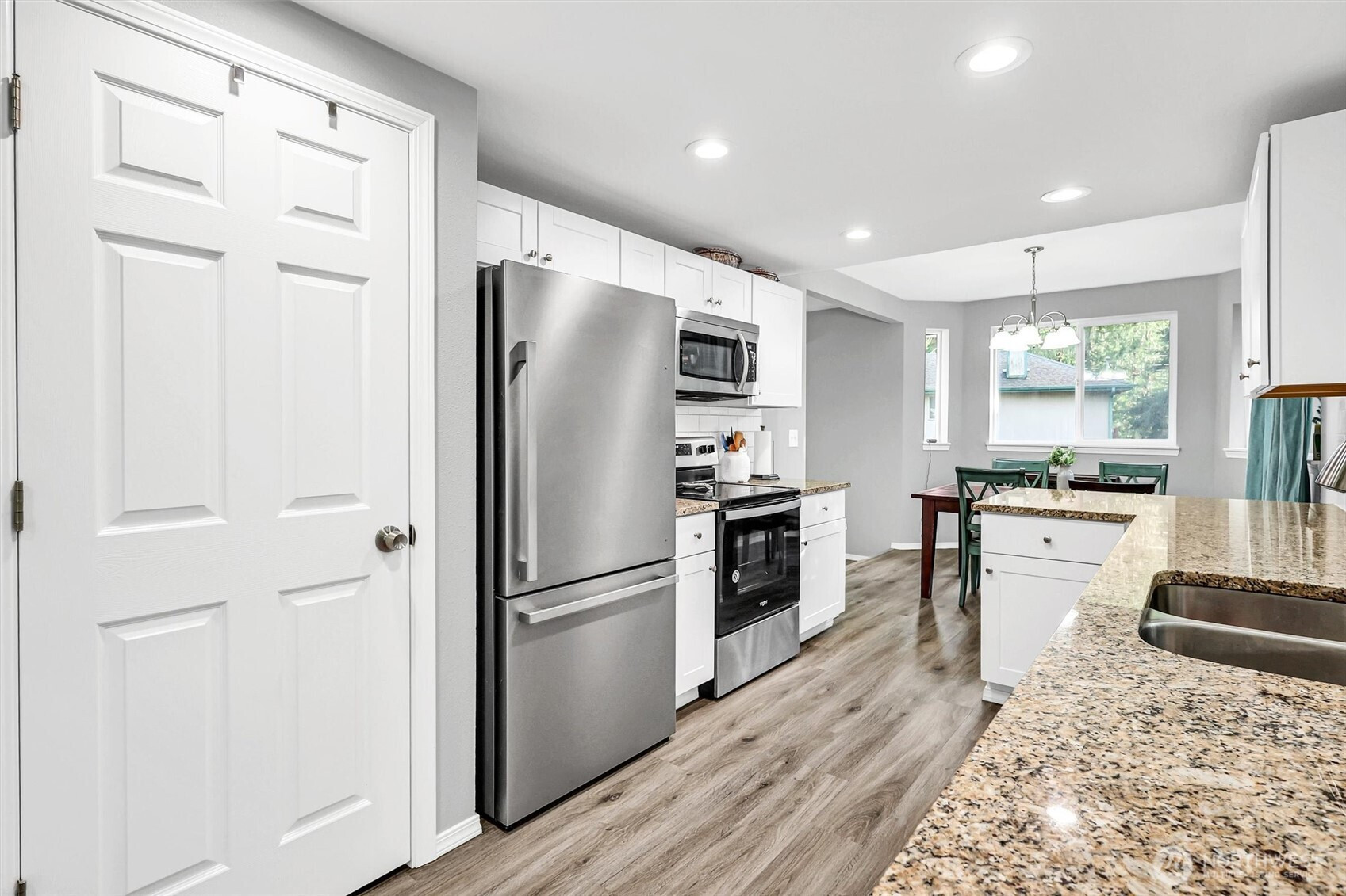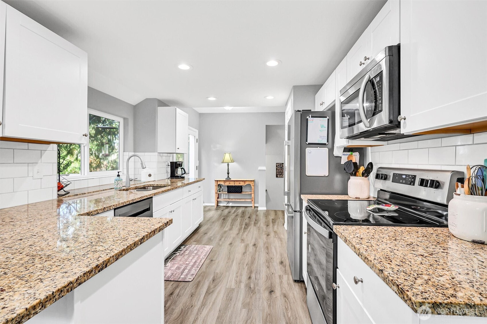 Great New Price!Welcome to this beautifully updated 2-story home with a daylight basement featuring 3 bdrms, a den, and 2.75 baths. The spacious living rm flows into a stunning kitchen w/ granite counters, undermount sink, full-height tile backsplash, stainless appliances & a pantry closet. Enjoy newer LVP flooring throughout the main & lower level. The daylight bsmt offers a lg bdrm, den, ¾ bath, laundry & storage. Primary suite incl. full bath, dual walk-in closets & lots of storage. All baths are updated & the lg 3rd bdrm features a charming window seat. Enjoy a lg deck, patio, fully fenced yard, circular driveway & 1-car garage. Updated heat/AC with mini splits in the living room & primary bdrm. Access to community park & boat launch!
