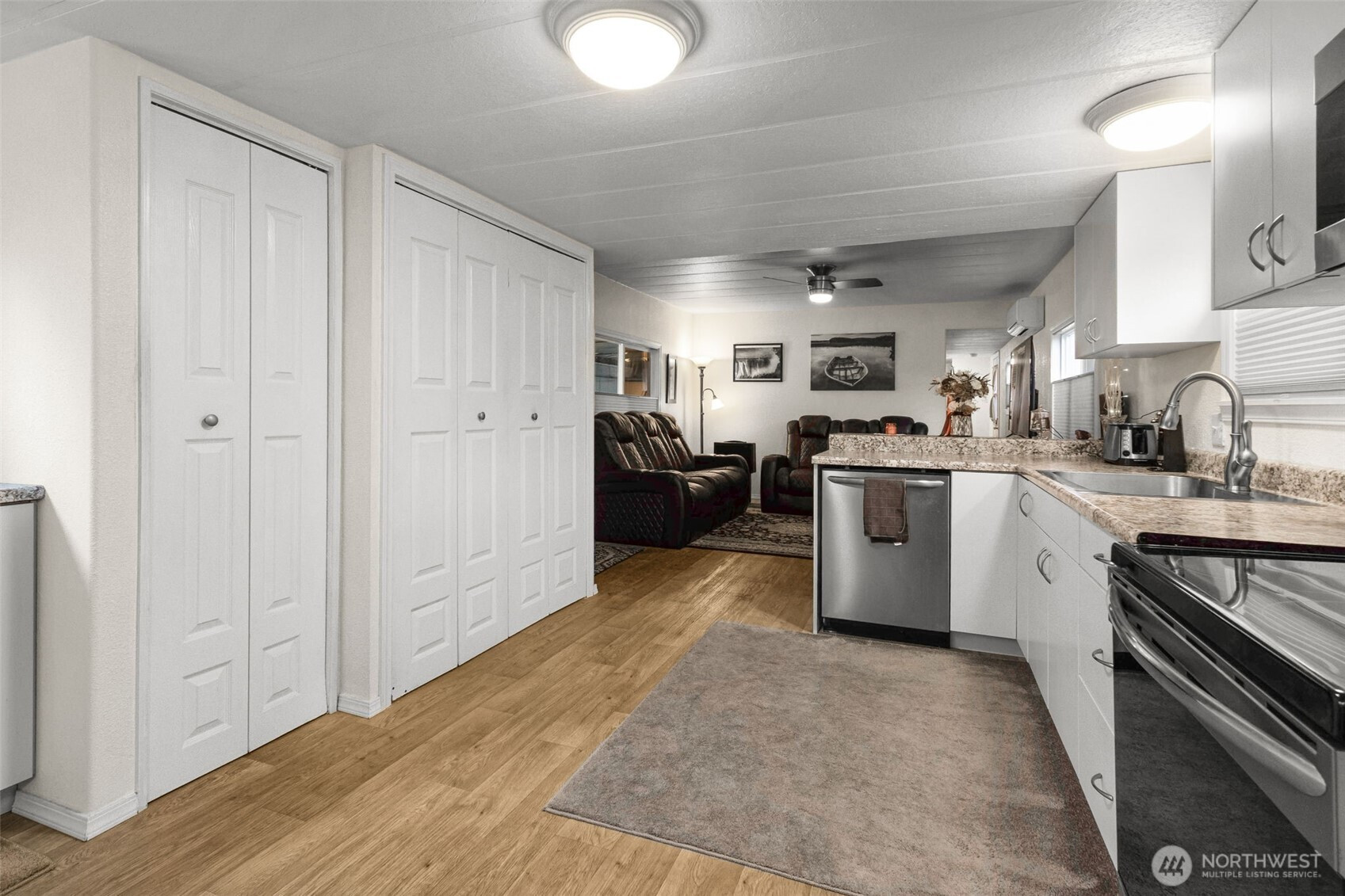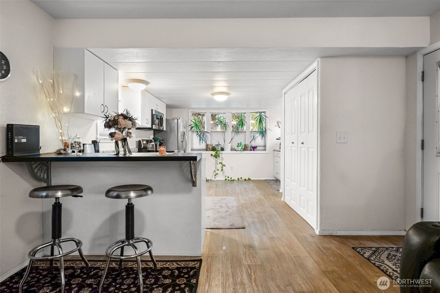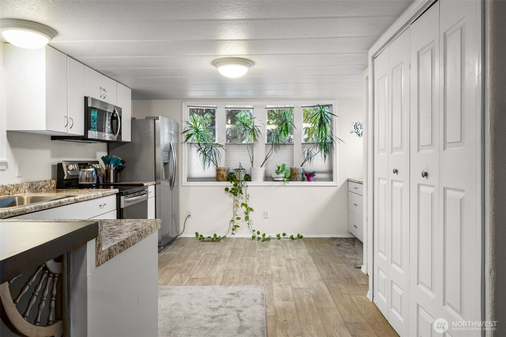 Welcome to this nicely updated and well-maintained home in the Crestview 55+ community. This affordable home offers many recent improvements, including a newer roof, updated insulation and drywall, low-maintenance flooring, and double-paned vinyl windows that bring in great natural light and create a bright, comfortable living space. Both the furnace and mini-split system (with A/C) have been replaced within the last few years. The spacious kitchen features stainless-steel appliances that all stay, while on-demand hot water adds everyday convenience. The bathroom includes a low step-in shower, and the primary bedroom offers direct access to the back deck — a perfect spot to enjoy your morning coffee or soak up some afternoon sun. Crestview is conveniently located near groceries, libraries, and restaurants in both Summit and downtown Puyallup. You’ll enjoy easy access to I-5, SR-512, and SR-167 while still having a quiet, country feel. Space rent $850 per month, and pets under 20 pounds are allowed with park approval.