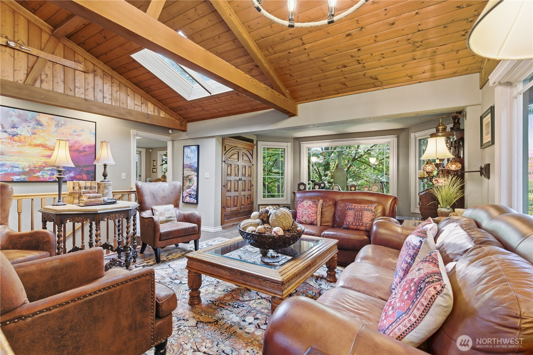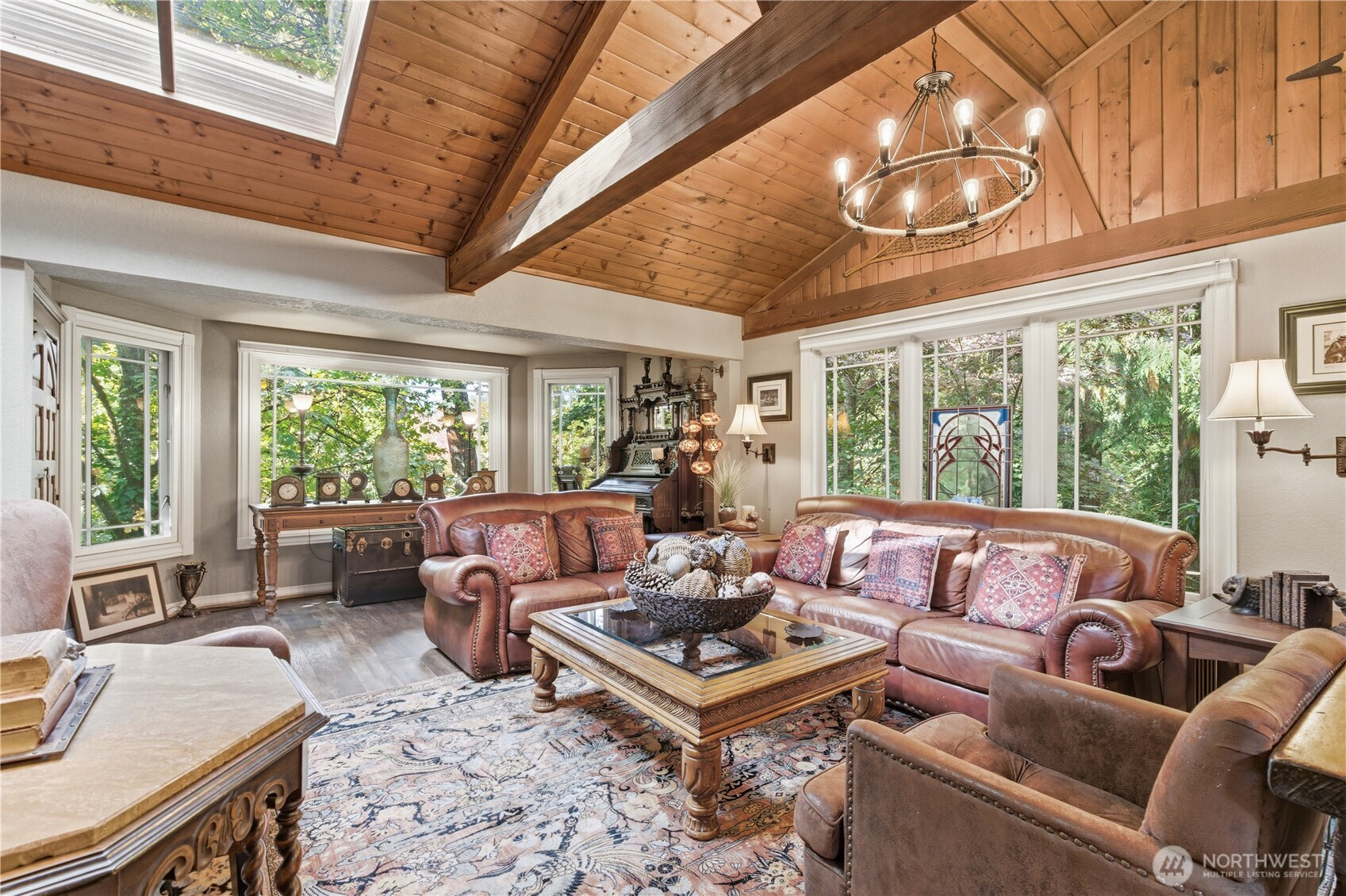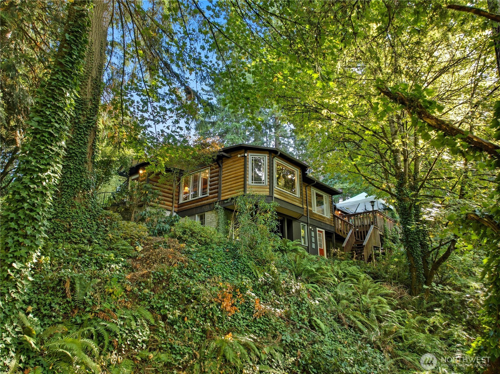 Step into the timeless charm of this log-sided home, perfectly perched above a year-round stream and surrounded by a canopy of trees. Thoughtfully sited to capture wooded views from almost every window, this home blends rustic character with inviting warmth. Inside, old world charm and beauty unfold with open-beamed ceilings, a dramatic rock fireplace, and warm details that create a cozy yet elegant atmosphere. Picture evenings gathered around the fire, mornings with coffee on the back deck, and afternoons exploring your wooded parcel. The sound of the stream and the whisper of the trees set a peaceful rhythm, while the home’s design celebrates both comfort and nature. The detached garage includes an attached sanctuary room, ideal for a studio, home office, or peaceful retreat. A rare opportunity to own a one-of-a-kind property that feels like a woodland getaway yet remains close to town conveniences. This home offers a lifestyle defined by tranquility and is a place where rustic character and natural beauty come together in harmony. Perfect for those seeking authenticity, serenity, and a place that tells a story of its own.