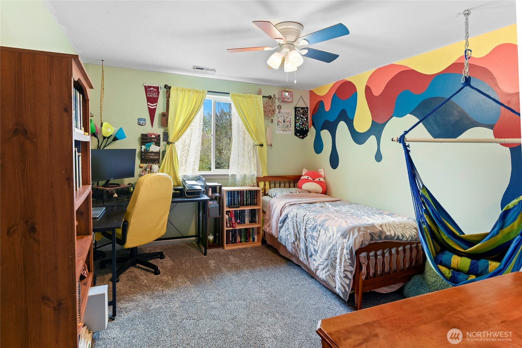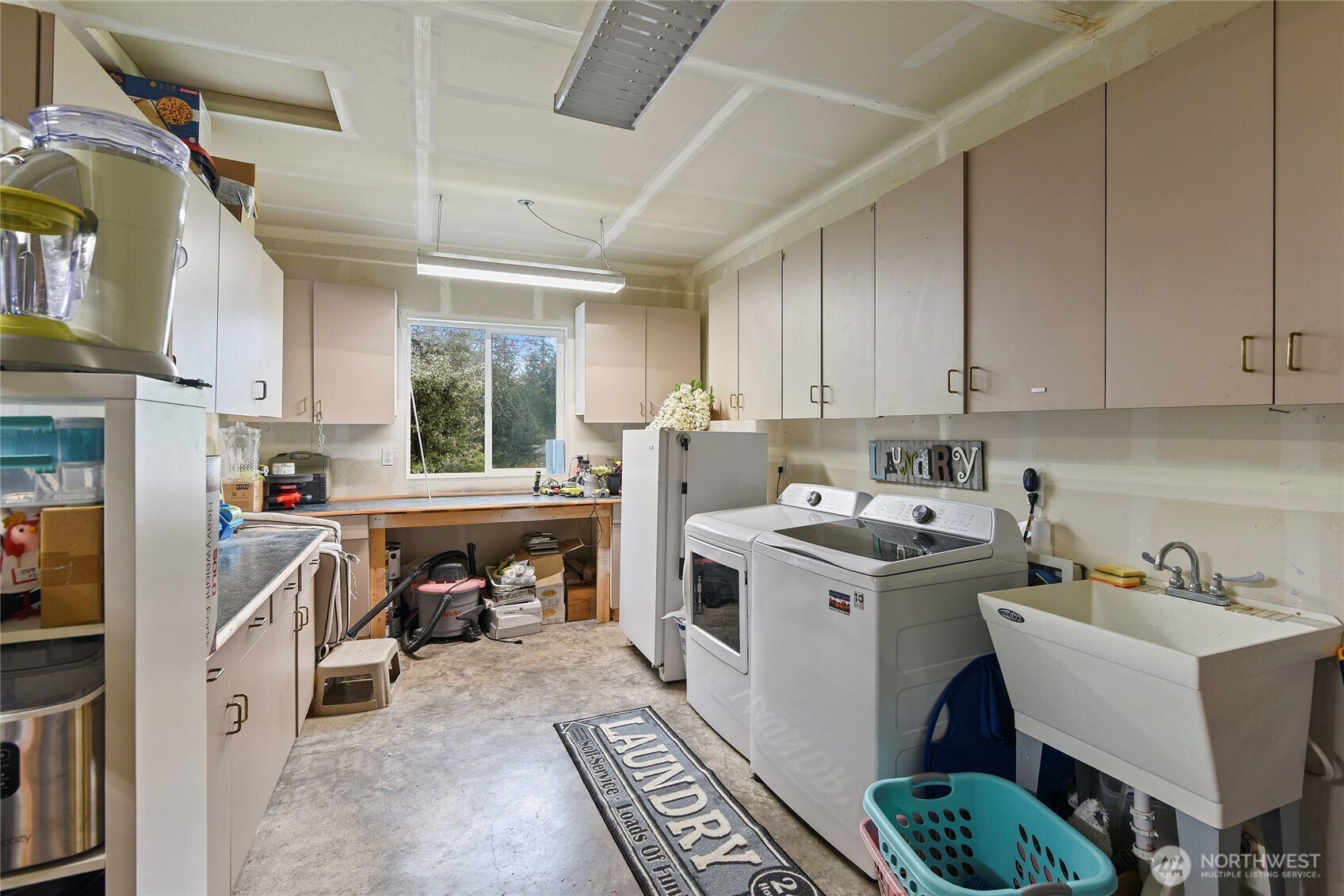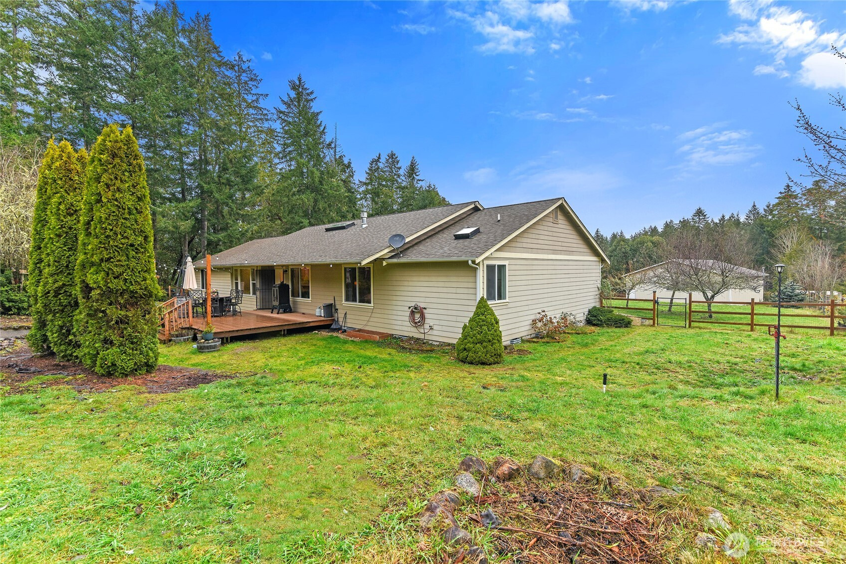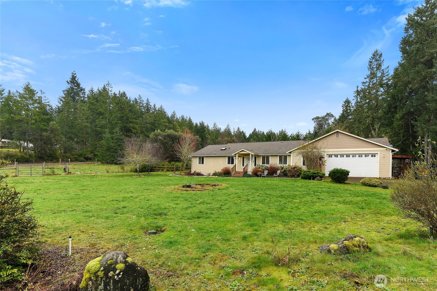 If you're looking for a multi-generational, single level ranch style home on acreage with a large shop, the search is over! Come discover this expansive rambler, with 3 sizable bedrooms, an office and an attached mother in law suite with its own kitchen, bathroom and entrance! This 2.3 acre lot is fenced and cross fenced, with a gated entry, to allow your furry friends to securely roam the property. With cherry trees, apple trees and sunny garden space, this property could be the start of your hobby farm dreams! At the house, enter through the front door to a tiled entryway and appreciate the vaulted ceilings and plentiful light coming through from the back yard. Notice the office or flex room situated to the right as you walk in, with a pass through door to the kitchen and mud room that leads to the oversized garage and utility room. The open concept living room and kitchen allow for easy entertaining and time with loved ones. Gas fireplace keeps the house cozy in the winter and the heat pump A/C keeps it cool in the summer. The back deck opens up to a private yard with stone pond and waterfall feature for added peace and relaxation. Back inside, you'll find 3 more bedrooms with an expansive primary suite with a fully update 5 piece bath you'll want to retreat to after a busy day. Outside, the 1900 sqft shop with a separate 200amp meter provides room for all of your extra curricular activities. This rambler in the countryside is waiting for you.
