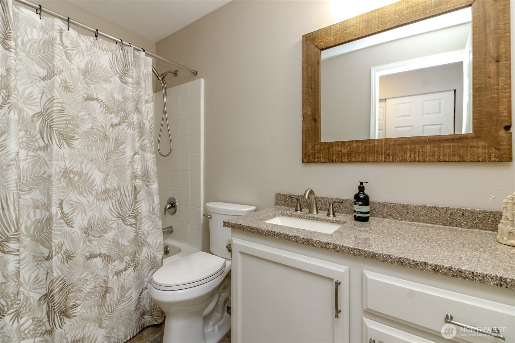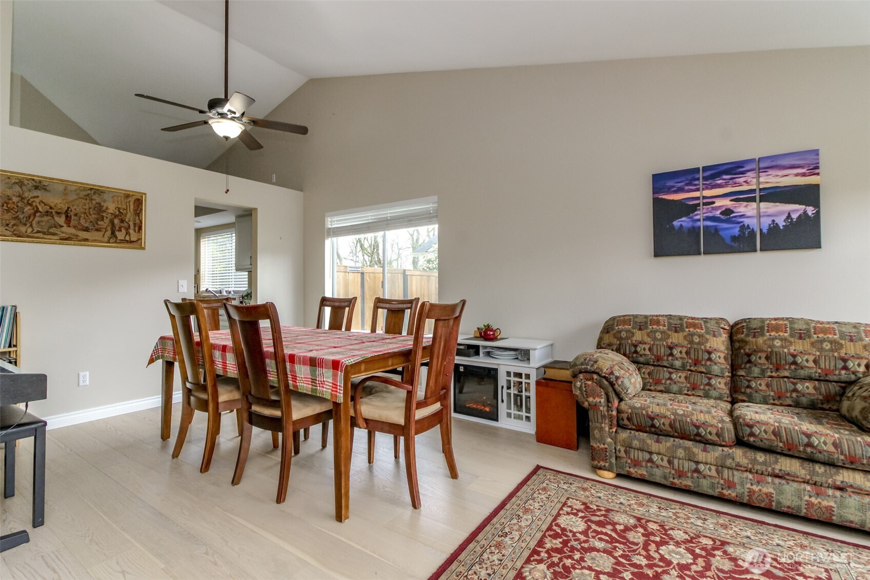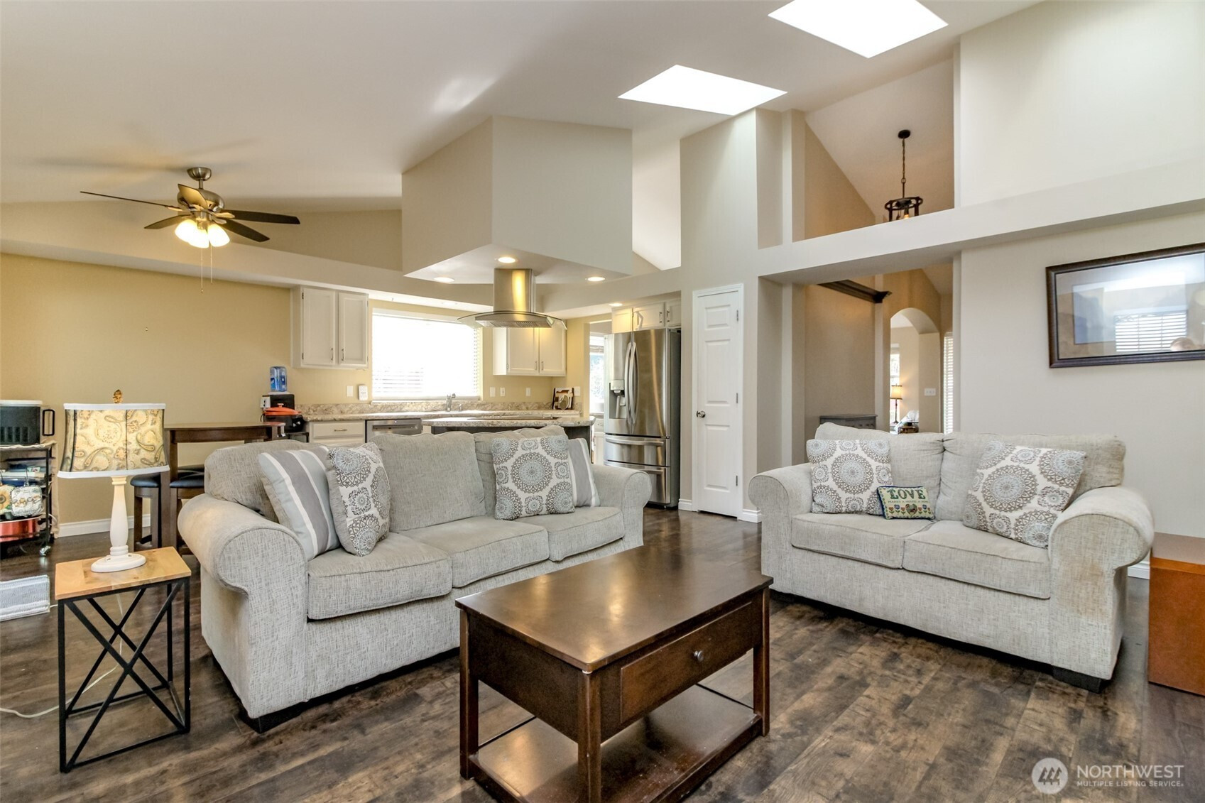 Welcome to this beautifully maintained rambler nestled against a serene greenbelt, offering privacy and a peaceful, park-like setting. The lush grounds feature mature landscaping that creates a truly inviting outdoor retreat. Inside, the open-concept floor plan is ideal for both everyday living and effortless entertaining. The chef’s kitchen boasts abundant counter space, ample cabinetry, and a functional workspace, seamlessly flowing into the dining area with direct access to the deck—perfect for enjoying views of the private backyard. The living room is warm and welcoming with vaulted ceilings and a cozy gas fireplace, while the versatile family room provides endless possibilities for relaxation, work, or play. The spacious primary suite offers a true retreat with a generous layout, walk-in closet, and a luxurious 5-piece bathroom. Two additional guest bedrooms and a beautiful guest bath provide comfort and convenience for all. Recent updates include new plumbing and new flooring, adding modern value and peace of mind. Located in the desirable Tamerlane community, this home is tucked away yet conveniently close to shopping, recreation, JBLM, Spanaway Lake, golf, parks, and major freeways. A perfect blend of comfort, functionality, and location—this home is ready to impress.