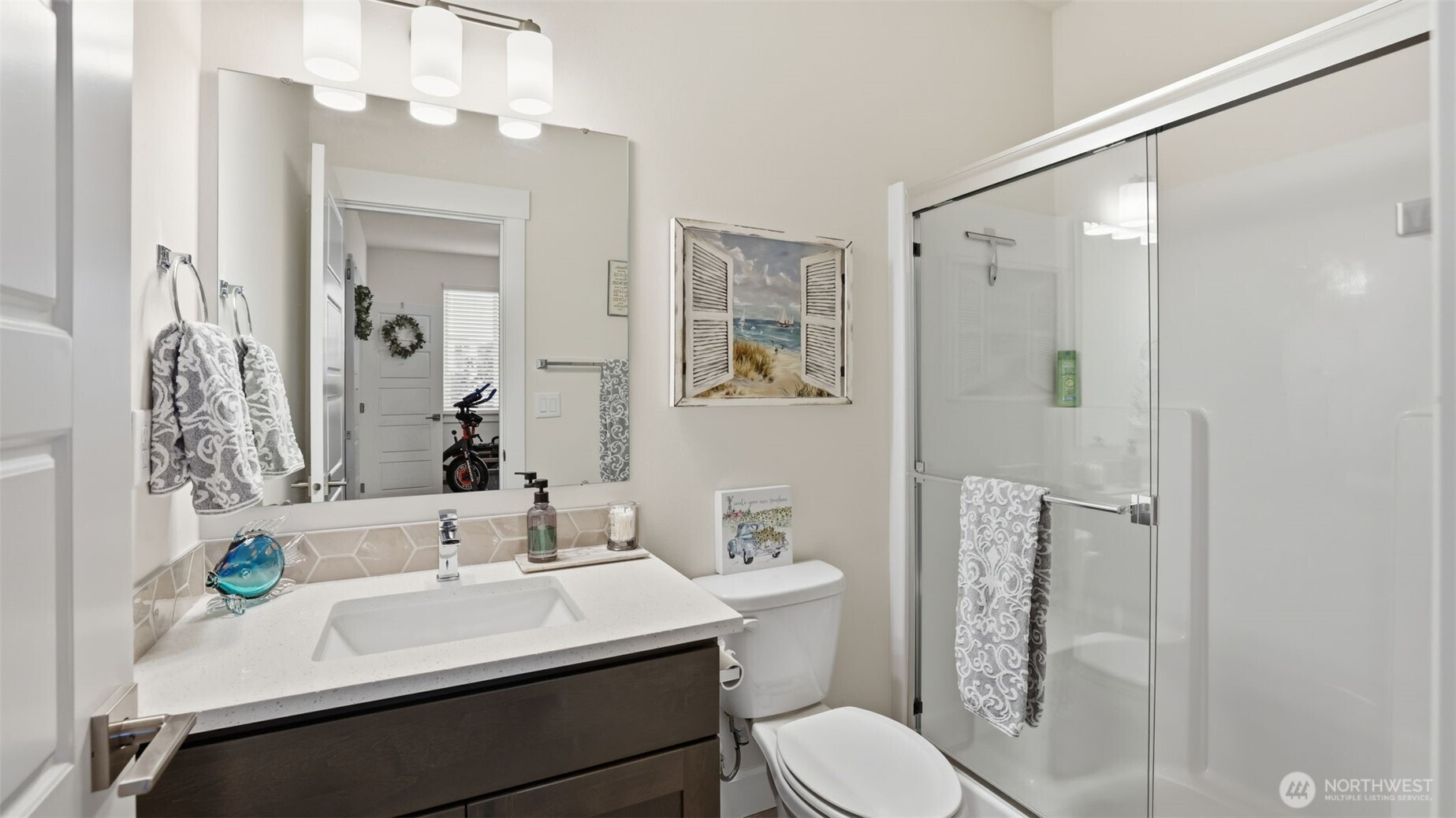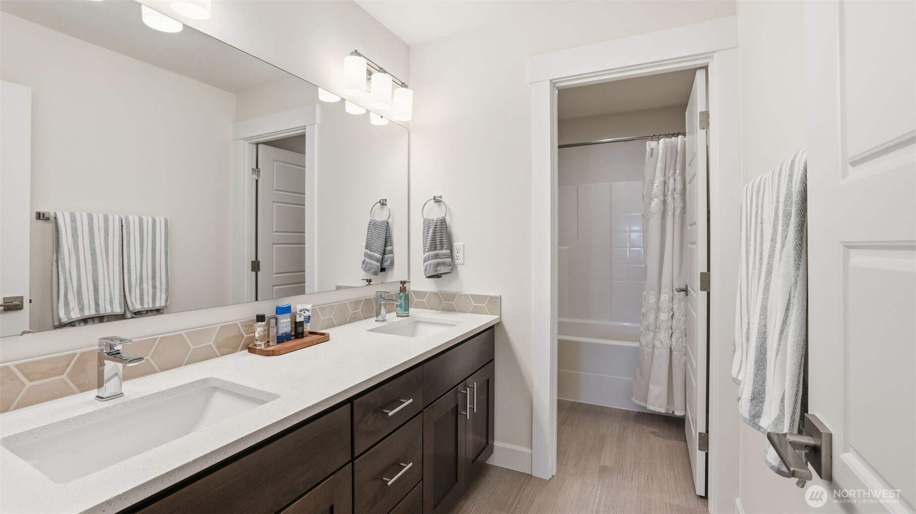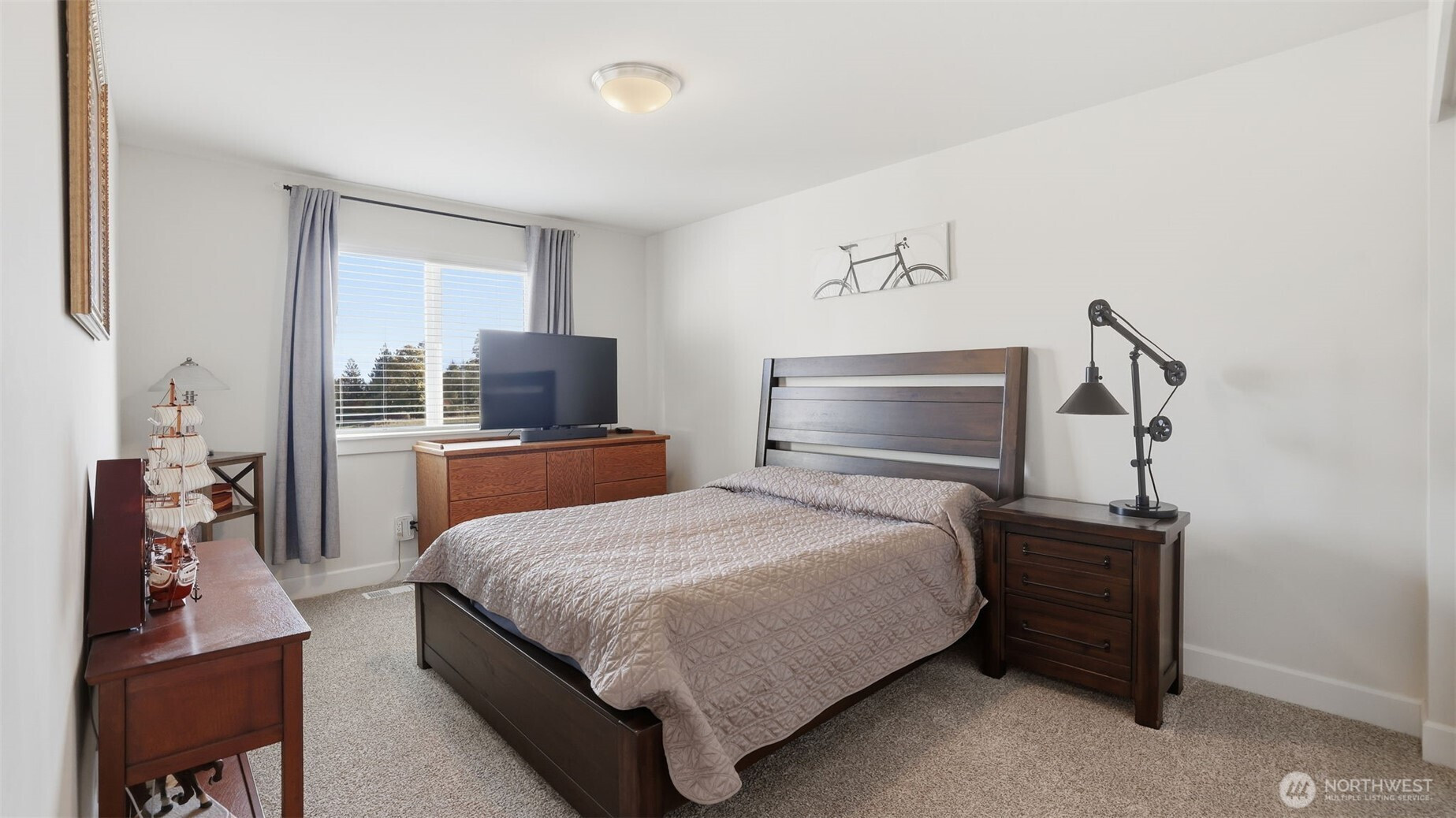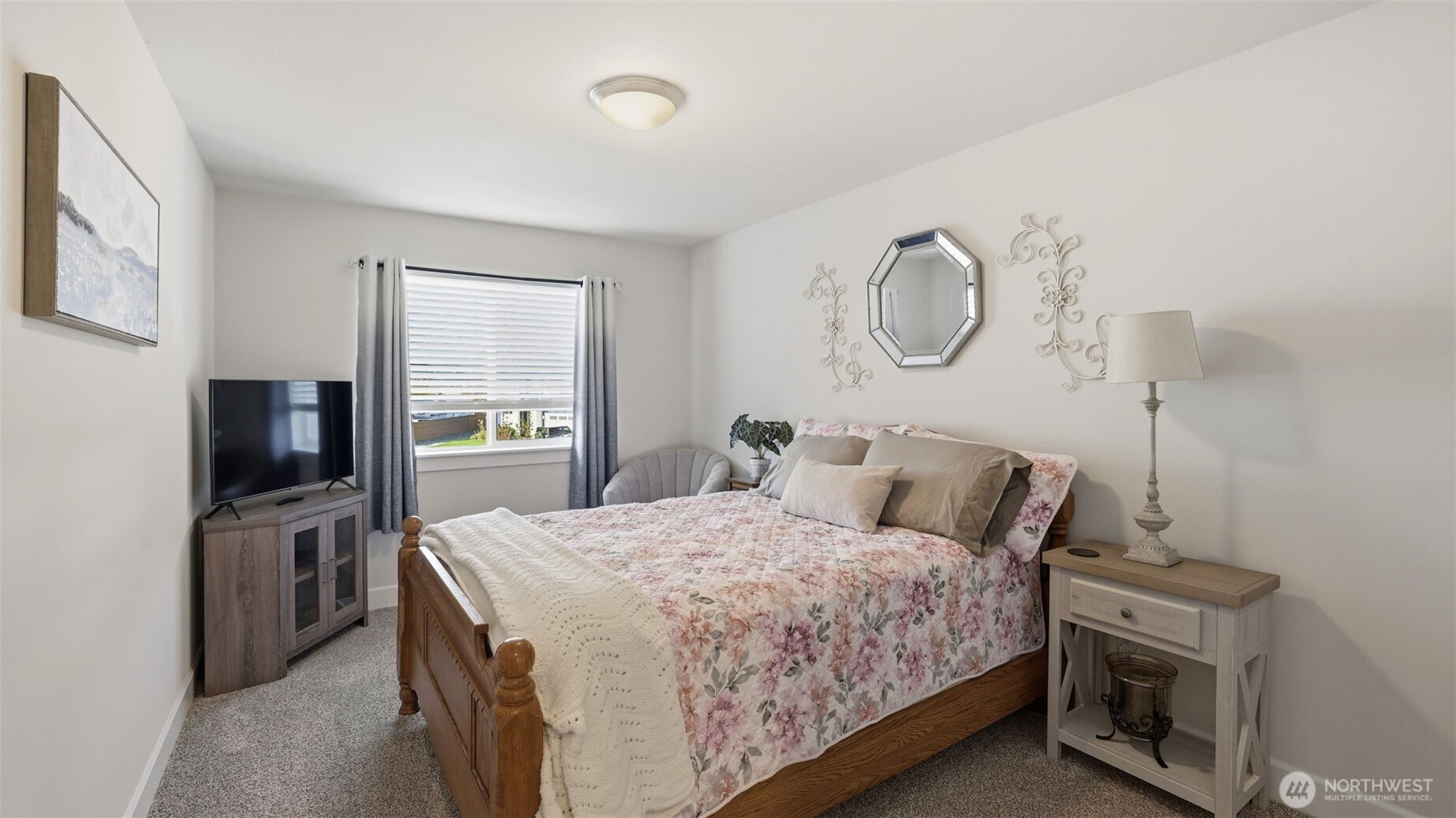 Situated on a prime lot in the beautiful community of Elk Run, this home features incredible views of Mt Rainier. An innovative home design features a main floor Guest Suite w/walk-in closet & private bath. Open concept living with Chef's Kitchen, overlooking the spacious Great Room which features a gas FP. Enjoy outdoor living w/ the oversized covered patio, a beautifully landscaped backyard & views of Mt. Rainier. Features include staircase w/ modern rod iron railing, 2" faux wood blinds, quartz slab counter tops, gas cooktop, walk-in pantry, ceiling fans and more! Upstairs Leisure Room, Tranquil Primary Suite w/ 5PC Bath, & 3 additional bedrooms. 3 car tandem garage and EV charging. Fully fenced yard and stylish outbuilding.