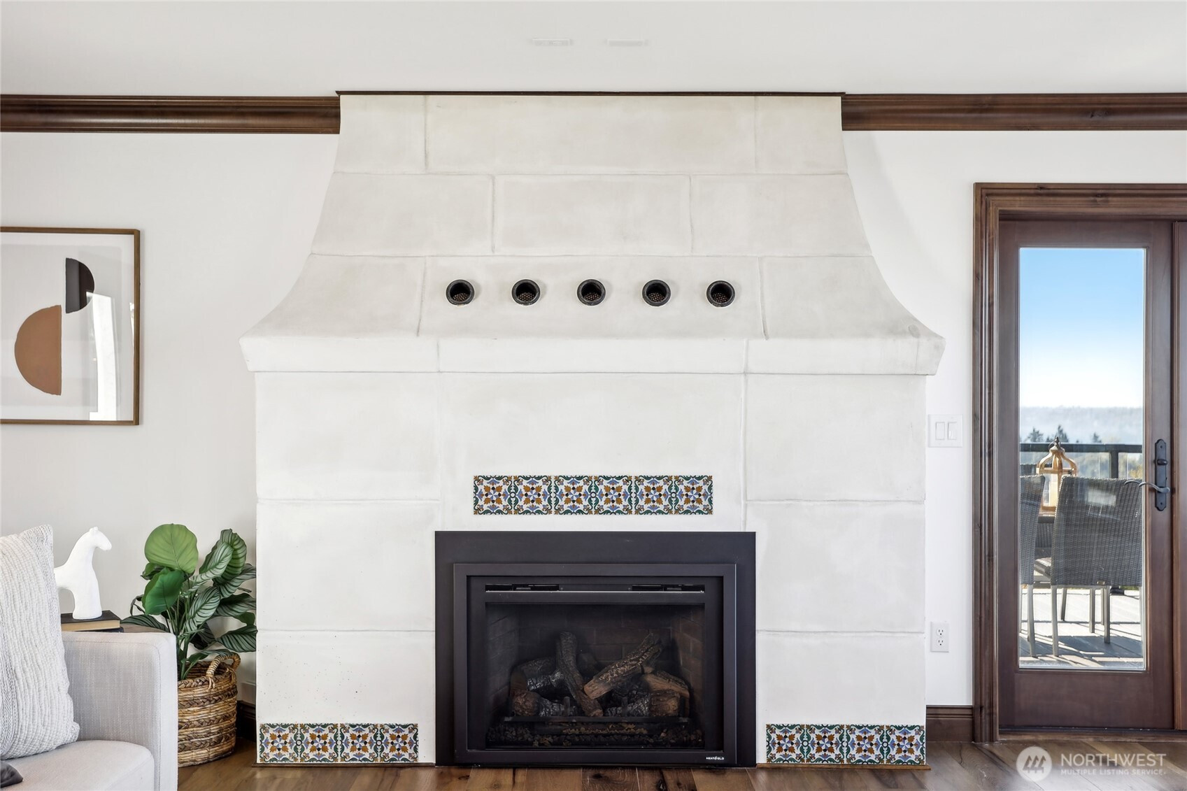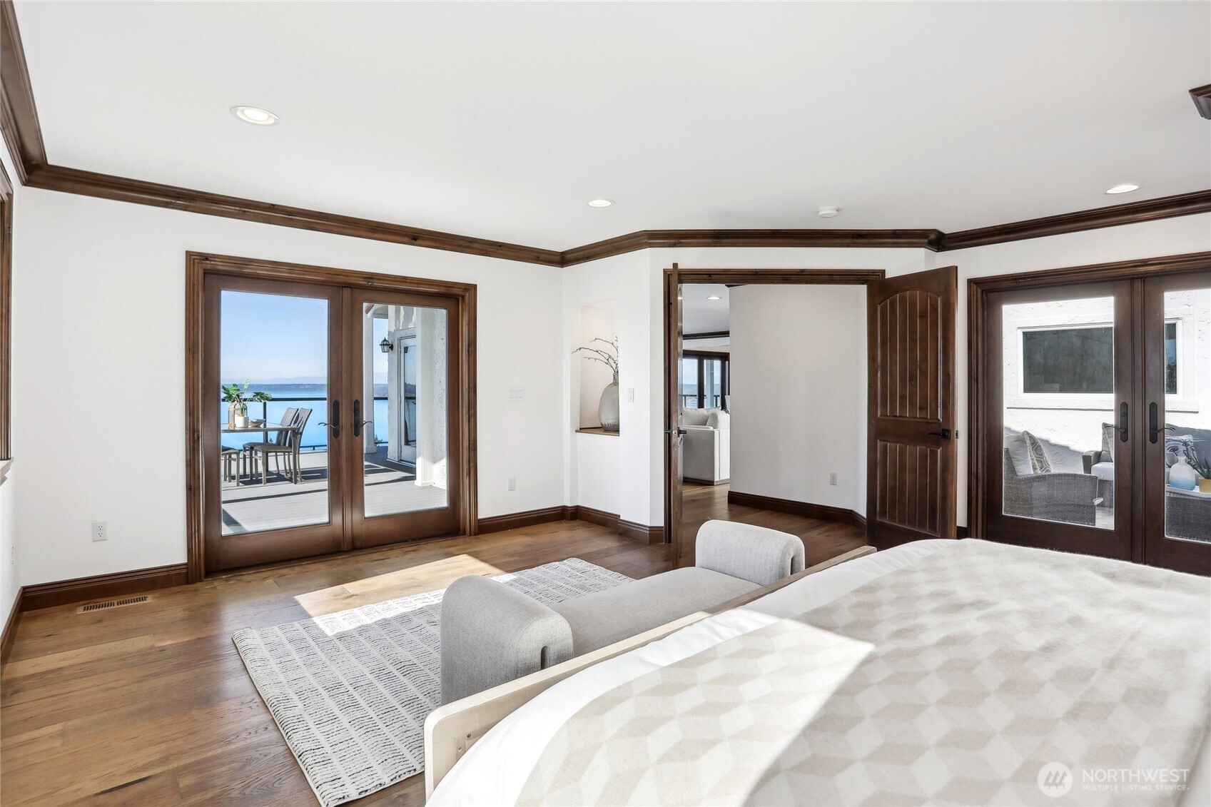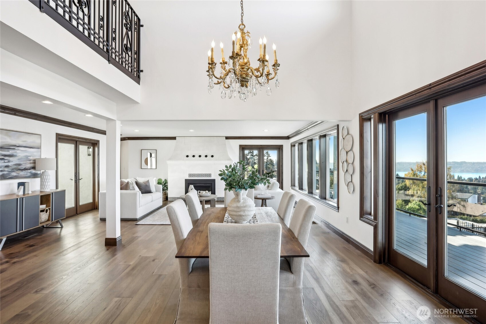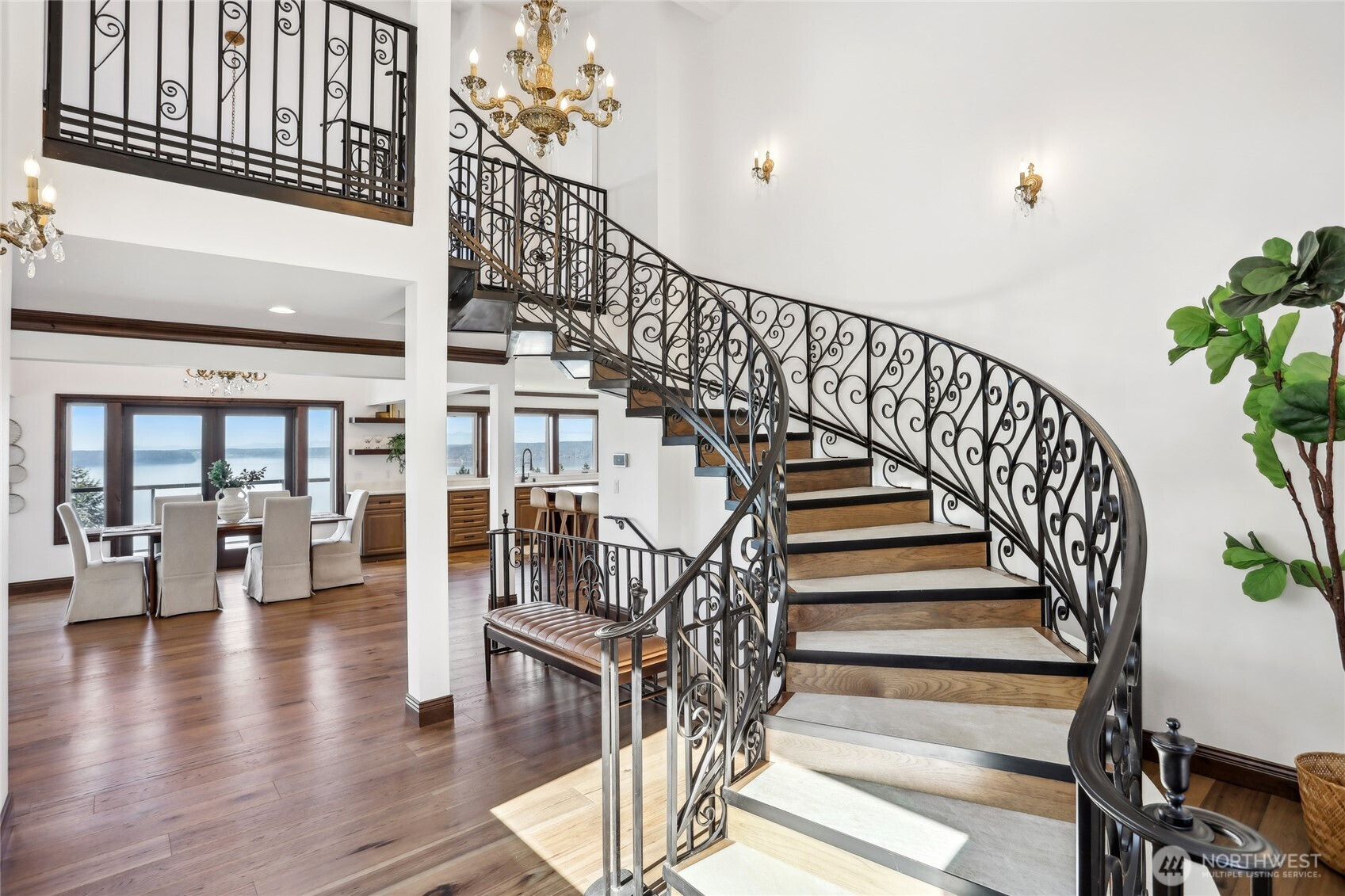 Spectacular Spanish Colonial & Mission Revival w/ expansive west facing views of the Puget Sound & Olympics. Be the first to ever live in this masterfully built home! Exquisite attention to detail throughout, including a bell tower, arches, large carved wooden doors, hand-painted accent tiles & finely crafted iron work that graces the stair railings & front gate. Dramatic foyer w/ soaring ceilings, a sprawling great room, formal dining area & main floor primary suite w/ private deck access, walk-in closet & 5 pc bath. 2 BDs w/ attached baths on the top floor & a rec room, bonus room w/ wet bar & 2 BDs on the lower level. Immerse yourself in the outdoor spaces including an interior courtyard w/ a water feature, patio & wrap-around view deck.