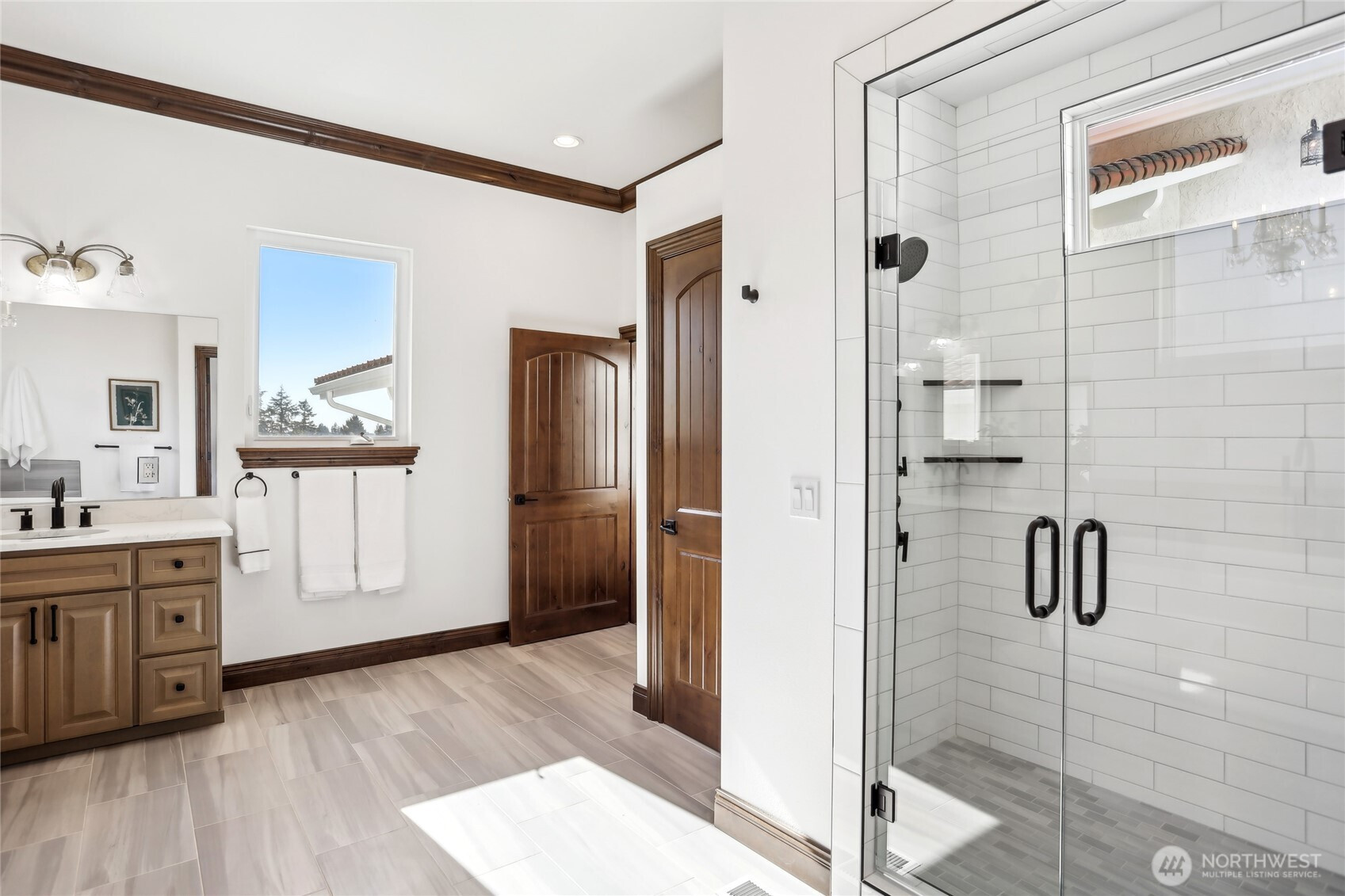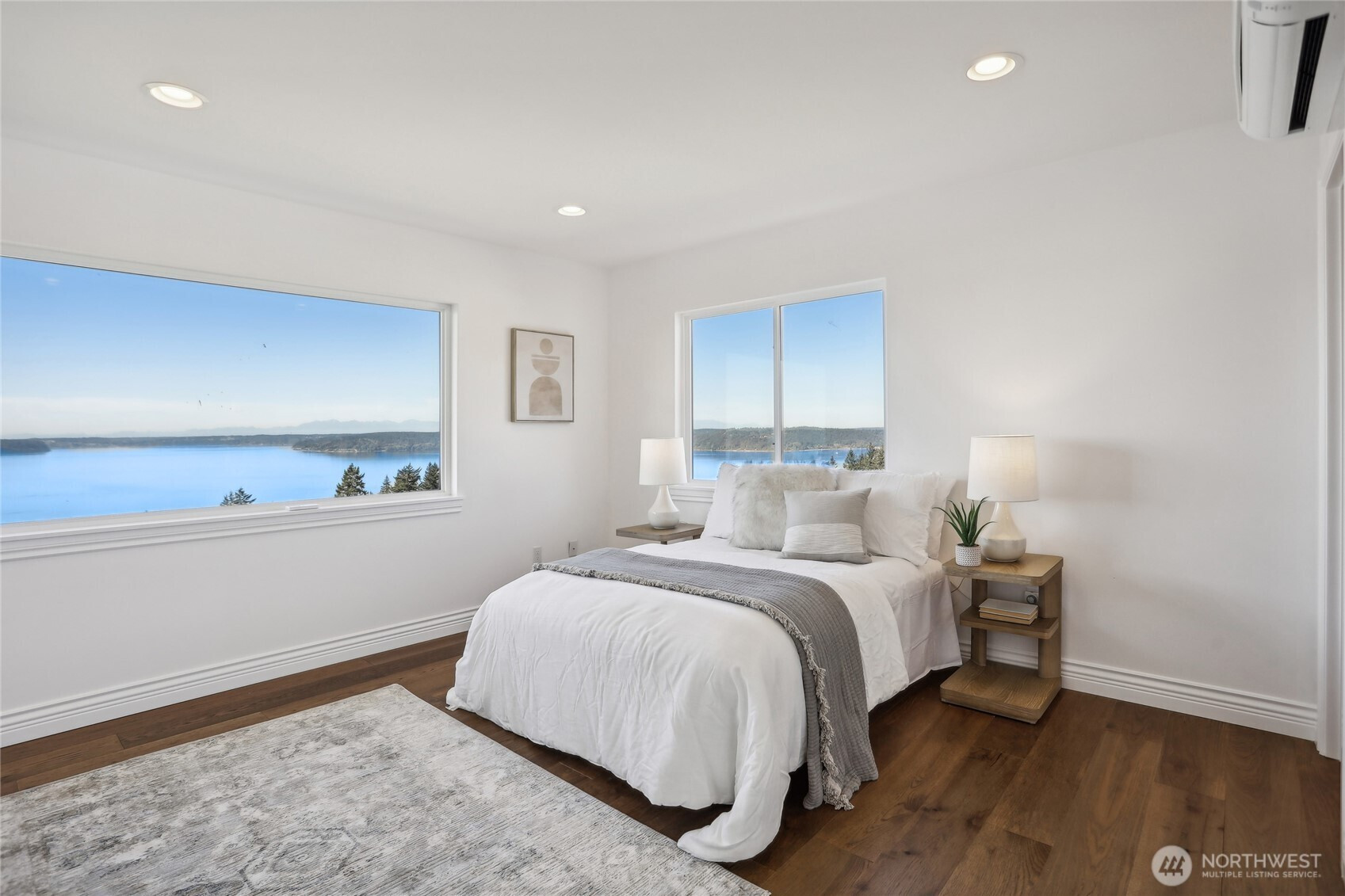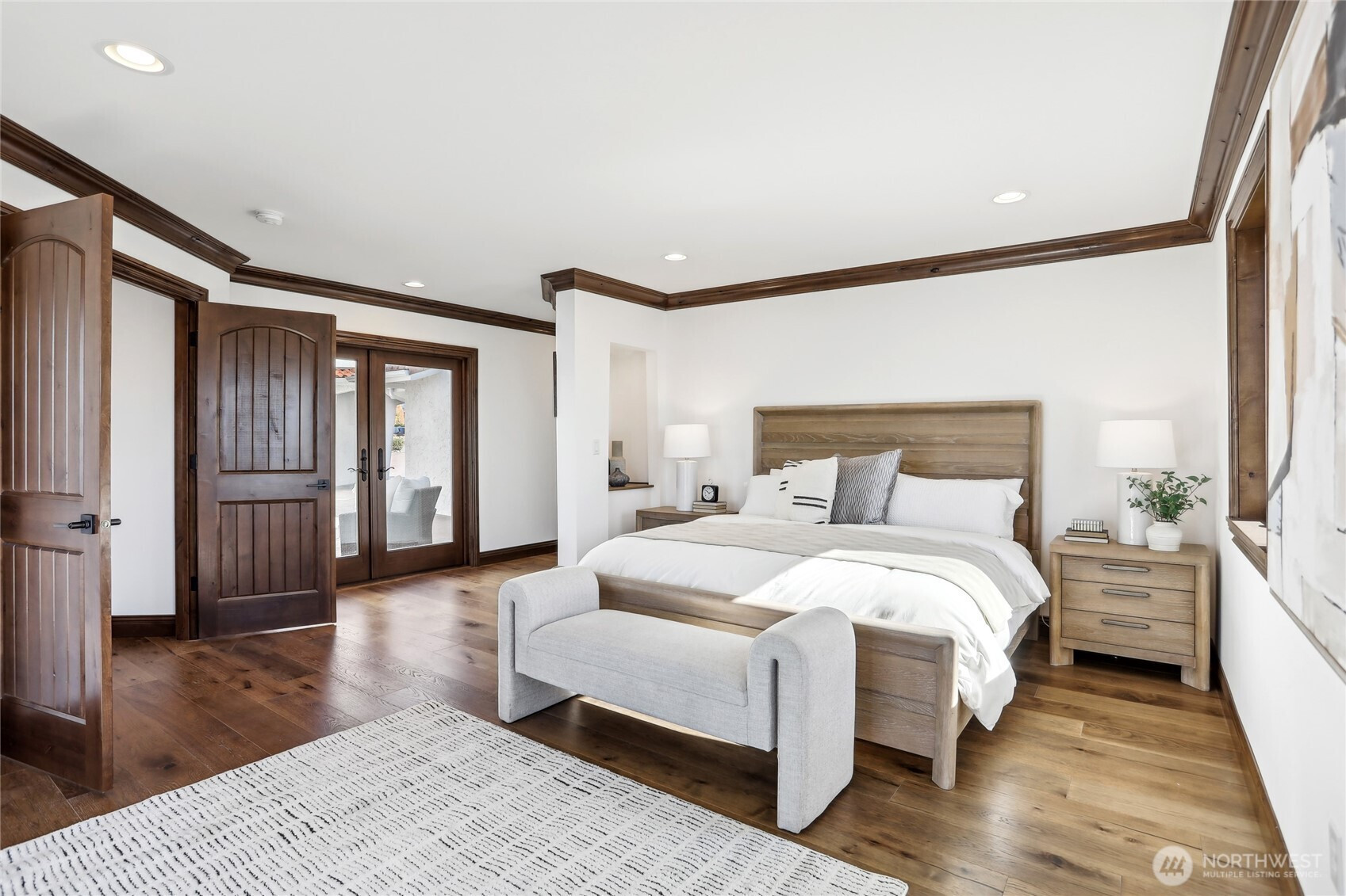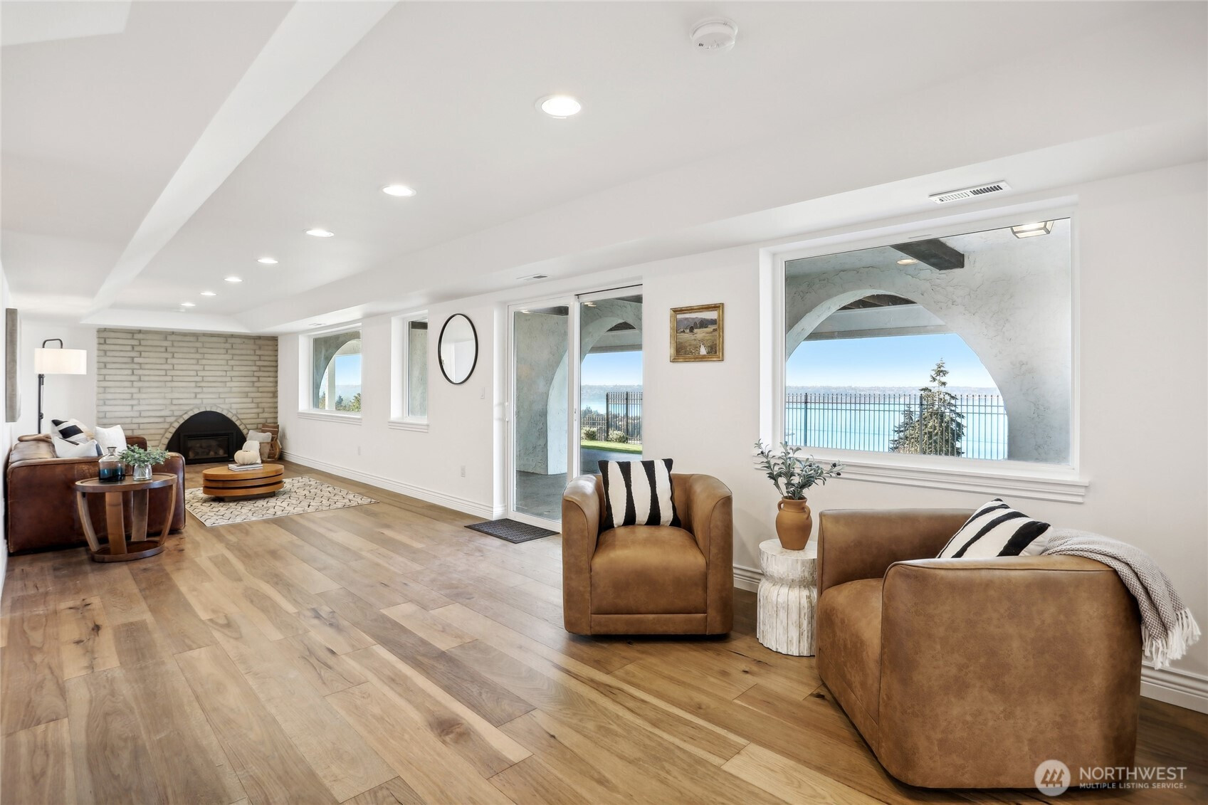 Spectacular Spanish Colonial & Mission Revival w/ expansive west facing views of the Puget Sound & Olympics. Be the first to ever live in this masterfully built home! Exquisite attention to detail throughout, including a bell tower, arches, large carved wooden doors, hand-painted accent tiles & finely crafted iron work that graces the stair railings & front gate. Dramatic foyer w/ soaring ceilings, a sprawling great room, formal dining area & main floor primary suite w/ private deck access, walk-in closet & 5 pc bath. 2 BDs w/ attached baths on the top floor & a rec room, bonus room w/ wet bar & 2 BDs on the lower level. Immerse yourself in the outdoor spaces including an interior courtyard w/ a water feature, patio & wrap-around view deck.
