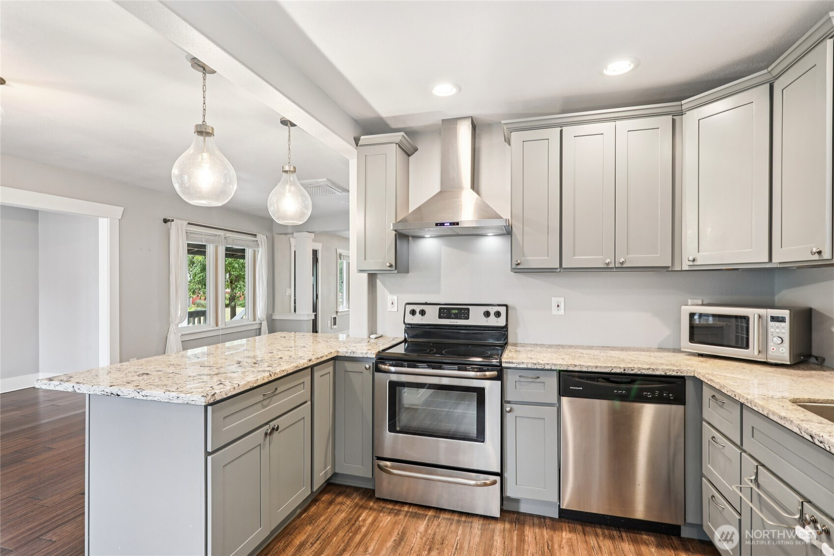 Extensively remodeled historic Craftsman on shy 1/4-acre in DT Sumner—1 block to the train station or river trail & 3 blocks to charming Main St. Timeless character shines through built-in china/curio cabinets & a cozy kitchen seating nook. Main floor primary suite boasts clawfoot tub, dual sinks, & massive walk-in shower. Full 2016 remodel incl. updated plumbing & electrical. Since 2022: new ext. paint, $85K Renewal by Andersen windows, & efficient mini-splits. Huge laundry/utility room & lower-level family room/den add flexibility. Outdoors: sports court, covered deck, level backyard, detached pass-thru garage, & extra parking. Award-winning Sumner schools. Carpet allowance and mortgage savings may be available for buyers of this listing