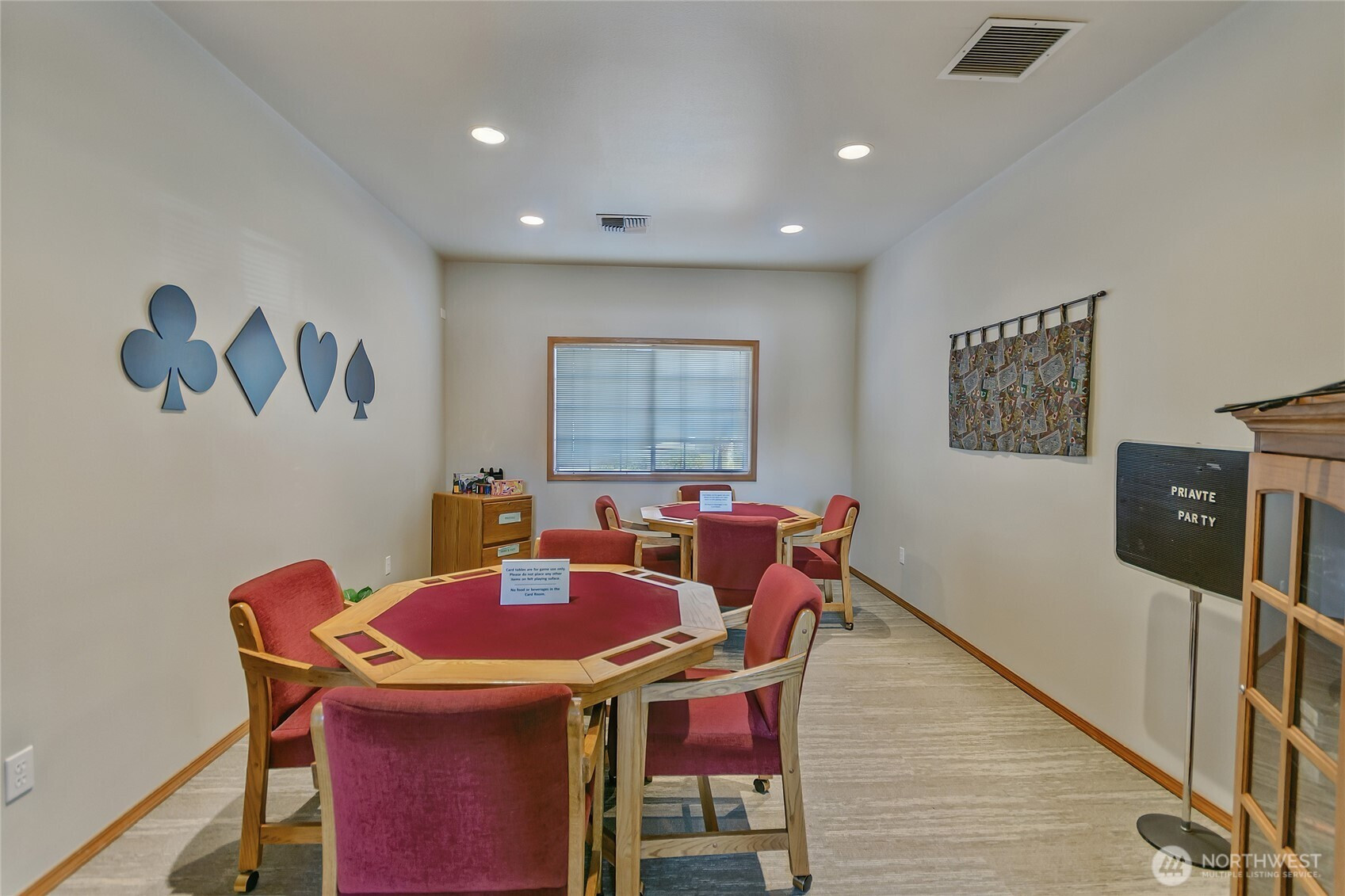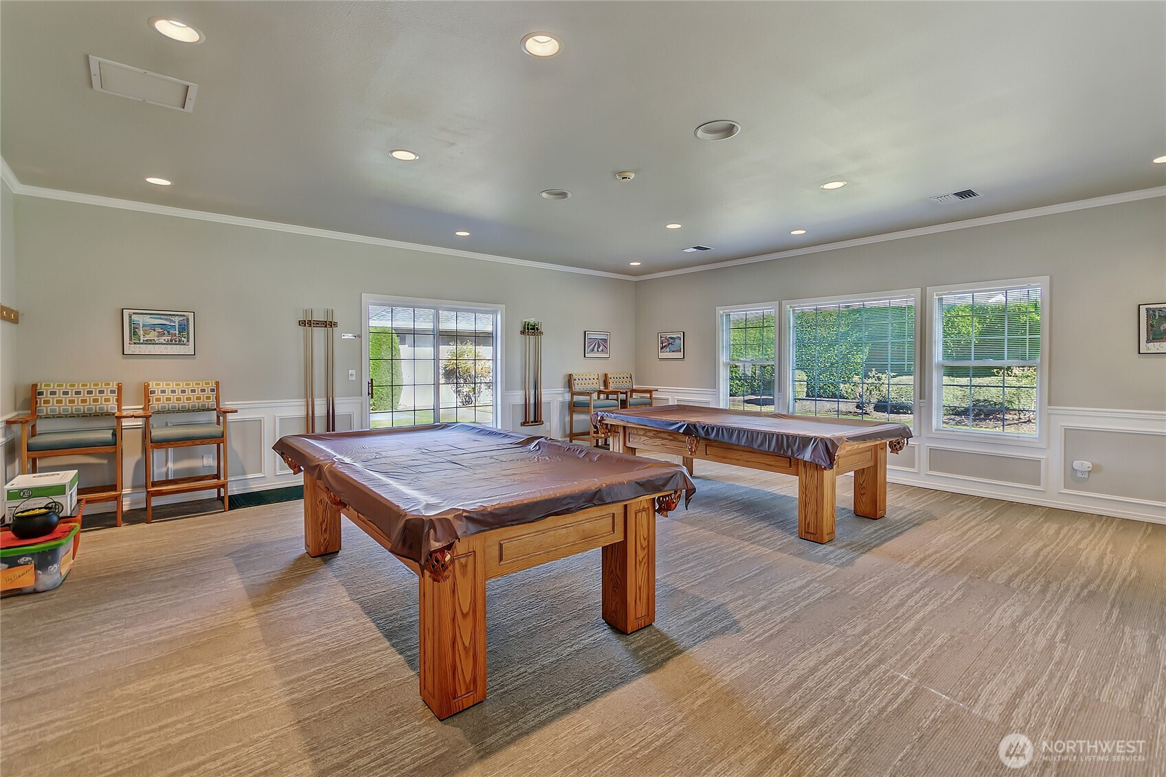 Welcome Home to Puyallup's Premier Gated Senior Community, Harvest Gate. This 2176 SF home with vaulted ceilings has a spacious kitchen with island and eat-in area. All appliances stay. Extra Large Primary Bedroom offers a walk-in closet, en-suite bathroom and gas fireplace. Extra finished room in garage is ready for your specific needs. Enjoy the AC for year-round comfort as well as a tankless hot water heater and built-in vacuum. The covered patio is perfect for relaxing or entertaining. The fabulous clubhouse features activities, games, card room, pool room, kitchen, shuffle board and pickle ball!