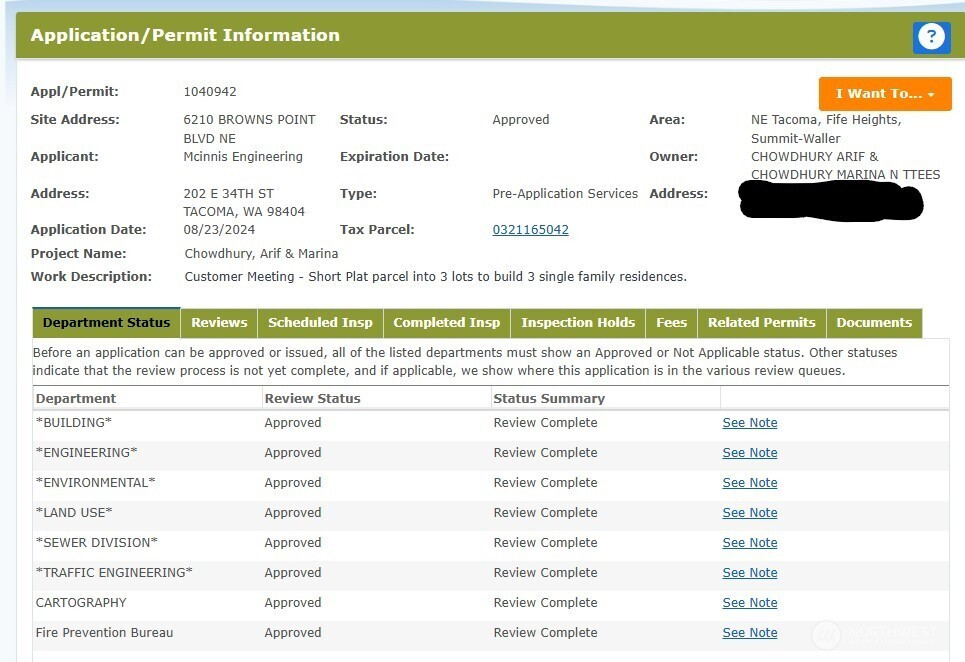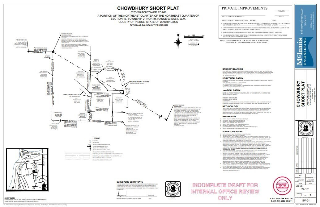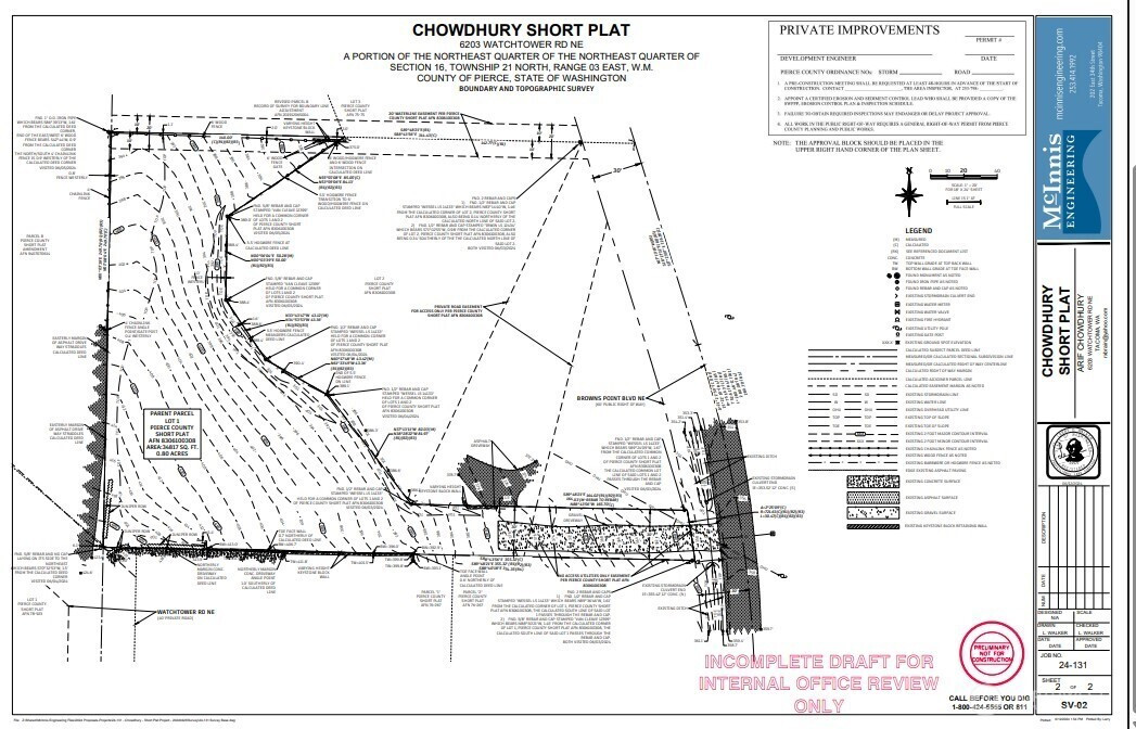 Rare opportunity in Pierce County’s Urban Growth Area! This approx. 0.7-acre parcel offers exciting development potential with a partial short plat for three lots completed, providing a head start for builders and investors. Access to these lots is from Watchtower Rd. NE, yet it looks like there may be access from Dash Point Rd. Located within the UGA, the property benefits from growth-oriented zoning that supports additional residential development (buyer to verify). The site features captivating Puget Sound and mountain views, adding premium appeal for future homes. Recent price point for sales in the area have been over $1,000,000.00+ Utilities are available in the street, and the location offers convenient access while maintaining a sense of privacy. Whether completing the existing short plat, exploring further development potential, or keeping the property as -is and building your own dream estate! This is a standout investment opportunity in a highly desirable setting.