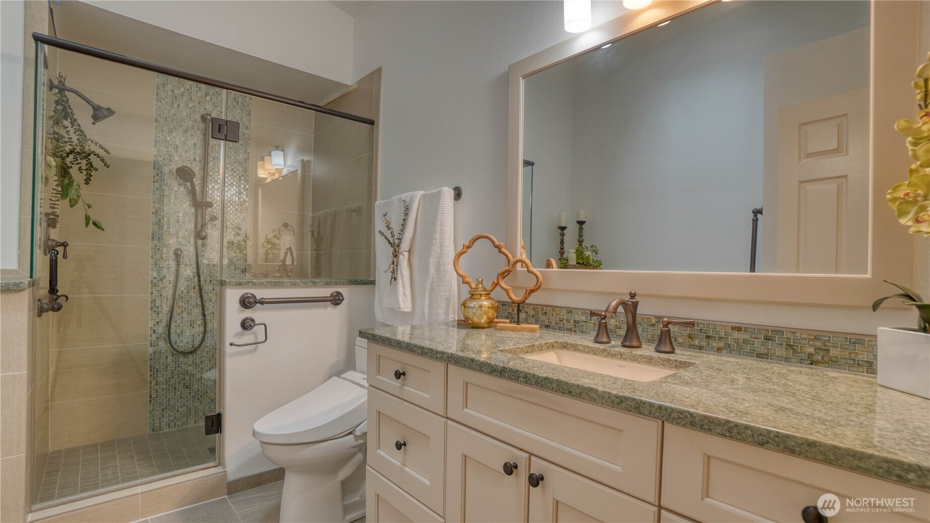 Sophisticated Luxury Meets Low-Maintenance Living in Springwater Estates Welcome to your private sanctuary in the prestigious gated community of Spring Estates. This impeccably maintained 1,746 sq. ft. home has been tastefully updated throughout, blending modern elegance with total comfort. The gourmet chef’s kitchen is an entertainer's dream, featuring sleek granite countertops, custom tile work, soft-close cabinetry, and under-cabinet lighting. Retreat to the primary suite, where double doors lead directly to a private patio—perfect for morning coffee overlooking your lush, mature landscaping. The Primary bathroom boasts a massive jetted tub and a stunning, oversized granite walk-in shower. With two generous bedrooms (both featuring expansive walk-in closets), fresh paint, and brand-new carpet, this home is truly turn-key. Enjoy the best of University Place with golf, dining, and shopping just minutes away.