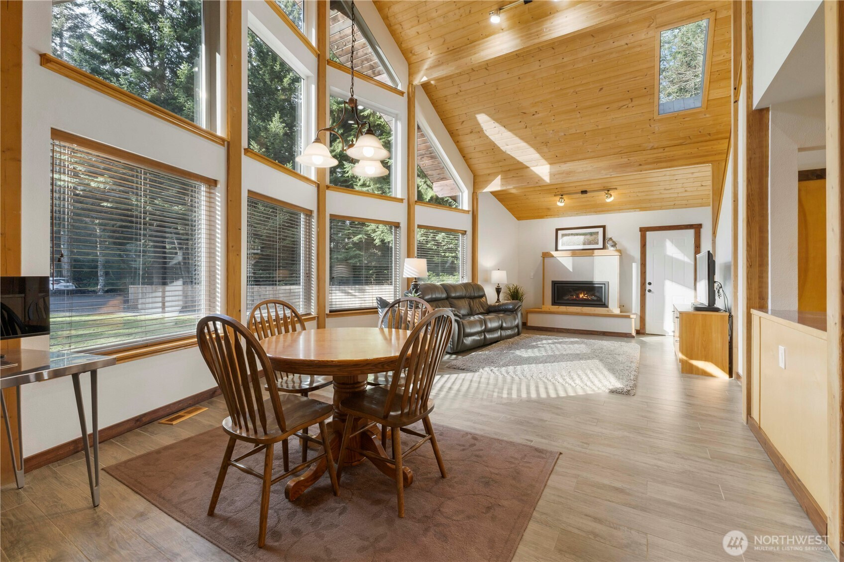 Welcome to this beautifully updated 3 bedroom, 2 bath mountain home in the desirable Crystal River Ranch community. Ideal for full-time living, a weekend escape, or a nightly rental investment. This property offers comfort, flexibility, and a prime location near Crystal Mountain Resort. The light-filled living room features vaulted pine ceilings and a wall of windows that bring in natural light. A newly installed Regency gas fireplace with a simple, elegant hearth creates a warm and inviting focal point. The kitchen is equipped with stainless steel appliances for a modern touch. Upstairs, the spacious primary suite includes a walk-in closet, a five-piece bath, and a private deck - creating a peaceful retreat. Two additional main floor bedrooms provide flexibility for guests or a home office. Cedar siding enhances the exterior, and a newer roof adds peace of mind. The 663 SF garage, ample parking, and easy-care landscaping make mountain living simple. A beautiful, forested area behind the home backs to community property extending toward the White River. You can hear the river from the property. Located within walking distance to Crystal River Ranch amenities, including the community center, playground, ball field, and just minutes from skiing, hiking, biking and year-round recreation. Never used as a rental, yet approved for nightly rental, this well-maintained home offers both personal enjoyment & income potential in one of the area's most sought-after neighborhoods.