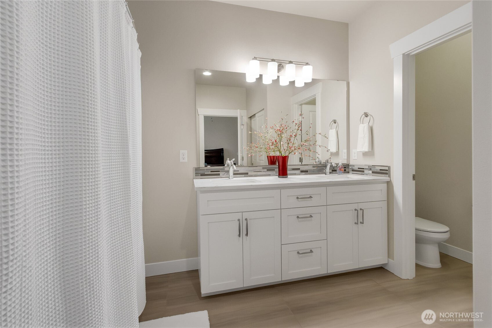 Large daylight basement home with views of Spanaway Lake. 3 bedrooms,2 baths on main level including primary suite with private bath and large walk in closet. Kitchen features quartz counters, eating bar and dining area off great room with gas fireplace. Covered deck on back of house. Downstairs is another bedroom and full bath and rec room with access to fenced back yard. Located close to JBLM, Pierce county parks, Spanaway lake and Golf course.