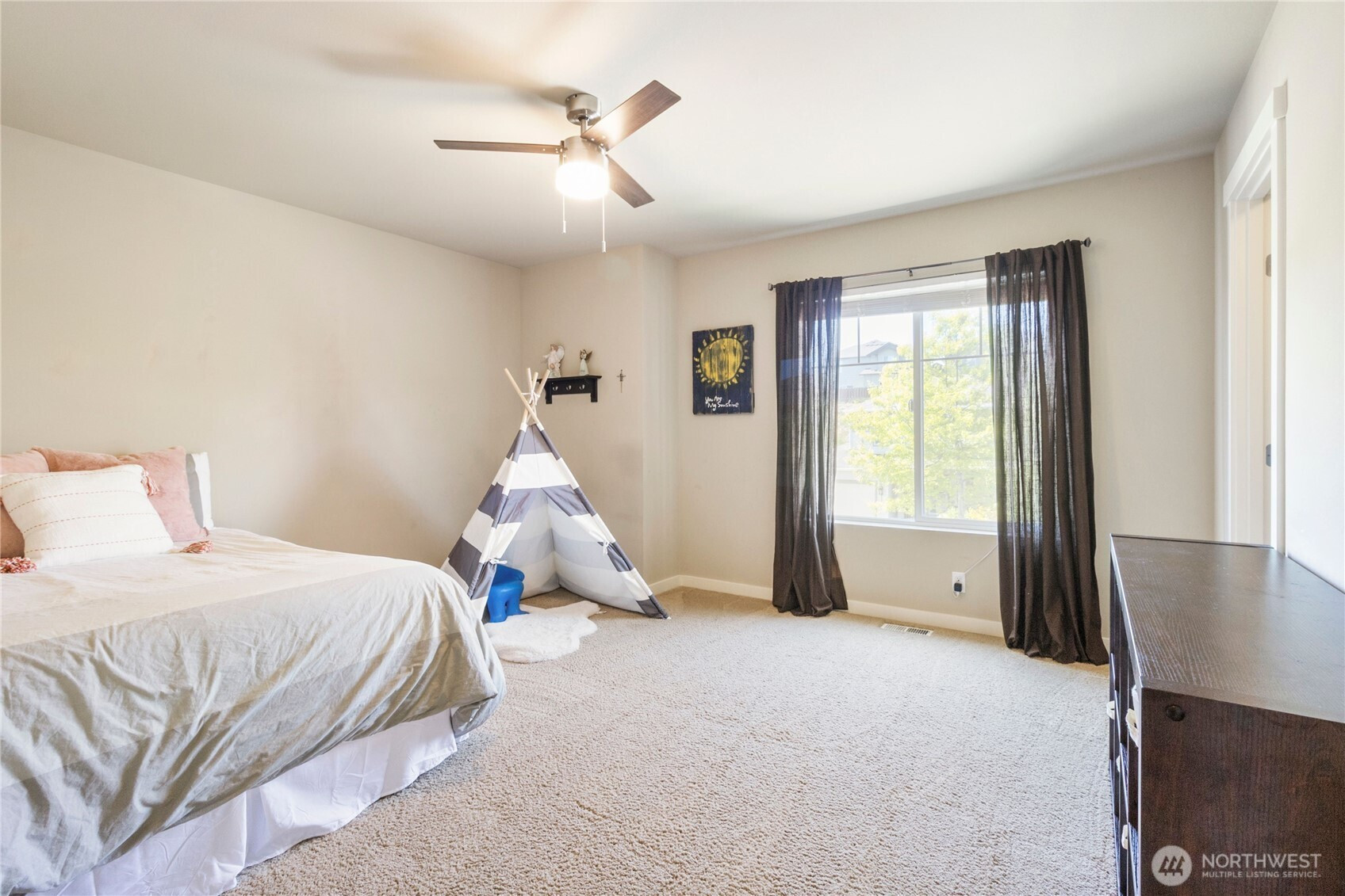 Beautiful 4 bedroom home in desirable Lakeland hills area with over 2500 sq ft. Open concept living with good size kitchen w/ large island, Granite counters and Stainless appliances. Great room with gas fireplace. Primary suite upstairs with 5 piece bath and large walk-in closet. 3 more beds and laundry upstairs. Step outside to expansive gazebo covered deck with Trex decking. Fully fenced back yard Backs up to a greenbelt and close to neighborhood park. Concrete walks on side yards for low maintenance. Central A/C and 2 car garage.