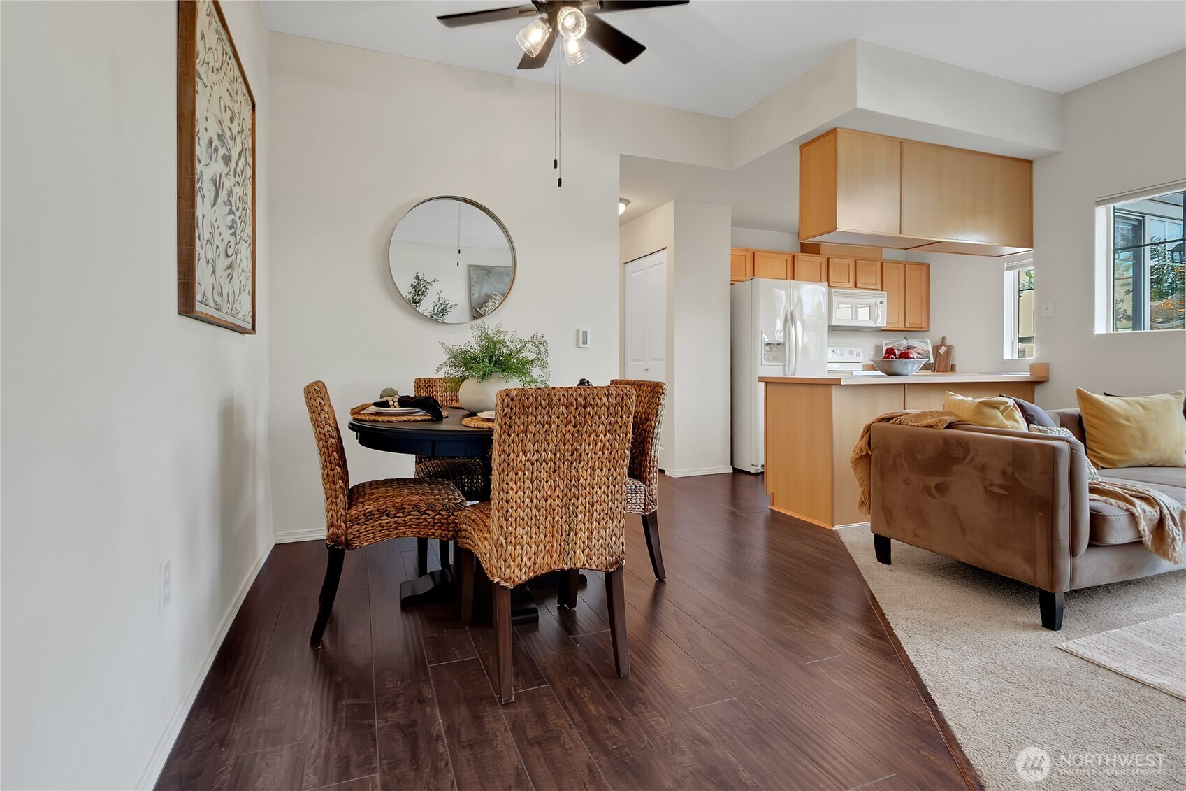 Opportunity to live in sought after Carrara townhome community located in Lakeland Hills. This wonderful unit includes an oversized one garage with room for storage. Upstairs you will find a light and bright living room with fireplace and slider to balcony deck. Nice galley style kitchen adjoins the good-sized dining area. Primary bedroom with walk in closet is steps away from the generous sized bathroom with soaking tub. you will enjoy the easy access to all the Lakeland Hills amenities. Easy living at an affordable price.