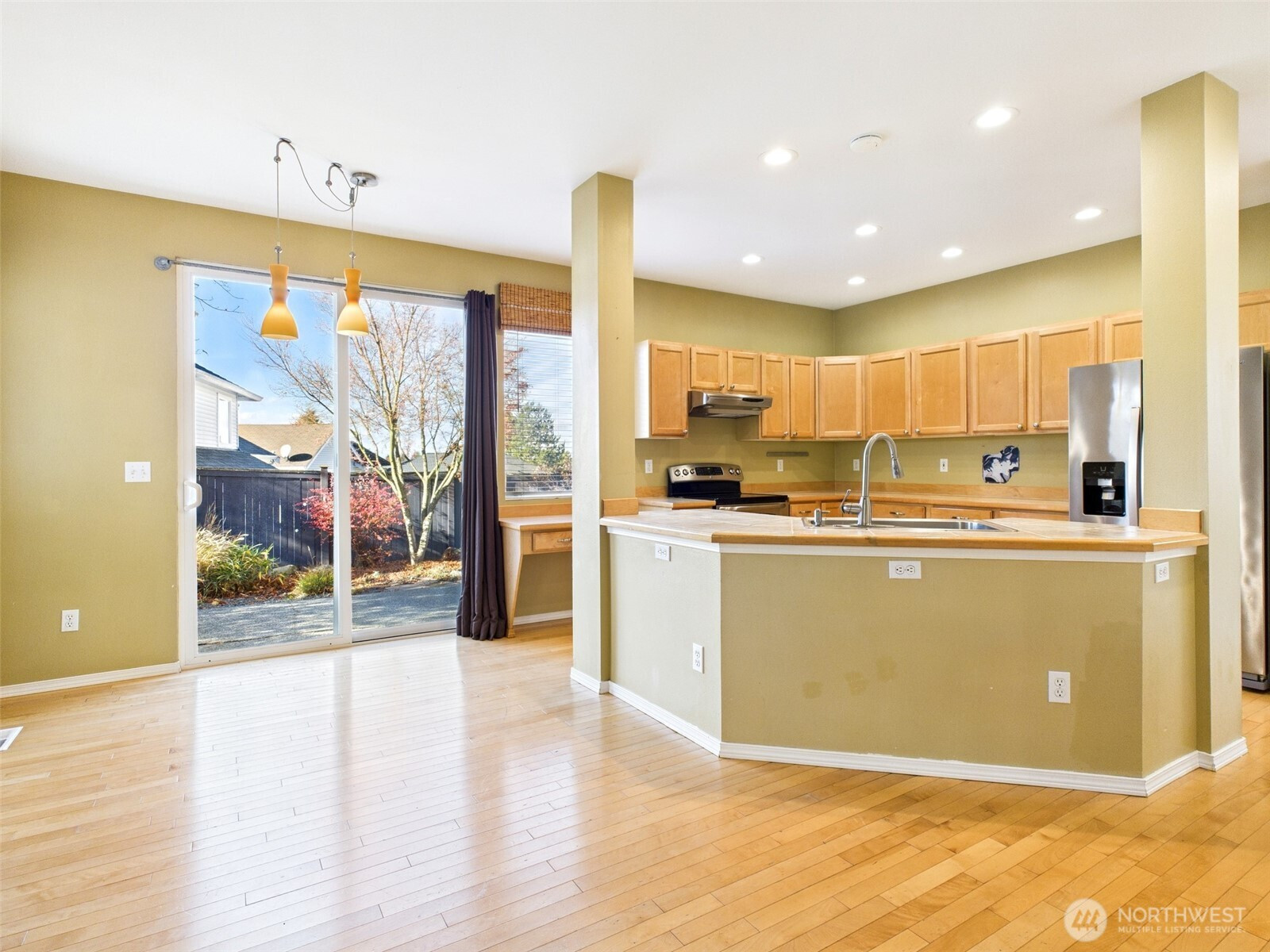 Welcome to this light-filled home in the sought-after Lakeland Hills community. Offering 4 bedrooms (3 upstairs plus a versatile main-floor office/den or 4th bedroom), 3 full baths, and an open-concept living area, this home is designed for comfort and functionality. The primary suite features a walk-in closet and a spacious 5-piece en-suite bath with a soaking tub. Enjoy a fully fenced backyard and patio surrounded by vibrant, drought-tolerant landscaping that provides lush, low-maintenance beauty year-round. Ideally located near parks, trails, top-rated schools, and within walking distance of Lakeland Town Center, this one-owner, well-cared-for home—with a 3-year-new roof—awaits your interior cosmetic updates to make it truly shine.