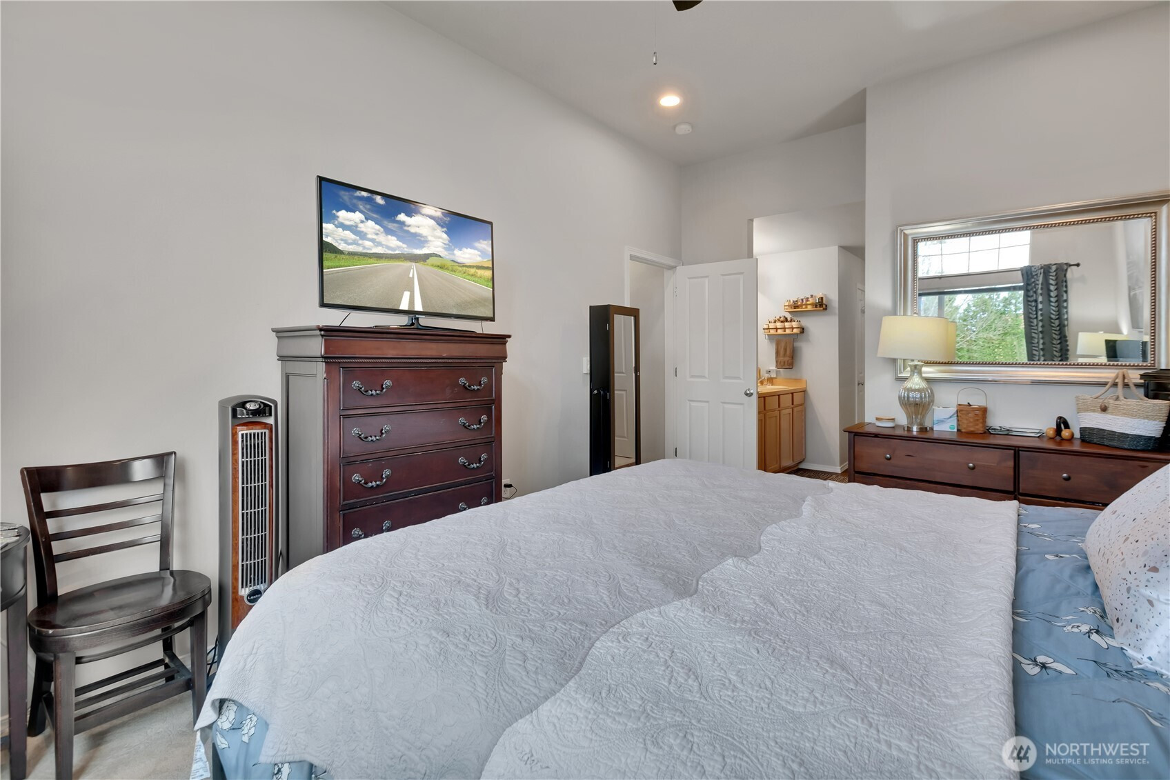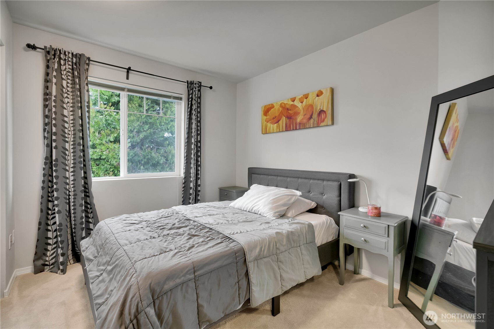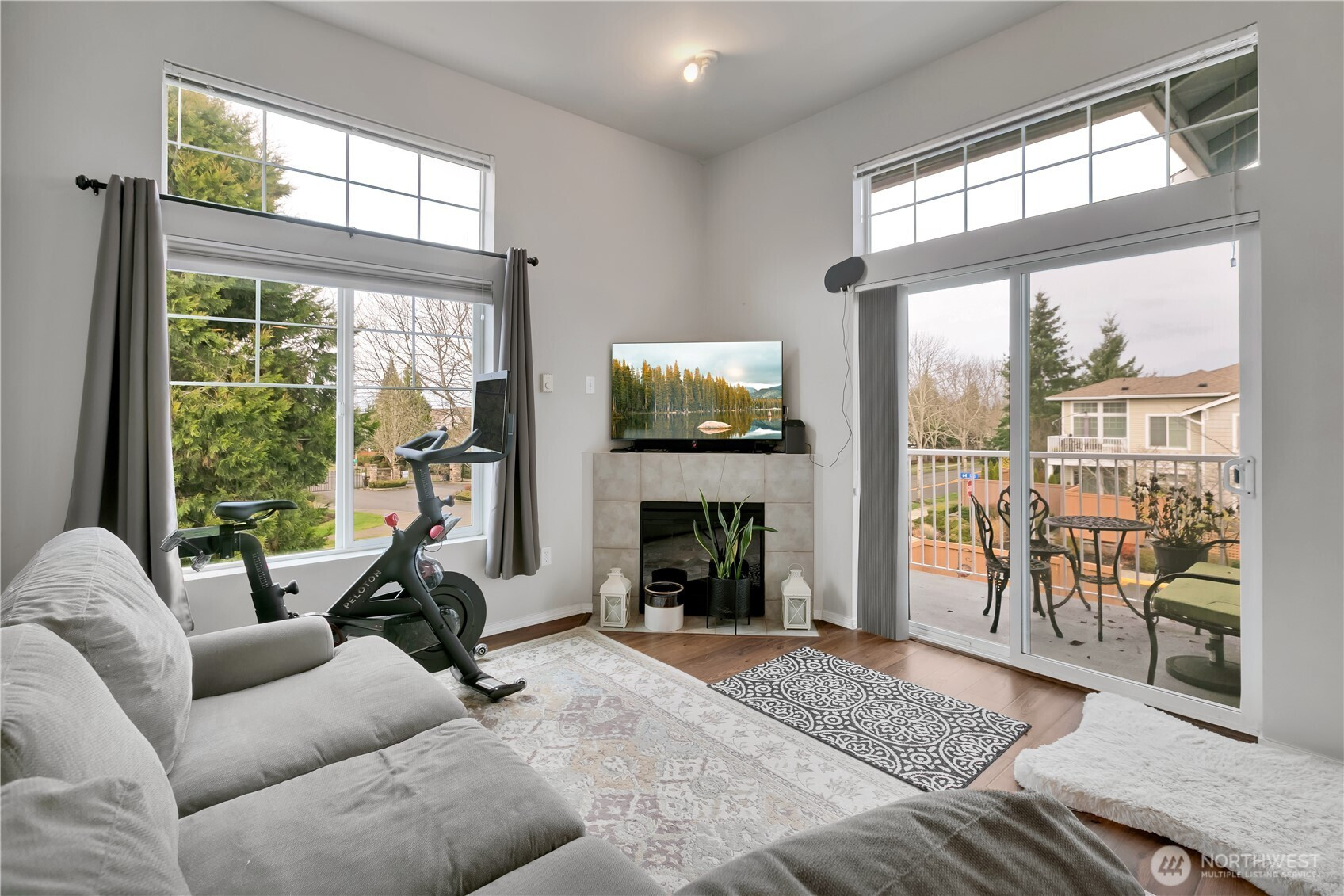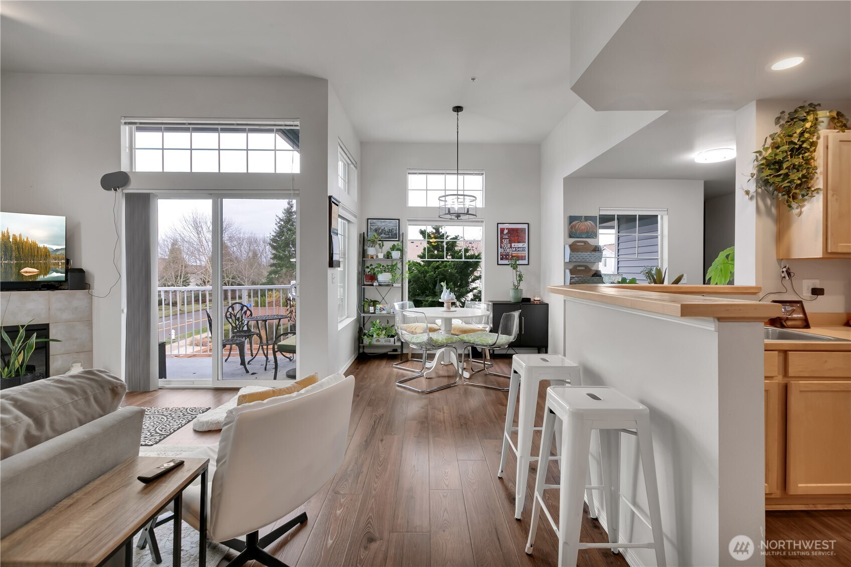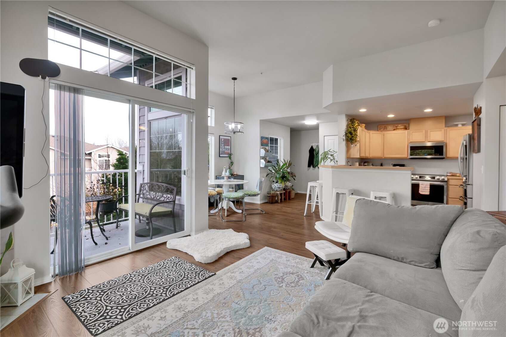Welcome home to Carrara at Lakeland~ where bright, comfortable living meets a highly desirable community.This top-floor end unit is filled w/natural light & offers a welcoming, open layout. The spacious great room extends to a private deck—ideal for relaxing or enjoying your morning coffee. Fresh, neutral paint throughout provides a clean and modern feel from the moment you step inside. LVP flooring make cleaning a breeze. Unwind by the cozy fireplace or enjoy cooking in the open kitchen featuring maple cabinetry, ample counter space, and new appliances. The primary suite feels spacious w/vaulted ceilings, a walk-in closet, & a private bath complete w/a soaking tub & dual sinks. Close to schools, shopping & easy access to HWY167