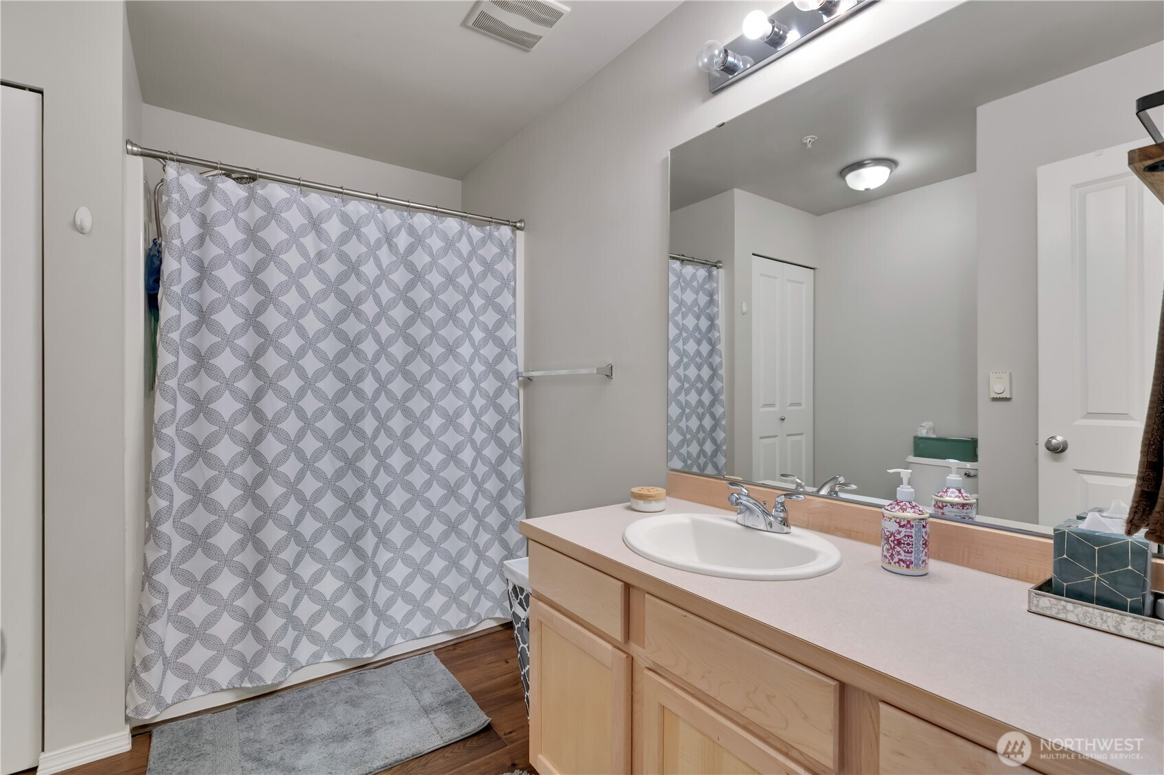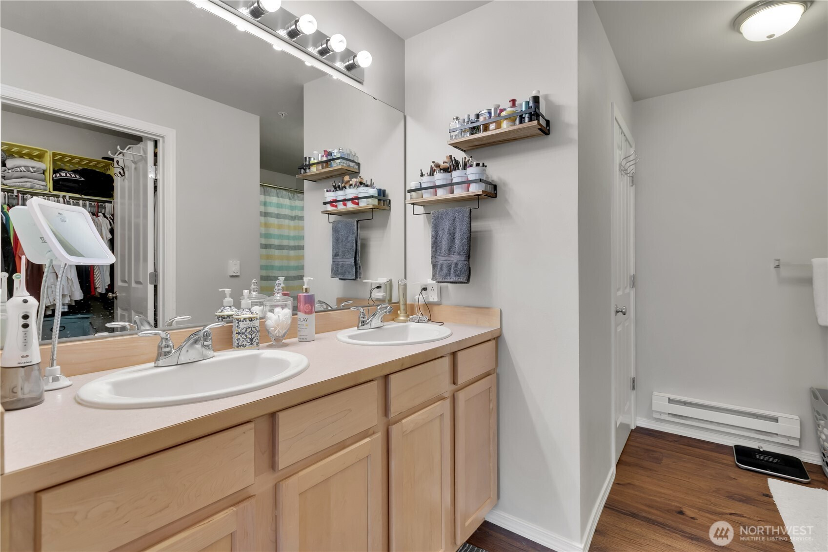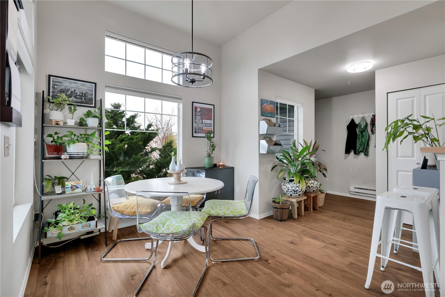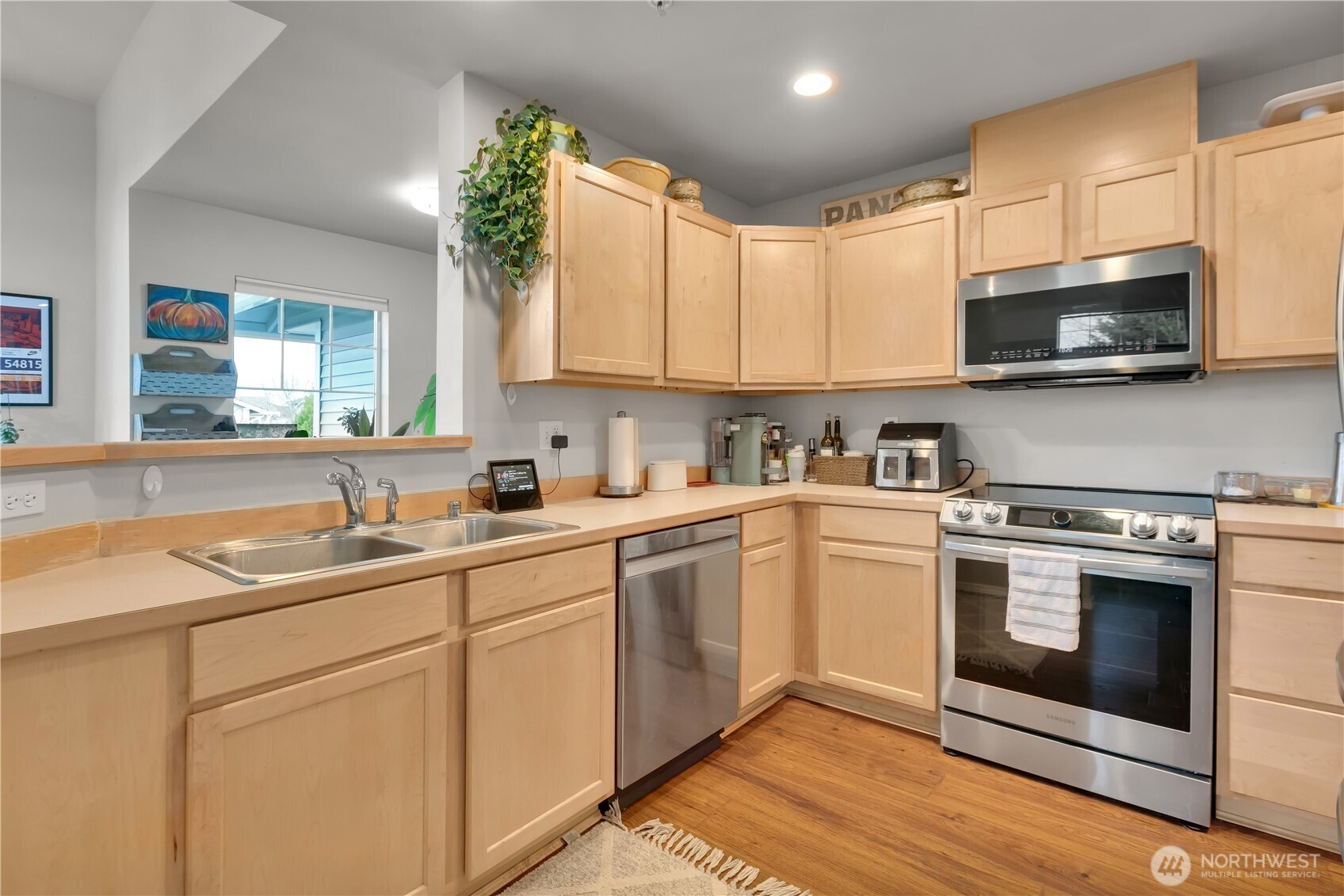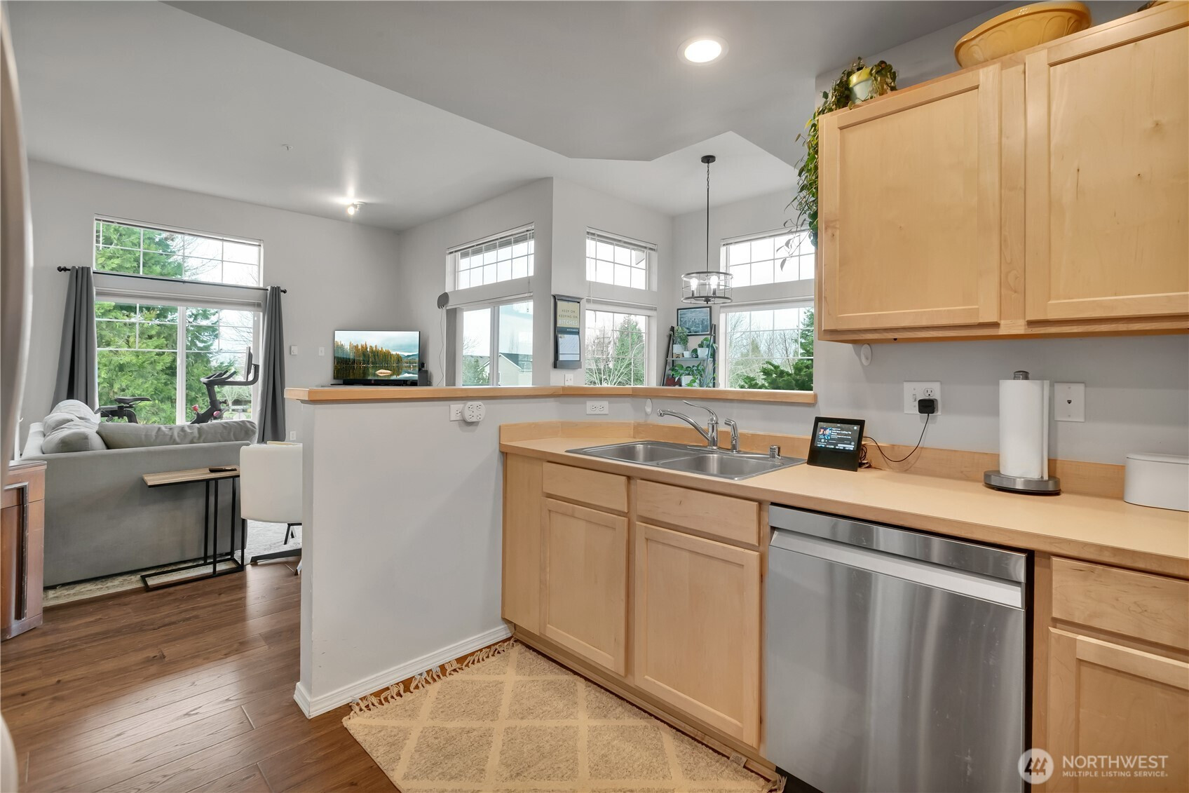 Welcome home to Carrara at Lakeland~ where bright, comfortable living meets a highly desirable community.This top-floor end unit is filled w/natural light & offers a welcoming, open layout. The spacious great room extends to a private deck—ideal for relaxing or enjoying your morning coffee. Fresh, neutral paint throughout provides a clean and modern feel from the moment you step inside. LVP flooring make cleaning a breeze. Unwind by the cozy fireplace or enjoy cooking in the open kitchen featuring maple cabinetry, ample counter space, and new appliances. The primary suite feels spacious w/vaulted ceilings, a walk-in closet, & a private bath complete w/a soaking tub & dual sinks. Close to schools, shopping & easy access to HWY167