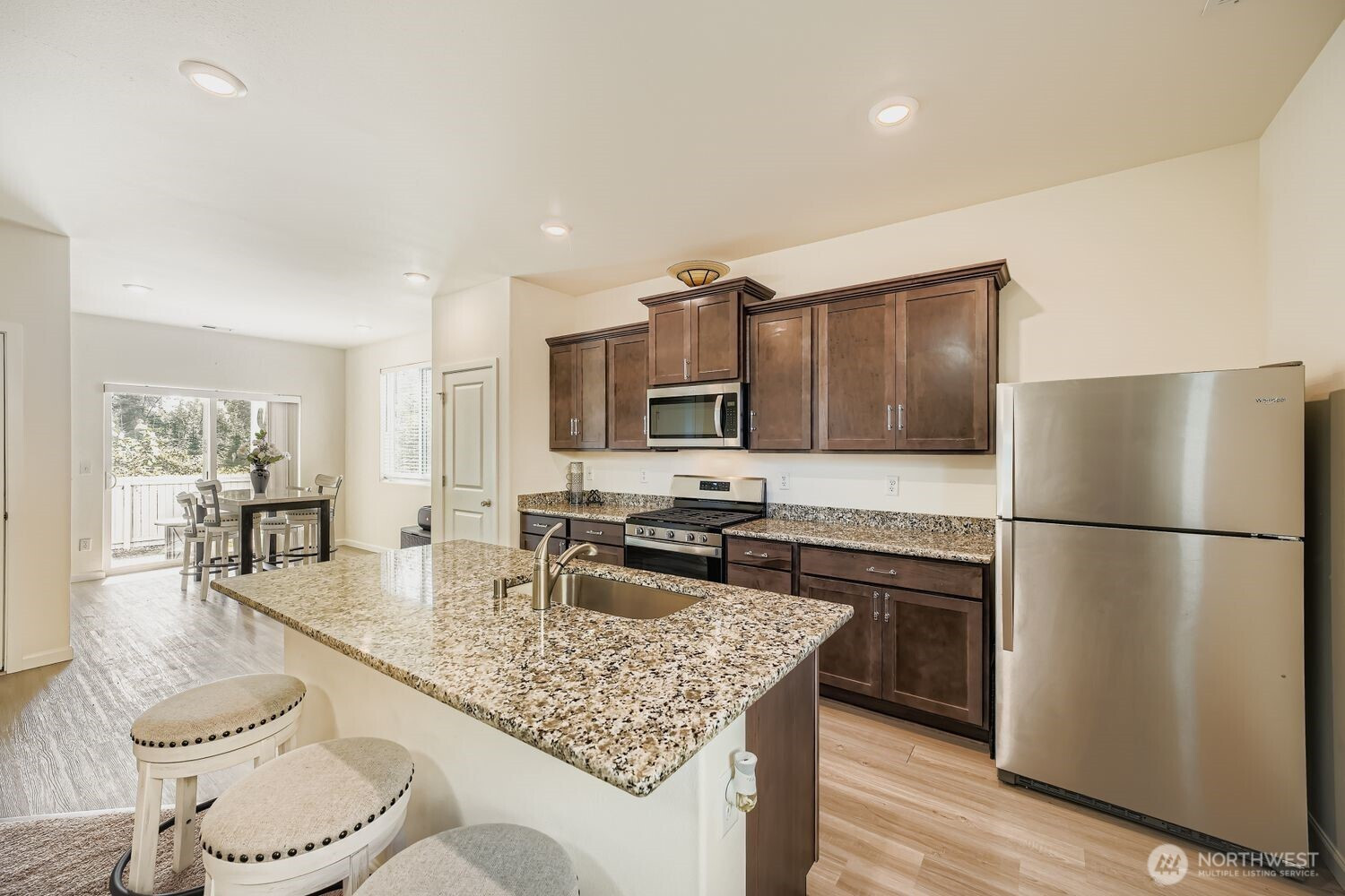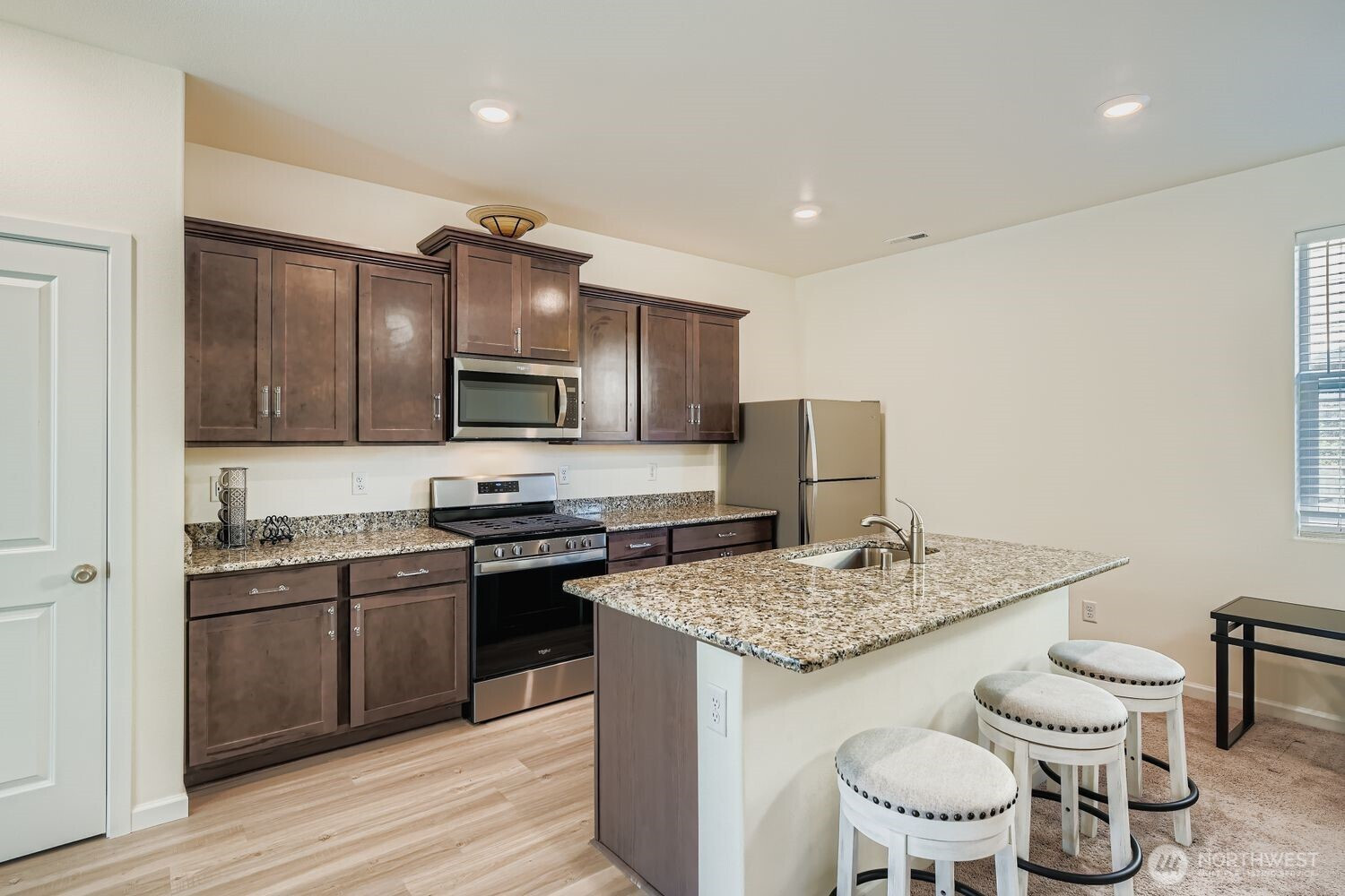 This stunning two-story home features 3 bedrooms and 2.5 bathrooms, designed with comfort and style in mind. Enjoy premium upgrades throughout, including stainless steel Whirlpool® appliances, granite countertops, modern cabinetry, and luxury plank flooring. The owner’s suite offers a tranquil retreat with a spacious vanity and an expansive walk-in closet. The open-concept layout is perfect for entertaining, complemented by a covered patio and an upstairs loft that extends your living space. A finished garage and fully fenced yard add extra privacy and storage convenience. Ideally located near I-167 and I-512, this home combines modern living with unbeatable accessibility.