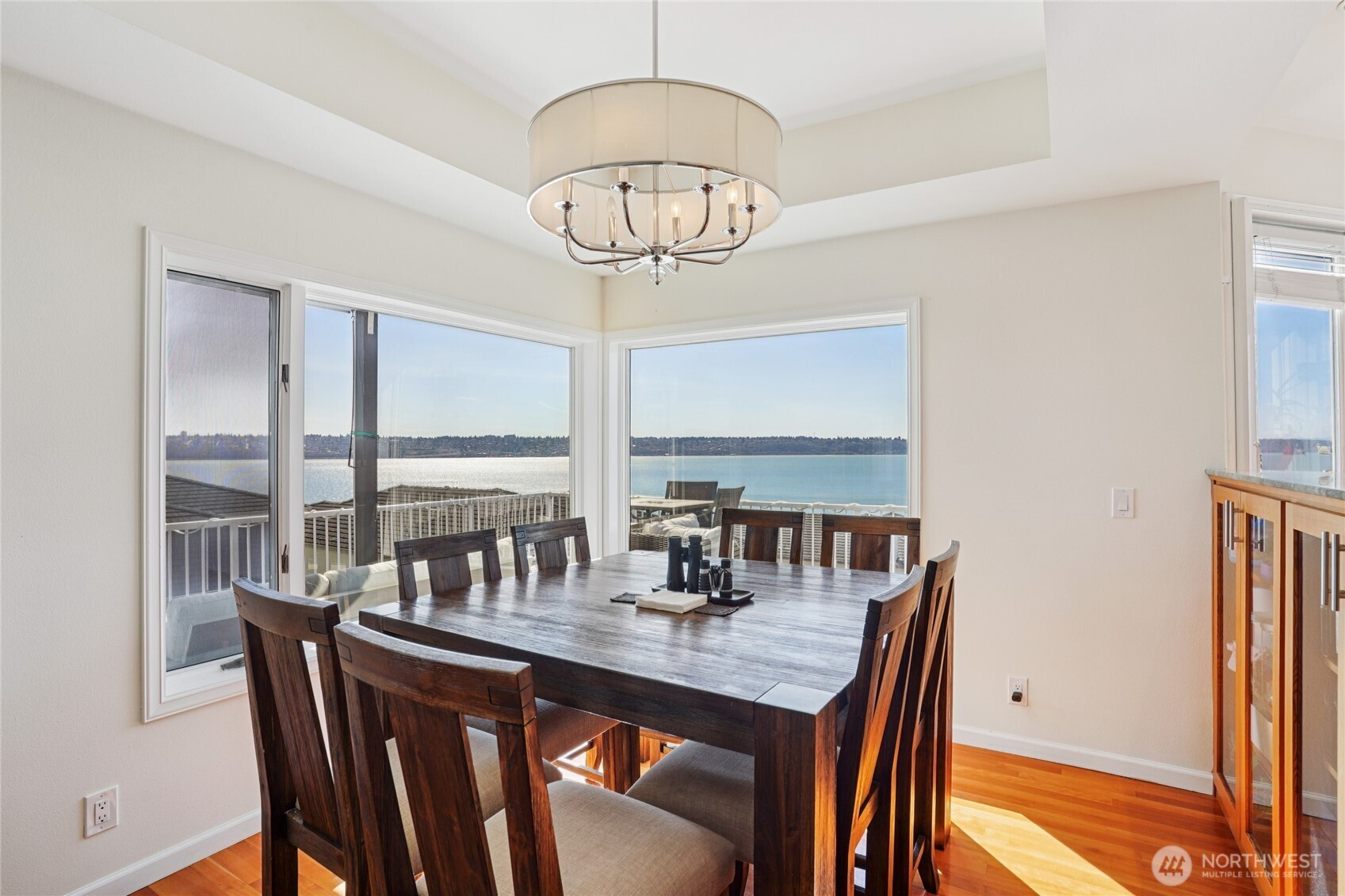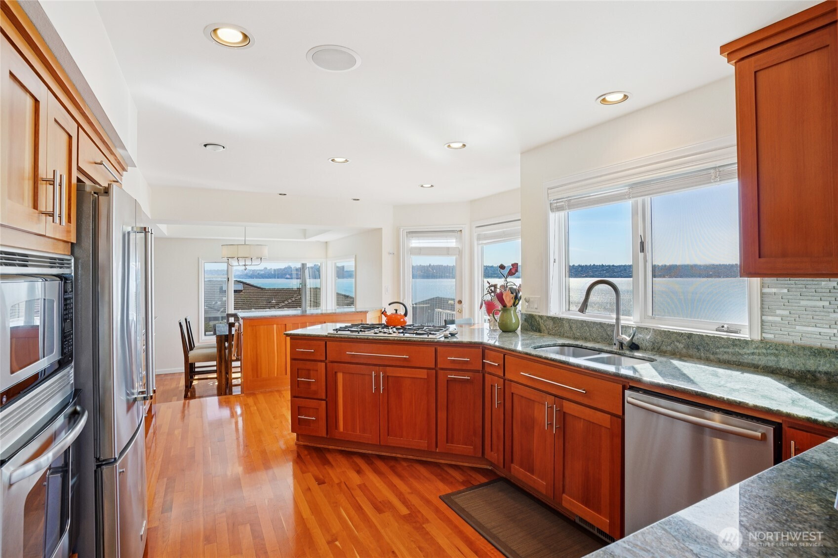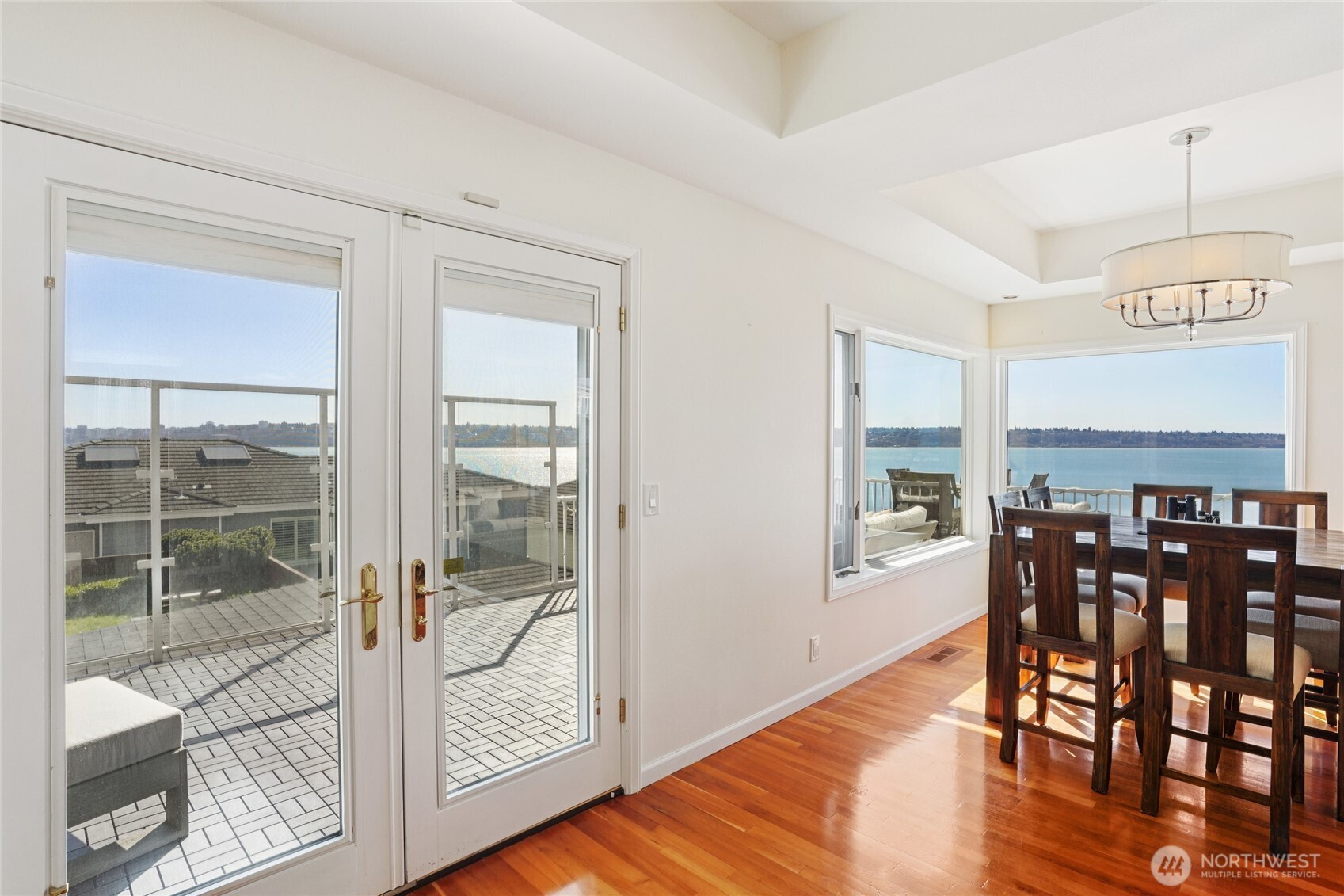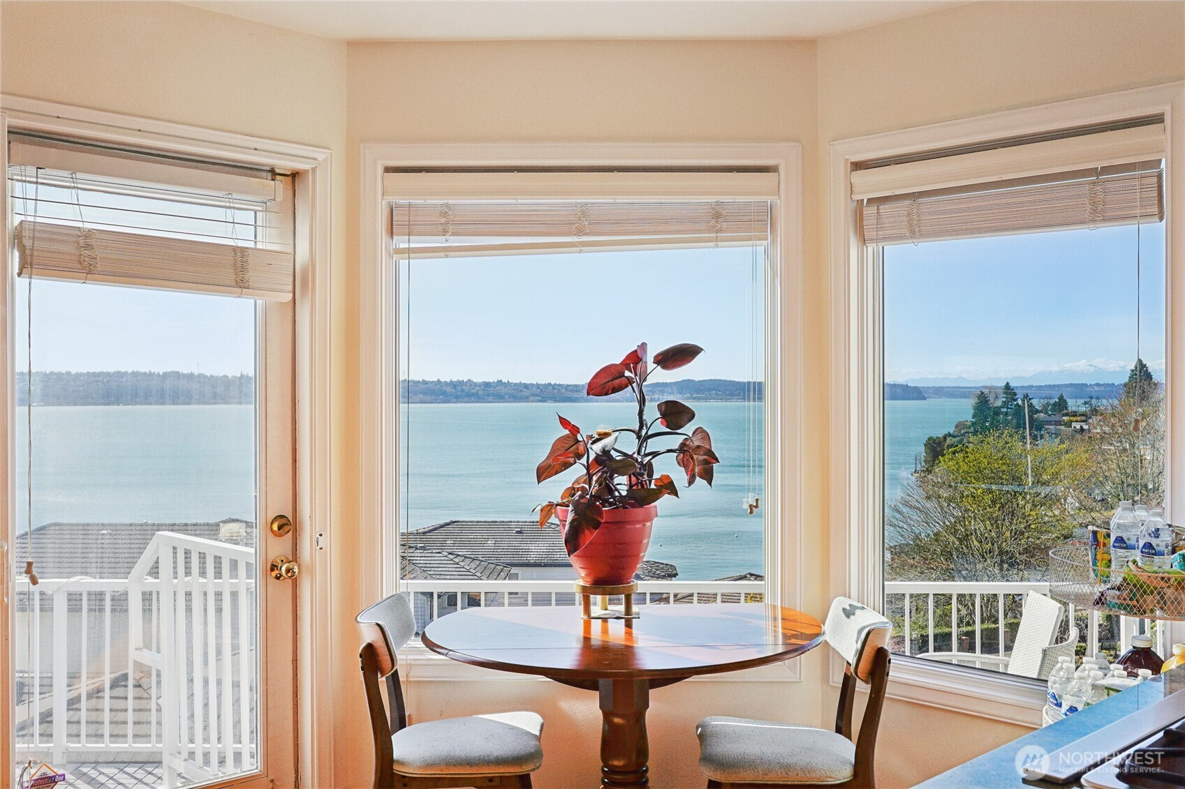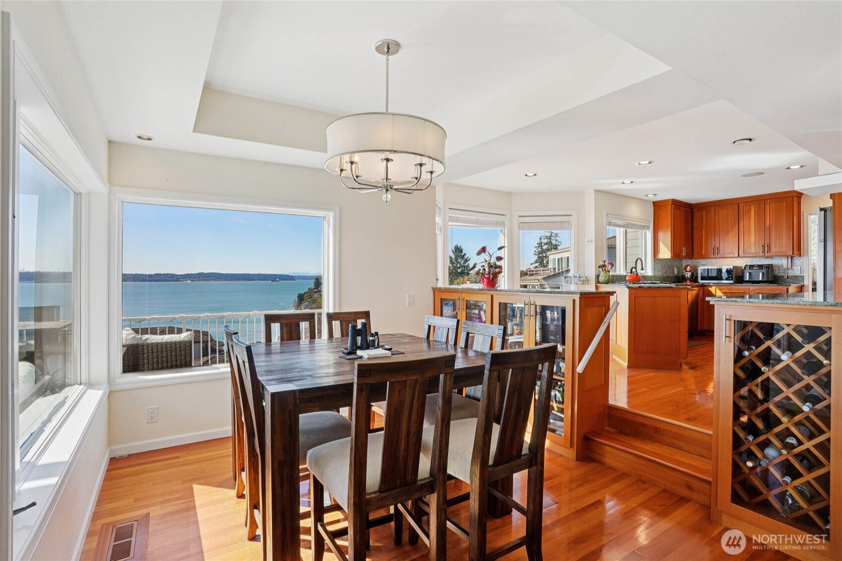 Perched for unobstructed, panoramic views of Puget Sound, this multi-level home is a rare find — designed to showcase the scenery from every level. Bright, open living, dining, and kitchen spaces on the main floor feature wood floors and new carpet, all framing breathtaking water vistas. The generous primary suite upstairs includes an oversized walk-in closet, a spa-inspired bath, and a private deck. Also upstairs are two additional bedrooms—one positioned to capture the views—and a freshly remodeled bath. Flexible lower-level living offers comfortable guest space with full-size and king-size Murphy beds. A fully remodeled detached casita adds an independent bedroom, full kitchen, bath, living area, laundry room, Puget Sound views, and its own mini-split HVAC — perfect for guests or rental income. A separate ADU behind the home is ideal for a home office and also has an amazing view of Puget Sound. Outdoor living is exceptional: three private decks, a courtyard, and a peaceful shared green space, all facing the water. Thoughtful updates include new AC and furnace, a stair lift from the garage to the courtyard, a updated half bath, and upgraded closet organization. Two-car private garage. Plus additional amenities. The HOA provides real value by covering weekly garbage and recycling, basic cable, water, outdoor pest control, and partial landscaping — reducing ongoing chores and upkeep costs. Experience maintenance-light living with spectacular, uninterrupted Puget Sound views.