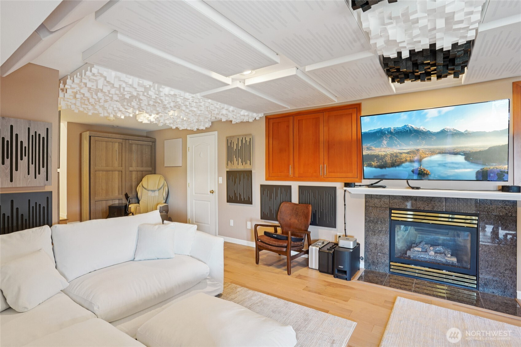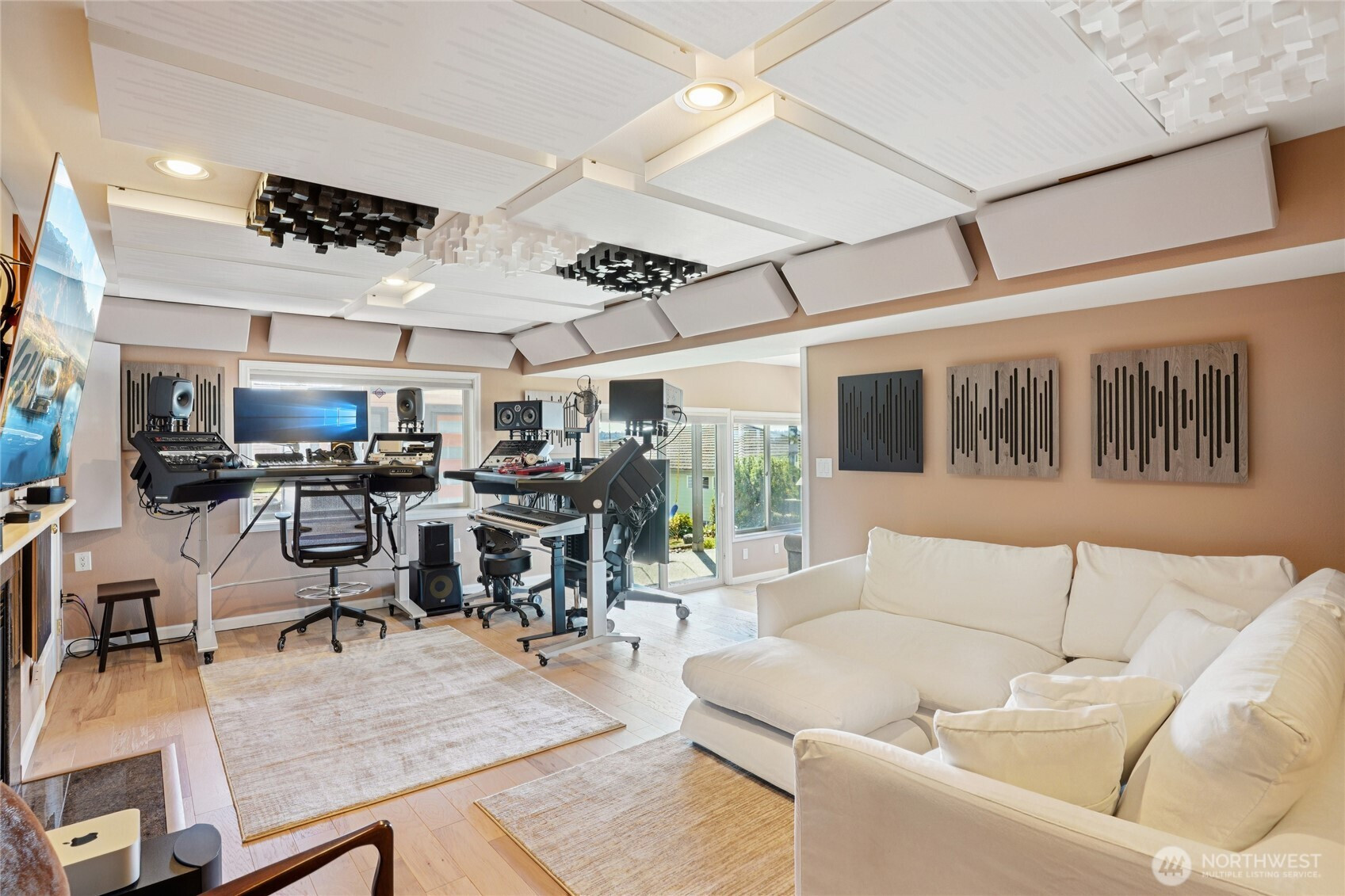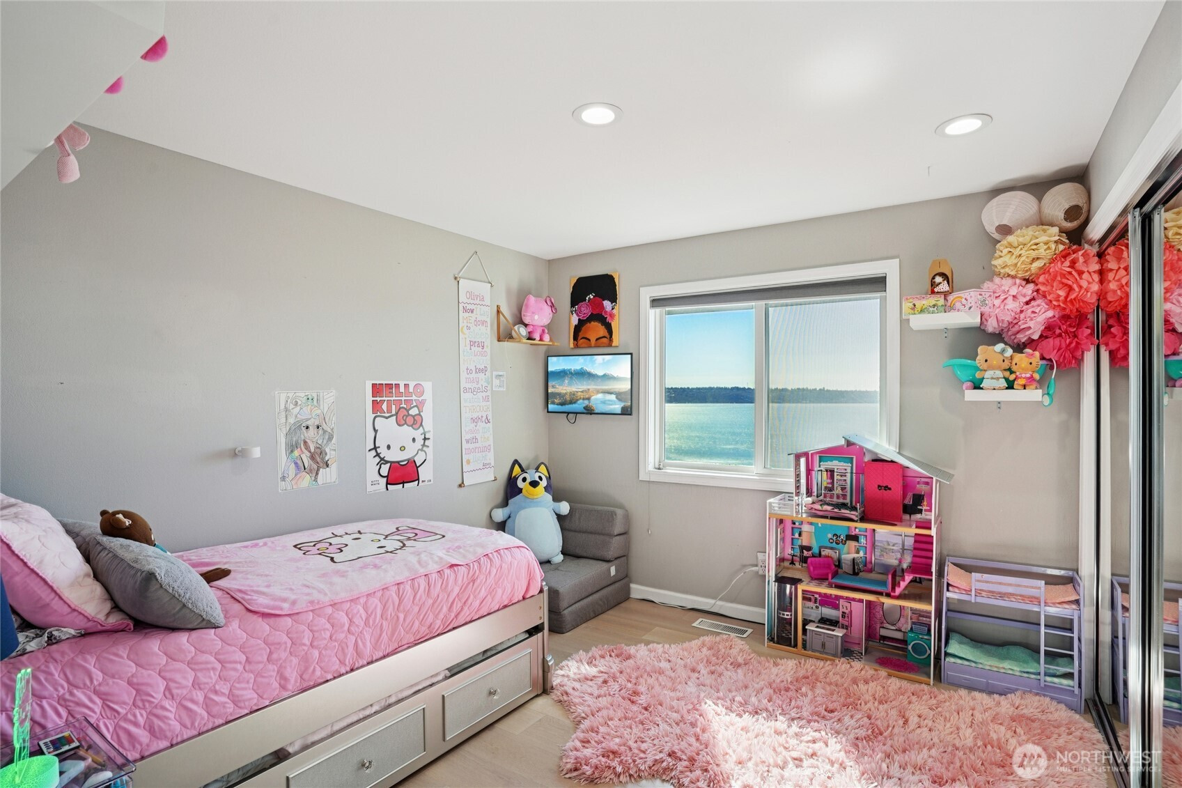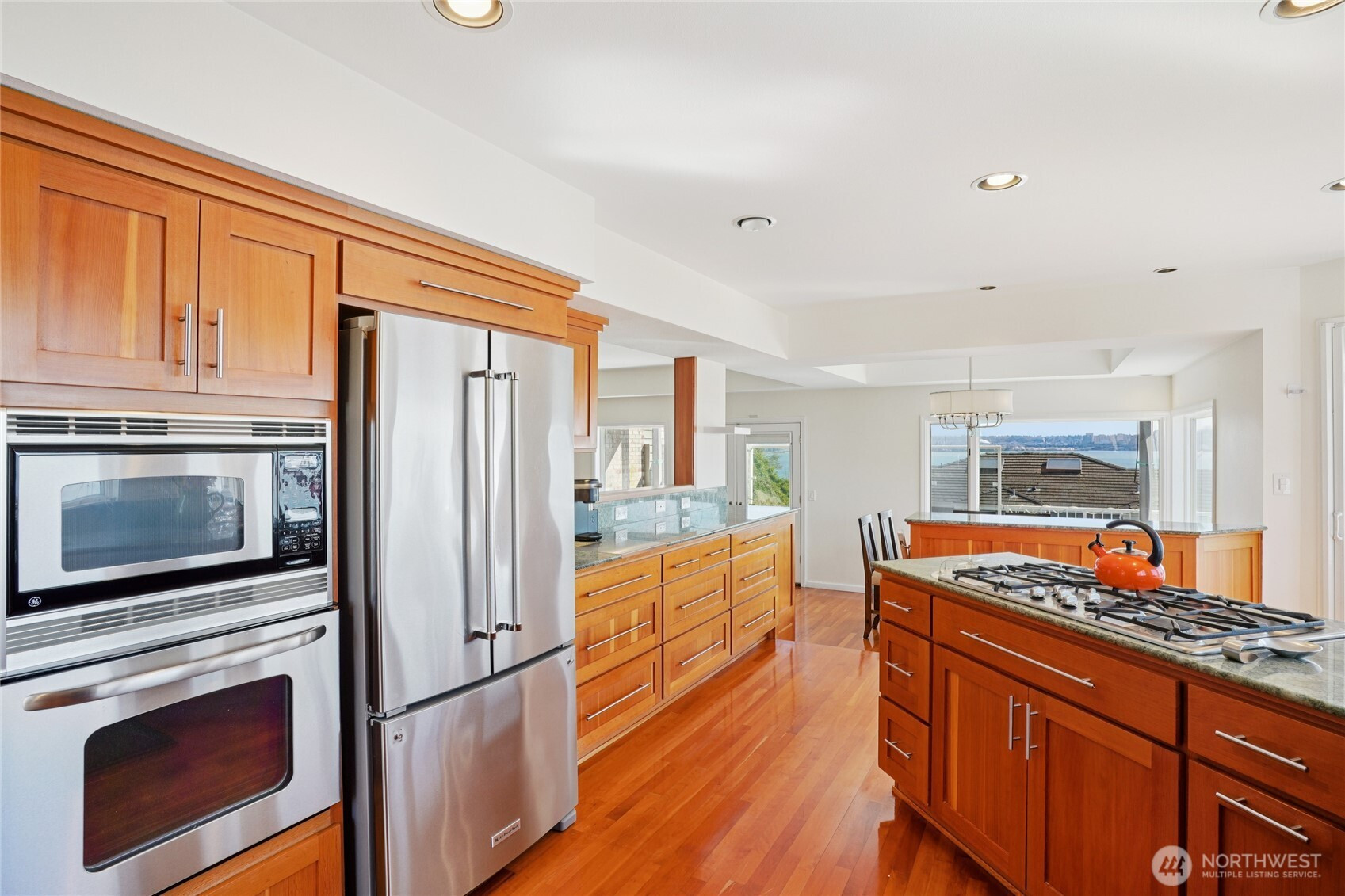 Perched for unobstructed, panoramic views of Puget Sound, this multi-level home is a rare find — designed to showcase the scenery from every level. Bright, open living, dining, and kitchen spaces on the main floor feature wood floors and new carpet, all framing breathtaking water vistas. The generous primary suite upstairs includes an oversized walk-in closet, a spa-inspired bath, and a private deck. Also upstairs are two additional bedrooms—one positioned to capture the views—and a freshly remodeled bath. Flexible lower-level living offers comfortable guest space with full-size and king-size Murphy beds. A fully remodeled detached casita adds an independent bedroom, full kitchen, bath, living area, laundry room, Puget Sound views, and its own mini-split HVAC — perfect for guests or rental income. A separate ADU behind the home is ideal for a home office and also has an amazing view of Puget Sound. Outdoor living is exceptional: three private decks, a courtyard, and a peaceful shared green space, all facing the water. Thoughtful updates include new AC and furnace, a stair lift from the garage to the courtyard, a updated half bath, and upgraded closet organization. Two-car private garage. Plus additional amenities. The HOA provides real value by covering weekly garbage and recycling, basic cable, water, outdoor pest control, and partial landscaping — reducing ongoing chores and upkeep costs. Experience maintenance-light living with spectacular, uninterrupted Puget Sound views.