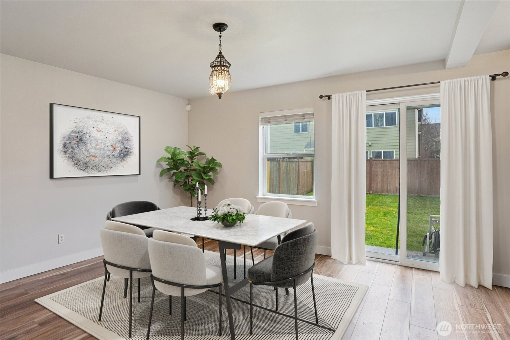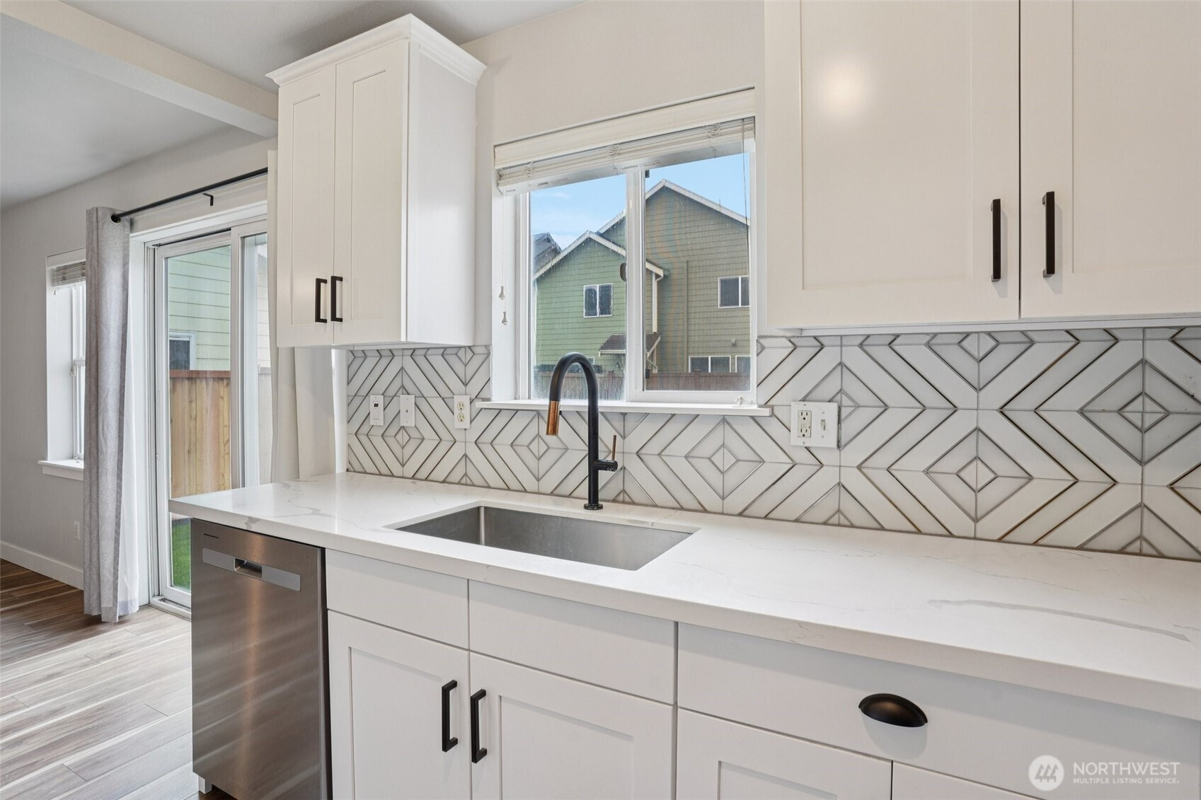Step into luxury in this renovated Radiance townhouse! This move-in-ready gem features a modern, open layout with posh finishes throughout. Chef-inspired kitchen is a true standout, boasting quartz countertops, sleek tile backsplash, stainless appliances and premium soft-close cabinetry. Open floorplan living space, luxury vinyl plank flooring, plush carpet and designer fixtures. Upstairs, enjoy the rare convenience of two spacious primary suites each with its own private en-suite bath, perfectly situated next to the laundry room. The outdoor space includes a fully fenced backyard and private patio, complemented by a 1-car garage. Nestled in the sought-after Radiance community, few minutes from abundant parks, trails and schools. With an easy commute to JBLM, Tacoma and Seattle, this home offers the perfect blend of style and convenience. Welcome Home!