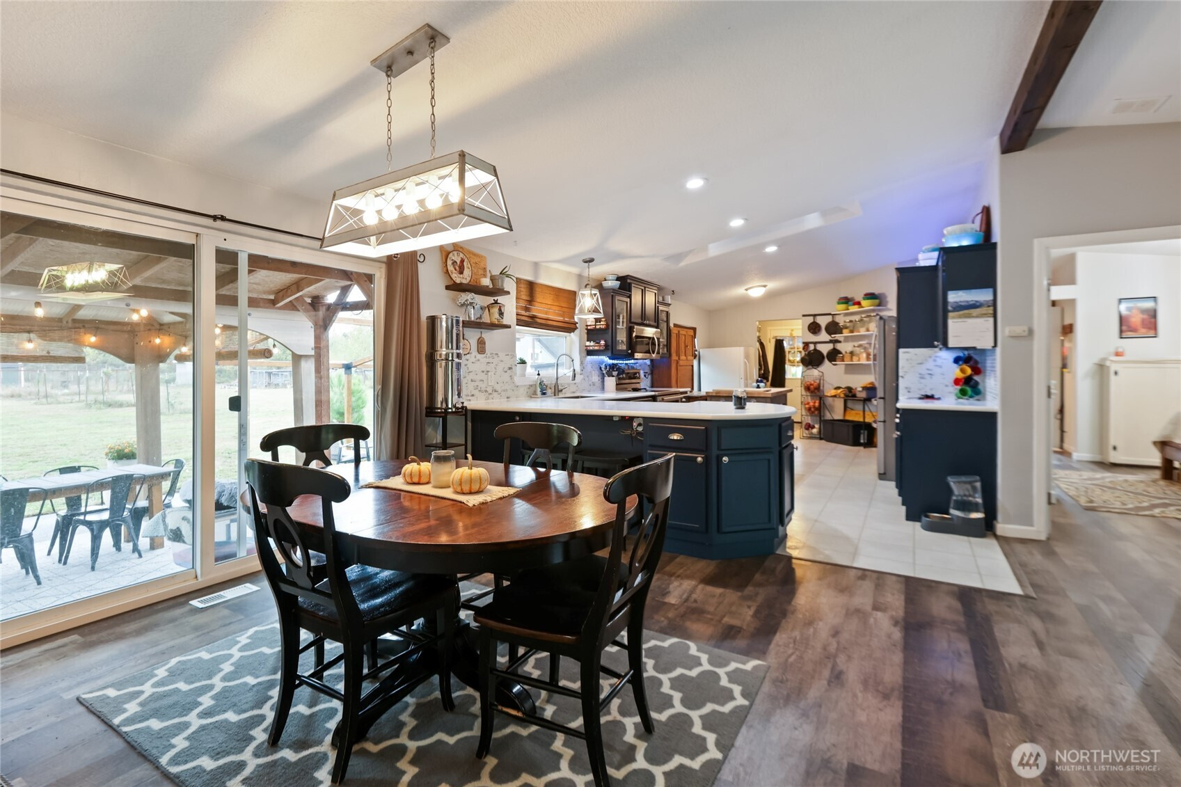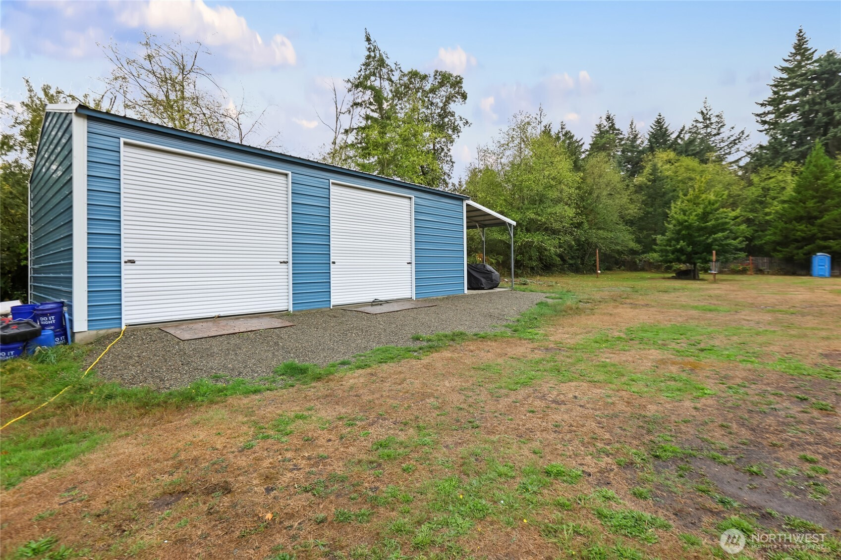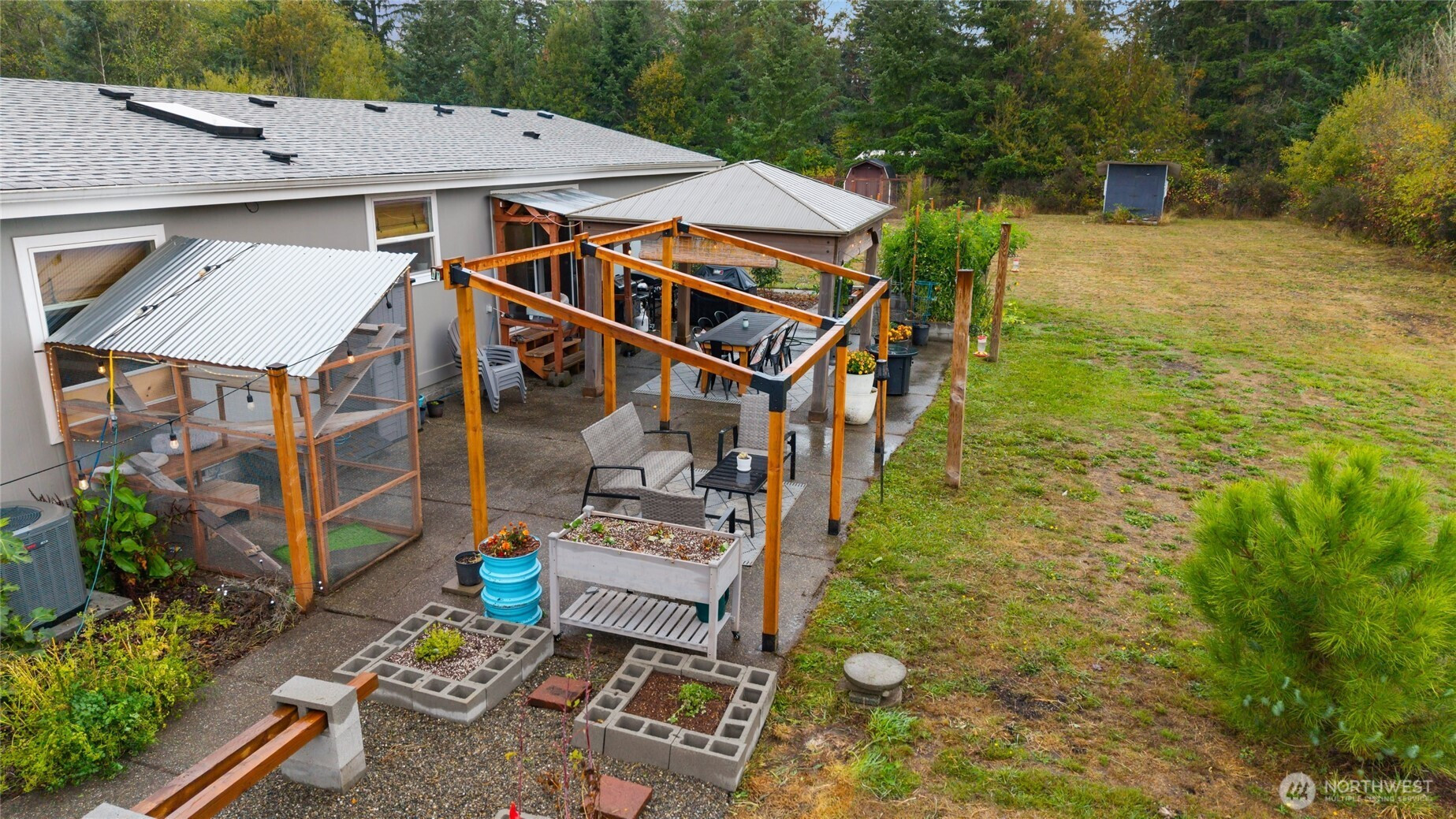 Five usable park-like acres with brand-new roof (2025) and brand-new 2+ car garage/shop! This lovingly updated home offers an open floor plan with vaulted ceilings, new flooring and paint, remodeled bathrooms, and a modern kitchen with new countertops, glass tile backsplash, and stainless steel appliances. Pellet stove and central A/C for year-round comfort. Outside you will find fresh landscaping, raised garden beds, fruit trees, many outbuildings, covered patio, fencing for animals, wired for generator, RV hookup, and 8'x'20' storage container. This move-in-ready home offers room to spread out and enjoy the country. Perfect for hobby farm, bring your animals!