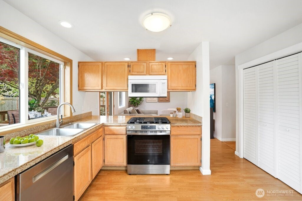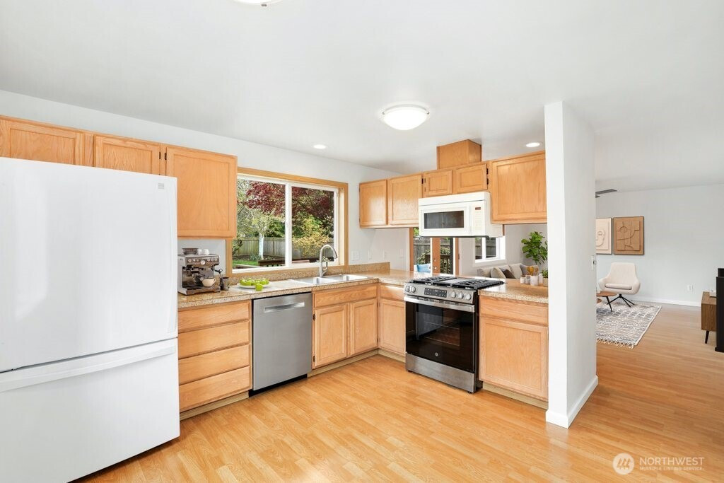 Welcome to this well maintained retreat featuring a lovely Mt. Rainier view from the front of the home. Step inside to find beautifully refurbished hardwood floors that flow through the formal living and dining rooms, complemented by updated baseboards, casing, and new interior doors throughout. The heart of the home is designed for seamless living, with all bedrooms conveniently located on the same level. The spacious primary suite serves as a true sanctuary, boasting a walk-in closet and dual-vanity ensuite. Significant "behind-the-scenes" updates provide total peace of mind: a new furnace and A/C (2024), new water heater (2023), and fully sealed crawl space with new insulation and vapor barrier (2026). Outdoor living is a dream on the large sunny lot, featuring two producing cherry trees and ample garden space. Host summer gatherings on the expansive deck off the kitchen or utilize the versatile gear shed—perfect for storage or a future home gym/office. Commuter’s paradise: Enjoy easy interstate access, the nearby 320th Light Rail stop, and a quick 15-minute drive to DT Tacoma or 30 minutes to Seattle. Just minutes to Costco, Fred Meyer, and Home Depot. This move-in-ready gem truly has it all! Mortgage savings may be available for buyers of this listing.