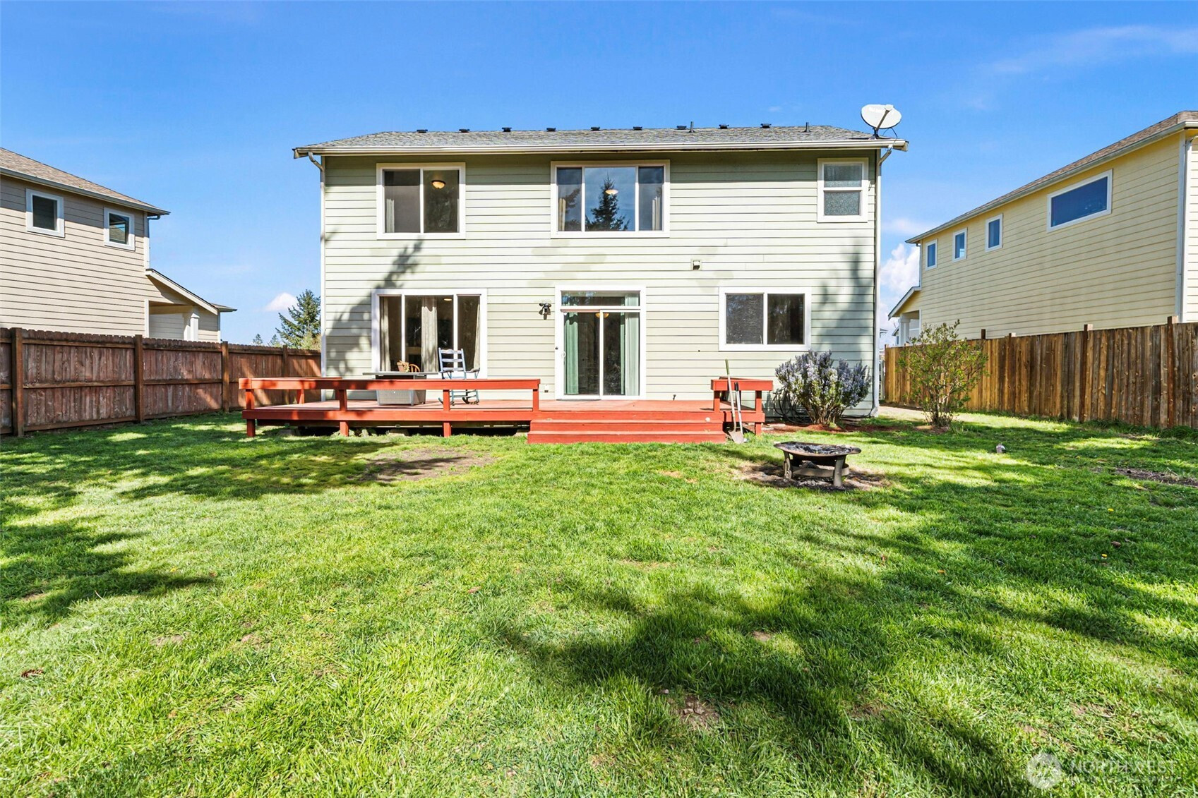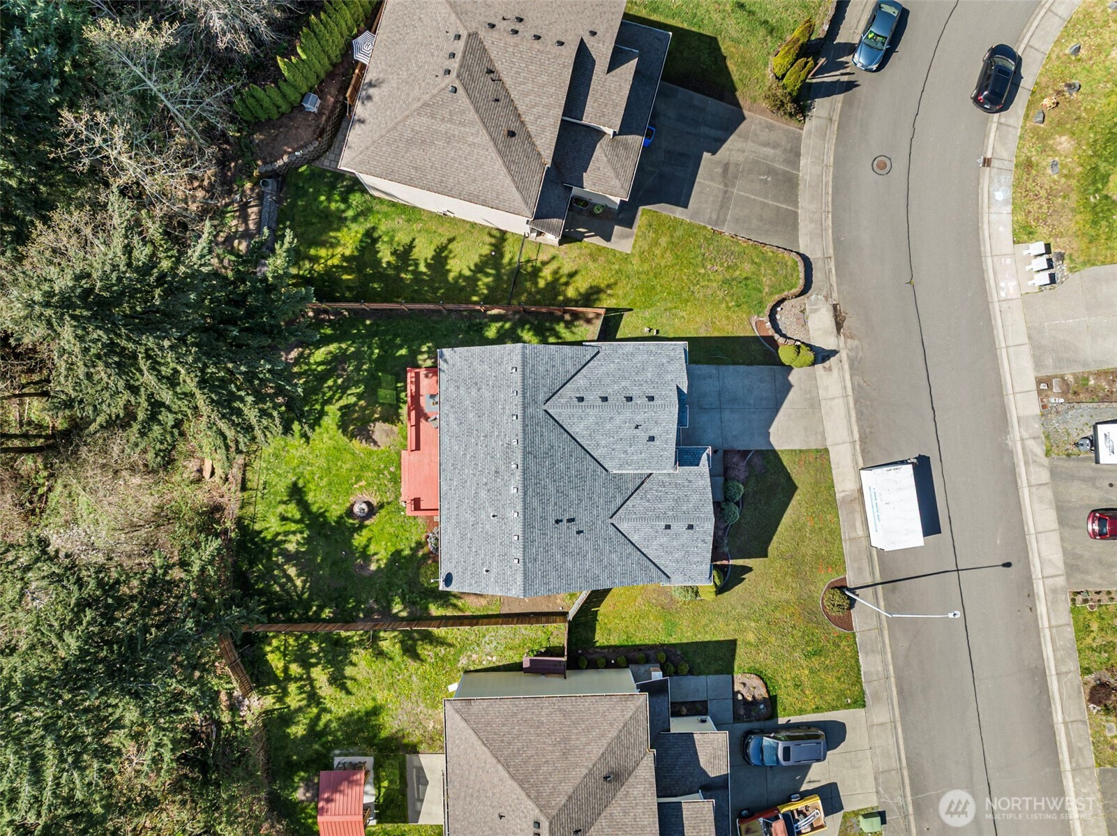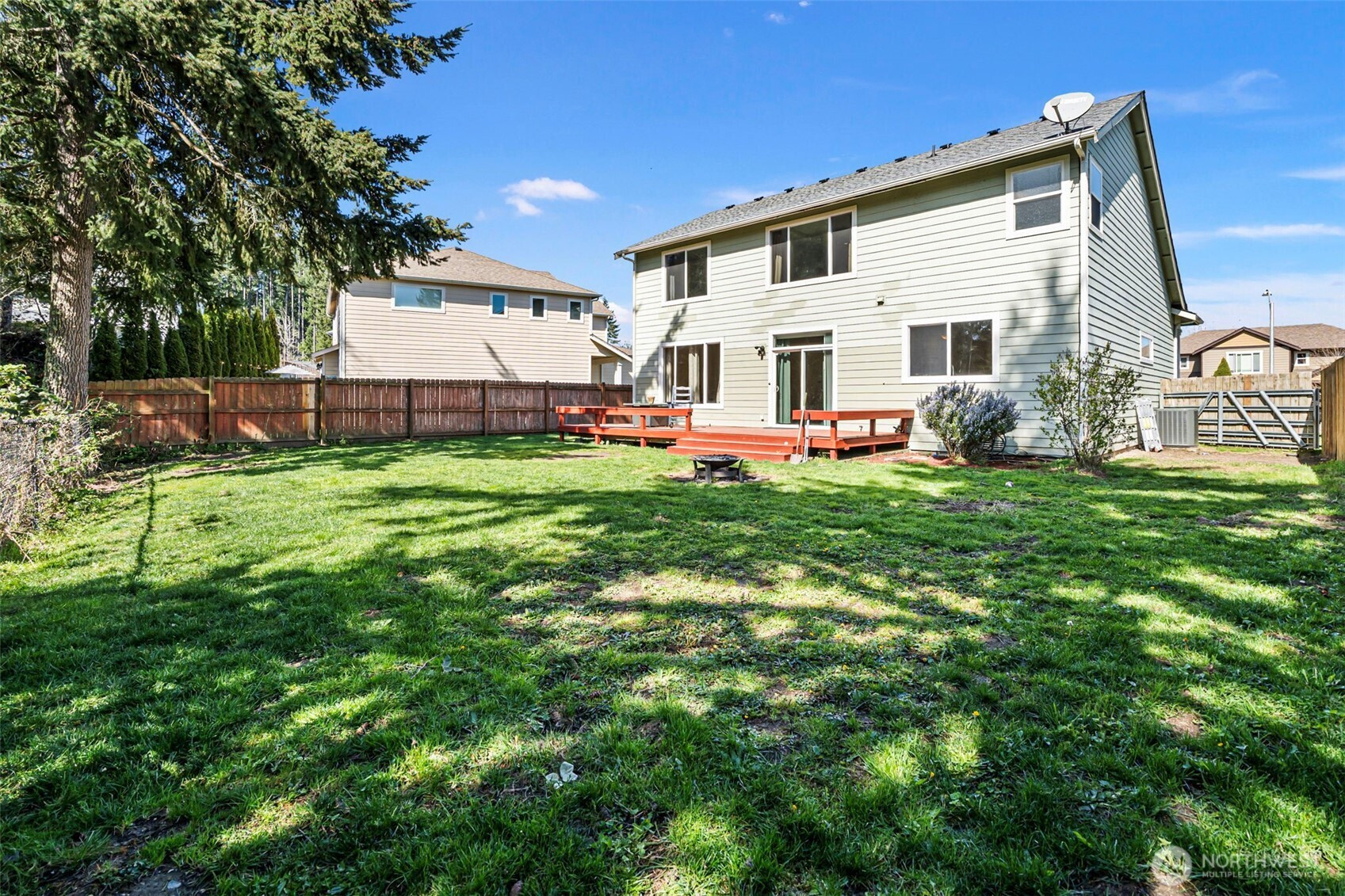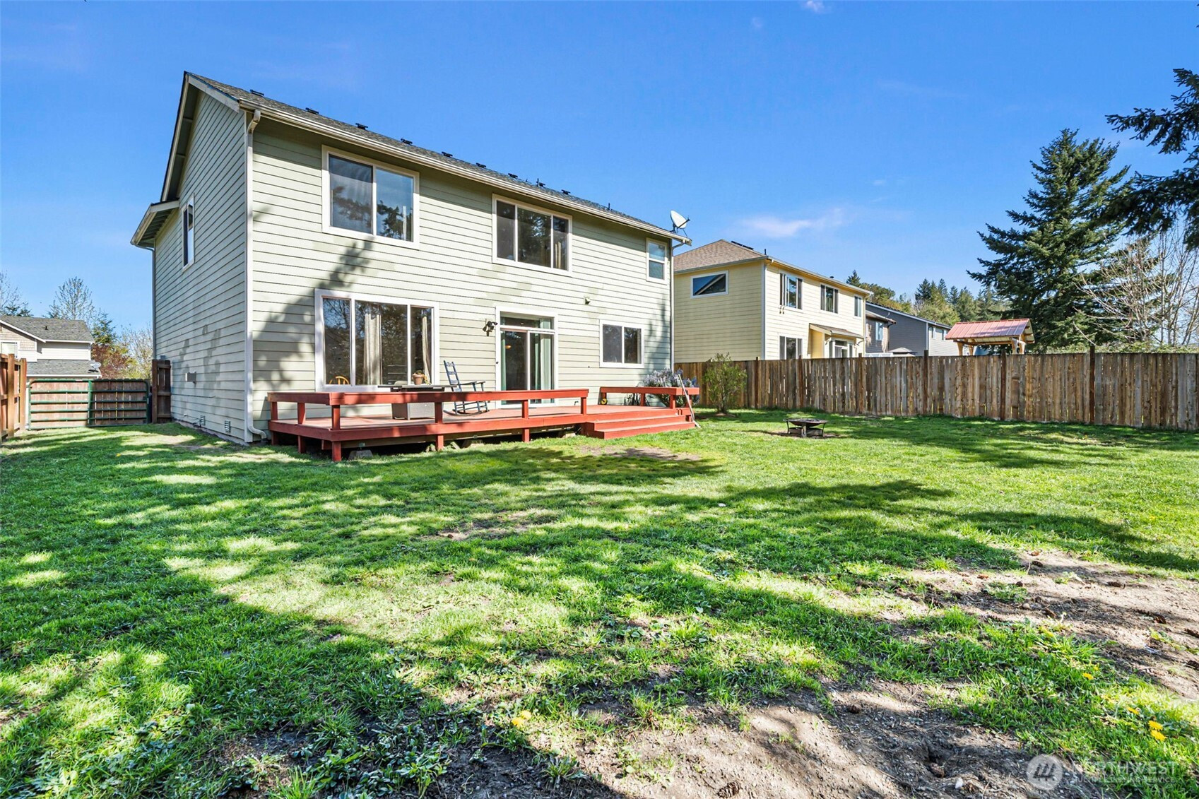 Tucked away on a quiet dead-end street and backing to a natural greenbelt, this 4-bedroom, 2.5-bath Eatonville home offers a private setting with a layout designed for everyday living. The main level features an oversized kitchen with a large island, now complemented by brand new appliances, and opens seamlessly to the dining and living areas—creating a natural flow ideal for both entertaining and daily use. A comfortable living space with a fireplace adds warmth and character to the heart of the home, while the welcoming entry with vaulted ceilings enhances the sense of space. Upstairs, you’ll find all four bedrooms, including a spacious primary suite that includes a soaking tub, separate shower, and walk-in closet. A full second bath and a conveniently located laundry room complete the upper level. The fully fenced backyard backs to a peaceful greenbelt, offering a private outdoor setting to relax or entertain, with a deck that extends your living space into the natural surroundings. Additional features include a new 30 year roof, two-car attached garage and a location that blends quiet surroundings with convenient access to nearby amenities.