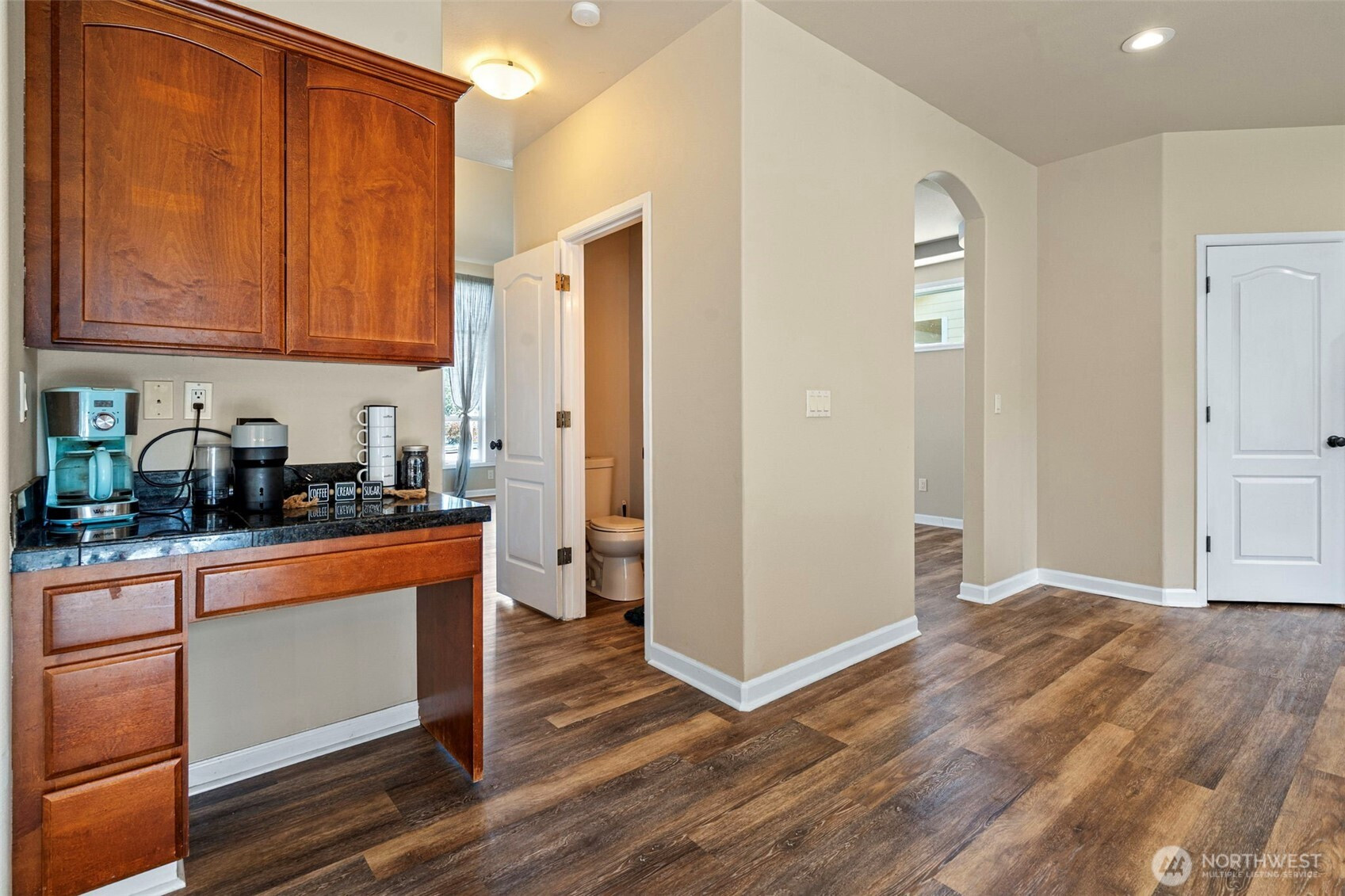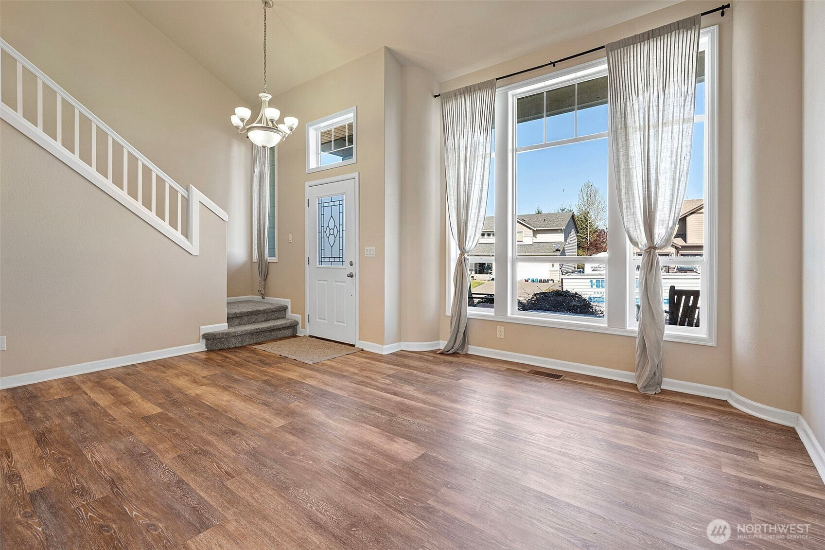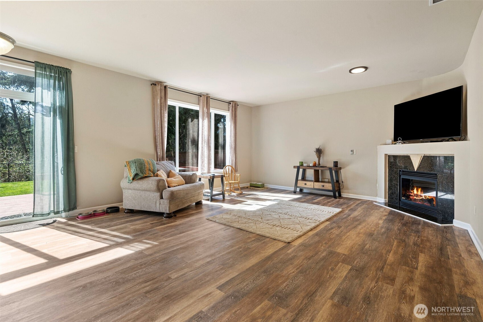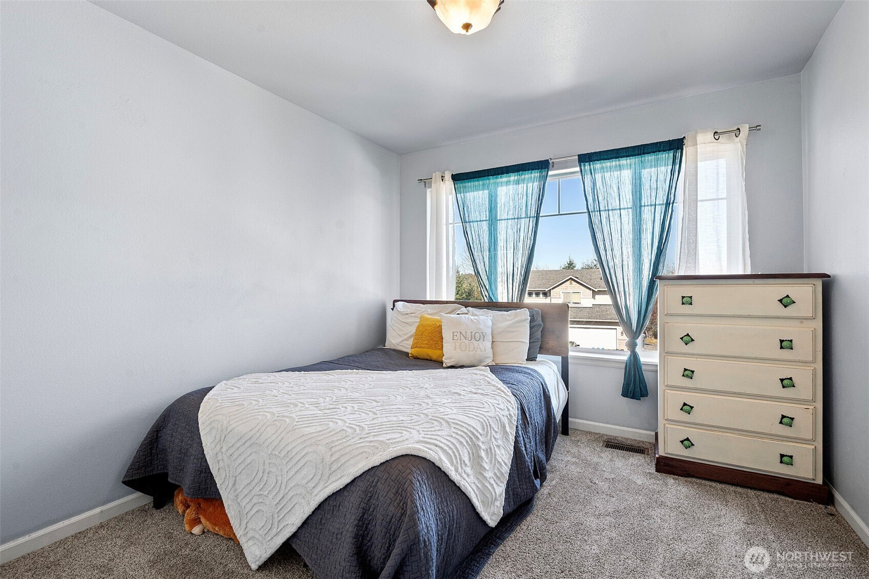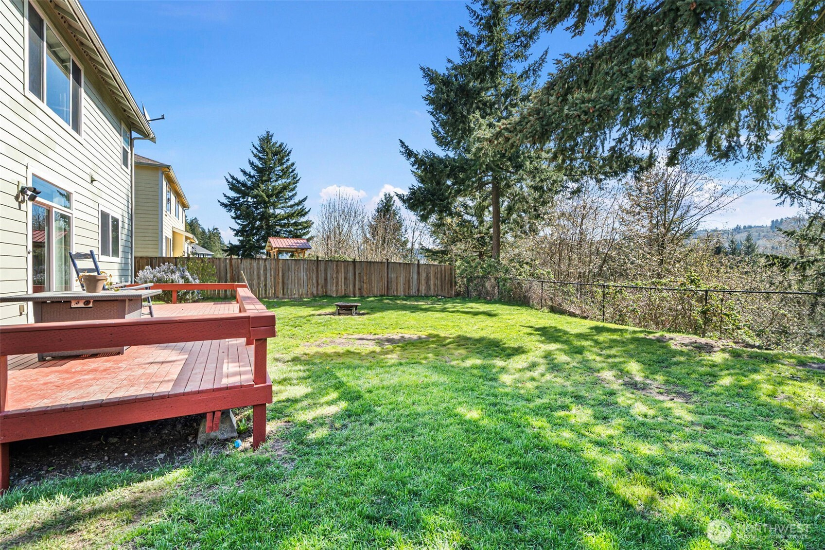 Tucked away on a quiet dead-end street and backing to a natural greenbelt, this 4-bedroom, 2.5-bath Eatonville home offers a private setting with a layout designed for everyday living. The main level features an oversized kitchen with a large island, now complemented by brand new appliances, and opens seamlessly to the dining and living areas—creating a natural flow ideal for both entertaining and daily use. A comfortable living space with a fireplace adds warmth and character to the heart of the home, while the welcoming entry with vaulted ceilings enhances the sense of space. Upstairs, you’ll find all four bedrooms, including a spacious primary suite that includes a soaking tub, separate shower, and walk-in closet. A full second bath and a conveniently located laundry room complete the upper level. The fully fenced backyard backs to a peaceful greenbelt, offering a private outdoor setting to relax or entertain, with a deck that extends your living space into the natural surroundings. Additional features include a new 30 year roof, two-car attached garage and a location that blends quiet surroundings with convenient access to nearby amenities.