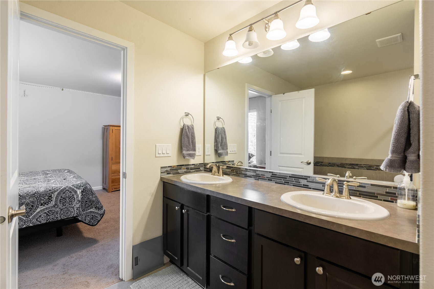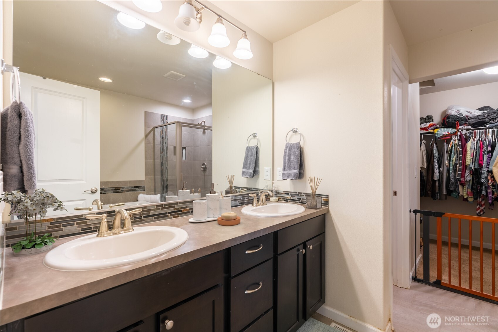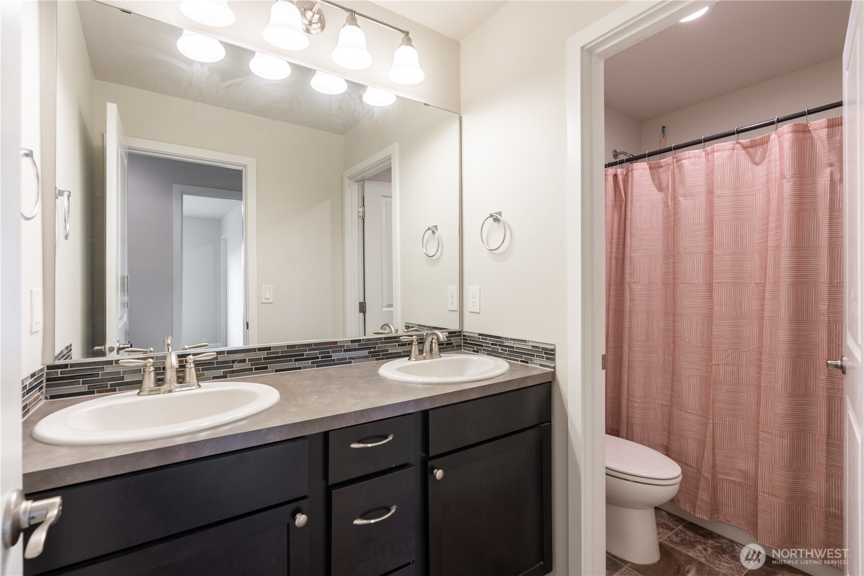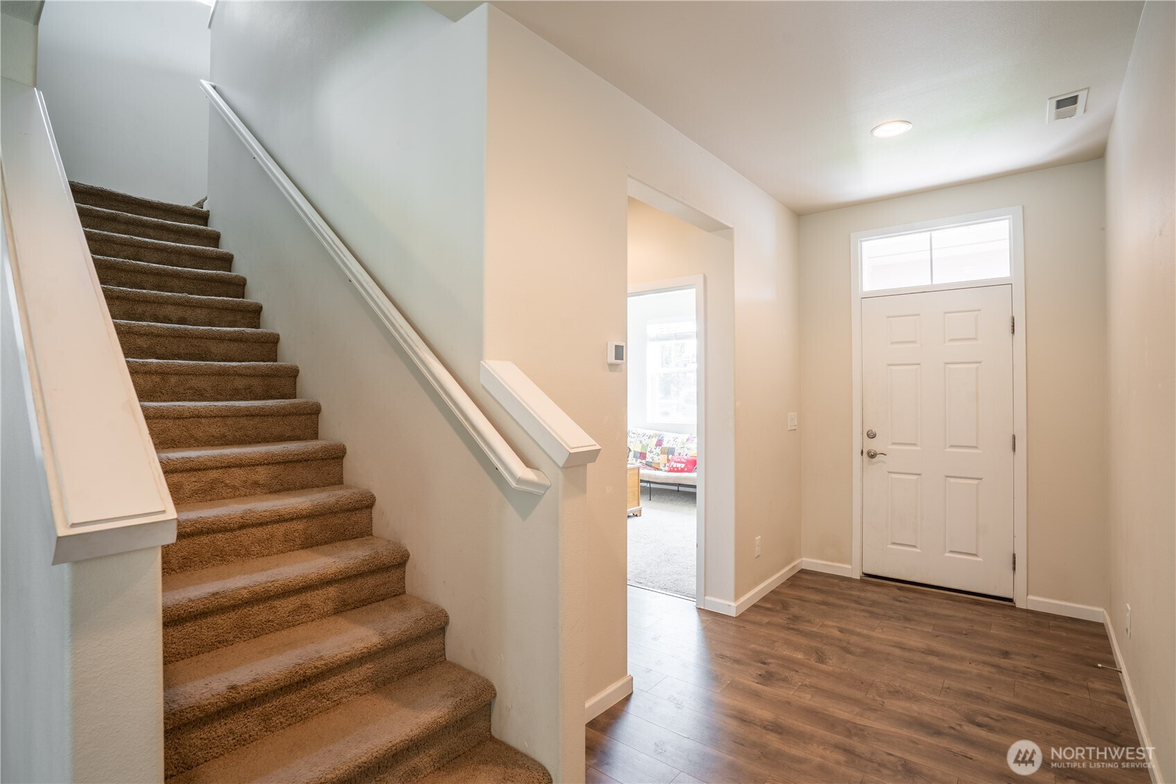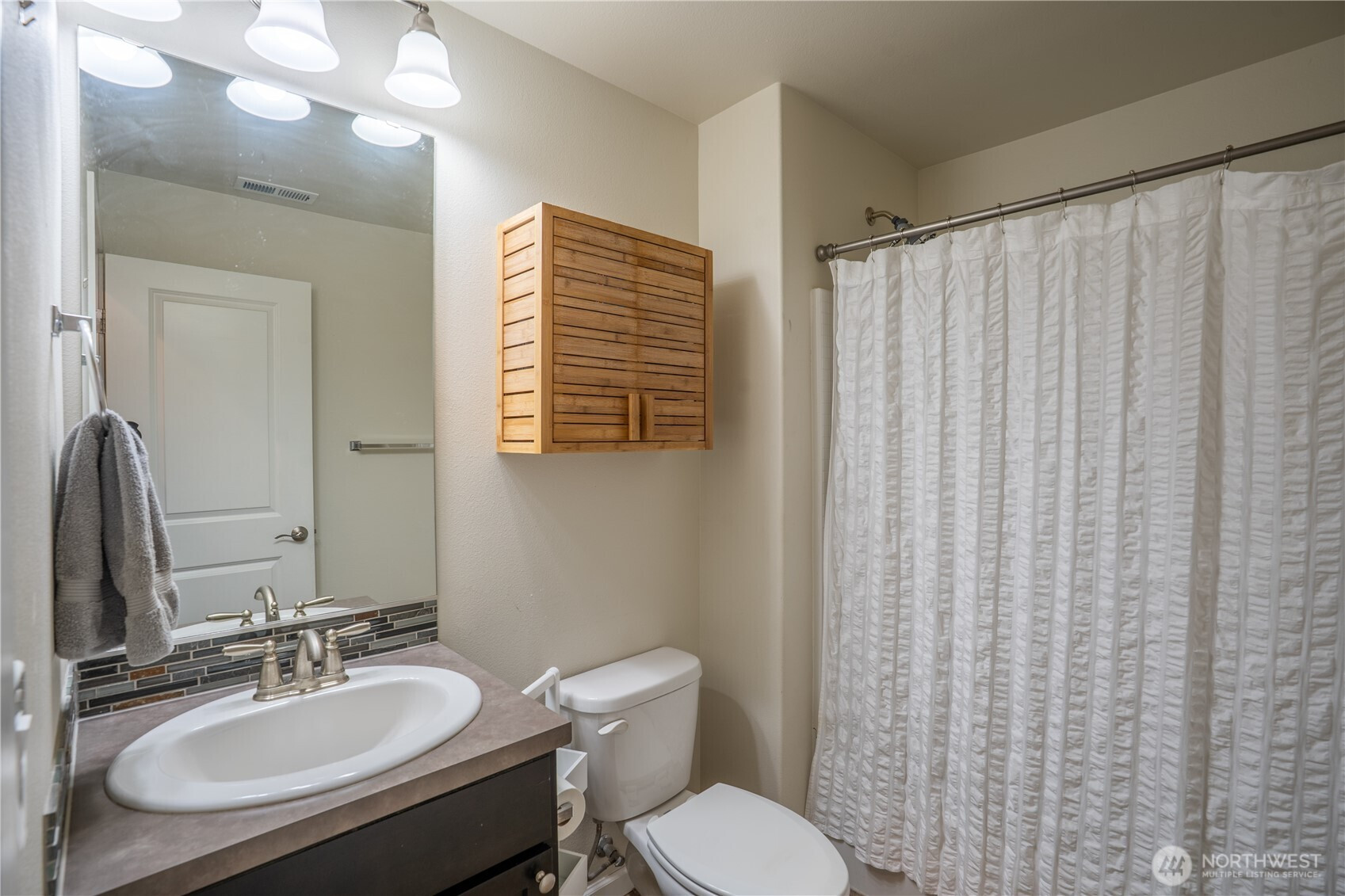 Set your sights on home ownership in Summerwood Park! Beautiful plank flooring greets you & flows to living with corner gas fireplace, dining area & island kitchen with rich cabinets, granite counter tops, stainless appliances & walk-in pantry. Rare main floor guest bedroom & full bath. Upstairs offers loft/flex space. Large primary bedroom with en suite 5-piece bath & large walk-in closet. Generous secondary bedrooms & convenient upstairs laundry. Complete with custom 2 inch blinds. Enjoy the covered outdoor space open to your private, flat, fenced back yard with peaceful scenery. 2-car garage has TONS of storage. Nearby community park. Convenient commute to Hwy 512, JBLM. Centered between Puyallup, Tacoma & Spanaway amenities/resources.