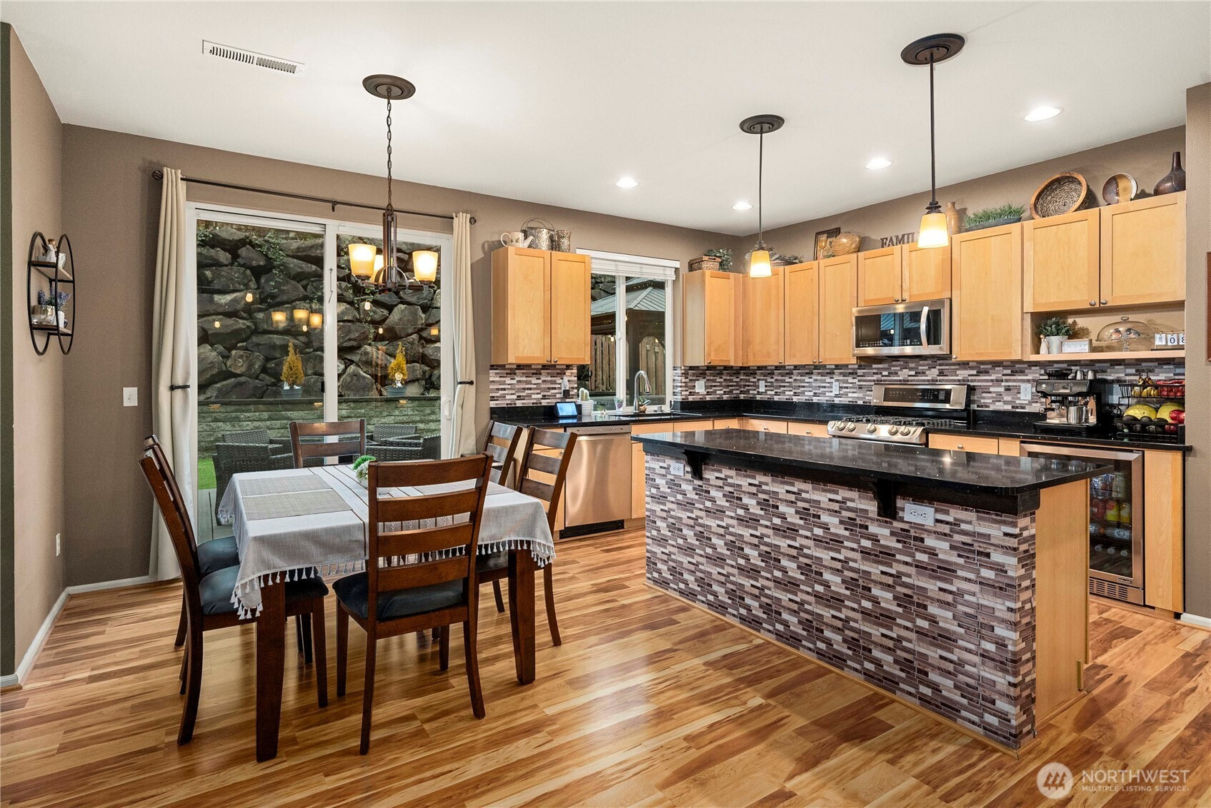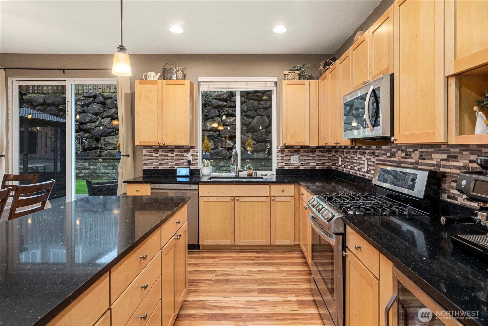 (503) 893-8874Located in the desirable gated Verona community of Lakeland Hills, this updated home features 5 bedrooms, 3 baths, a 3-car garage, two EV chargers, and a freshly painted exterior. Thoughtfully designed living and dining rooms flow into a beautifully appointed kitchen with new laminate flooring, new countertops, and new appliances. Major 2024 upgrades include a new furnace, water heater, and heat pump/AC. The backyard is a private oasis with turf grass, composite decking, two gazebos, storage, and full fencing—perfect for elevated outdoor living. Enjoy nearby parks, walking paths, shopping, dining, the park-and-ride, and quick access to Lake Tapps County Park. One owner home.