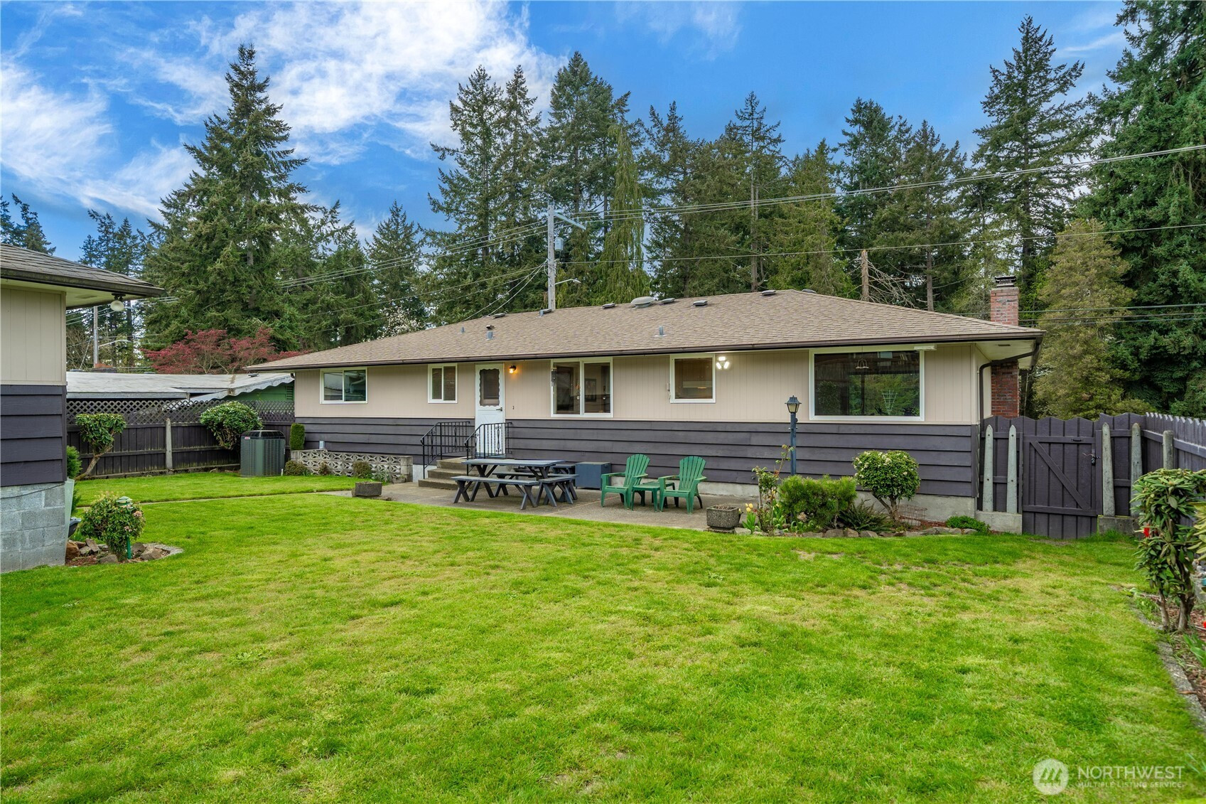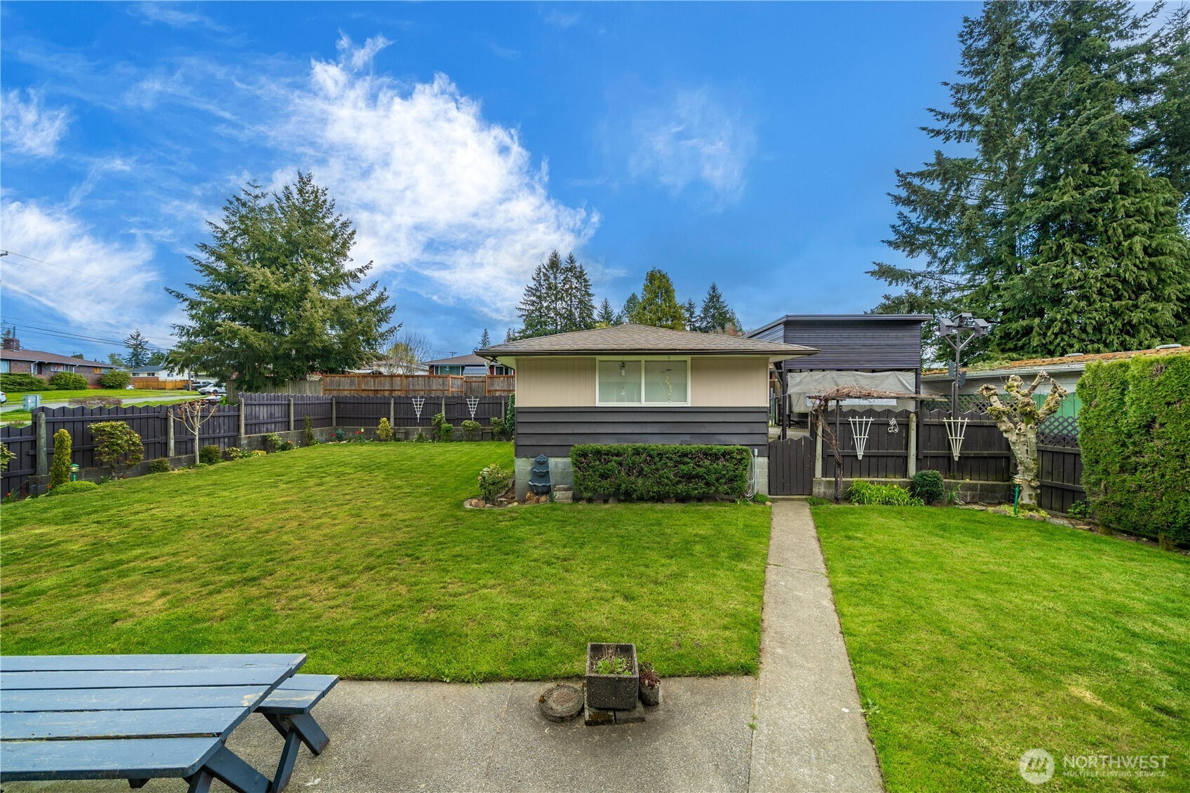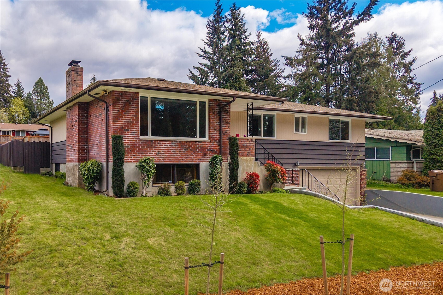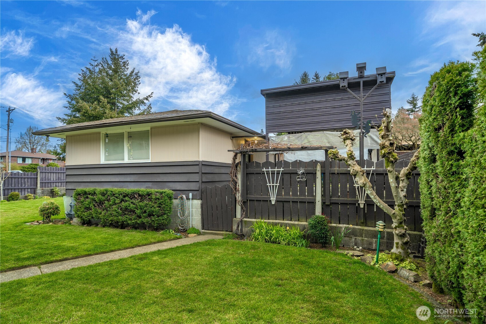 Rare opportunity to own a pristine, authentically preserved mid-century modern home directly across from scenic Wapato Park. This architectural gem showcases iconic original details, including the signature three-diamond light front door and true-to-era character throughout—an unspoiled example of classic 1960s design. Original hardwood floors, clean lines, and a bright, sun-filled layout highlight the home’s timeless style. Offering 4 bedrooms and 3 bathrooms, this two-story home with a full basement blends vintage charm with flexible living. The main level includes three bedrooms, while the finished basement adds a private fourth bedroom, additional bath with walk-in tub, expansive rec room, and separate entry—ideal for guests, multi-generational living, or a home office. Ample parking includes a 2-car garage, detached garage/shop, and covered carport, plus alley access for RV parking or projects. Freshly painted and meticulously maintained, this move-in ready home also features a fully fenced backyard and easy access to amenities, parks, and transit.