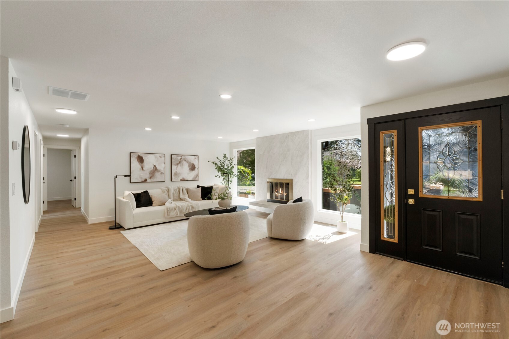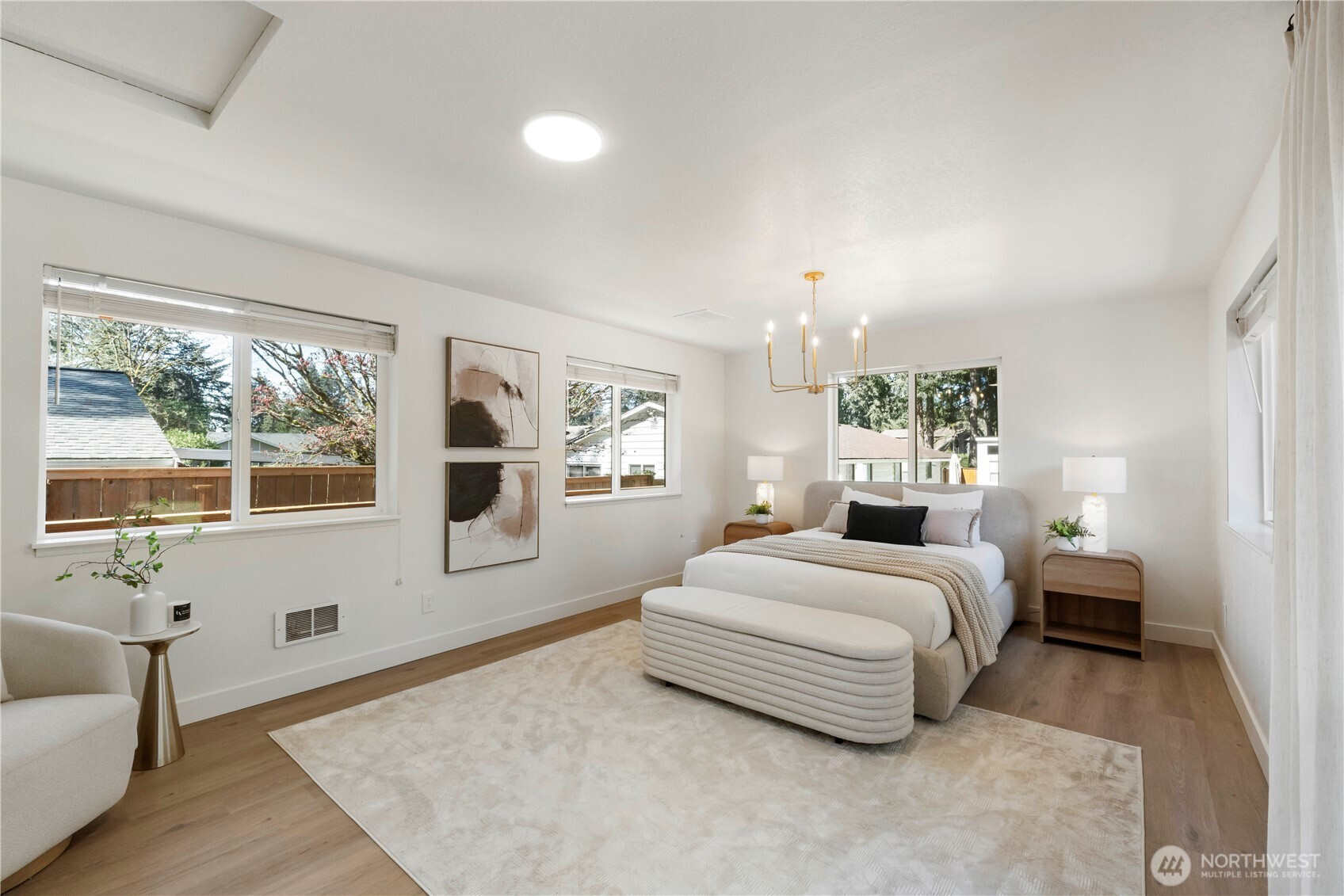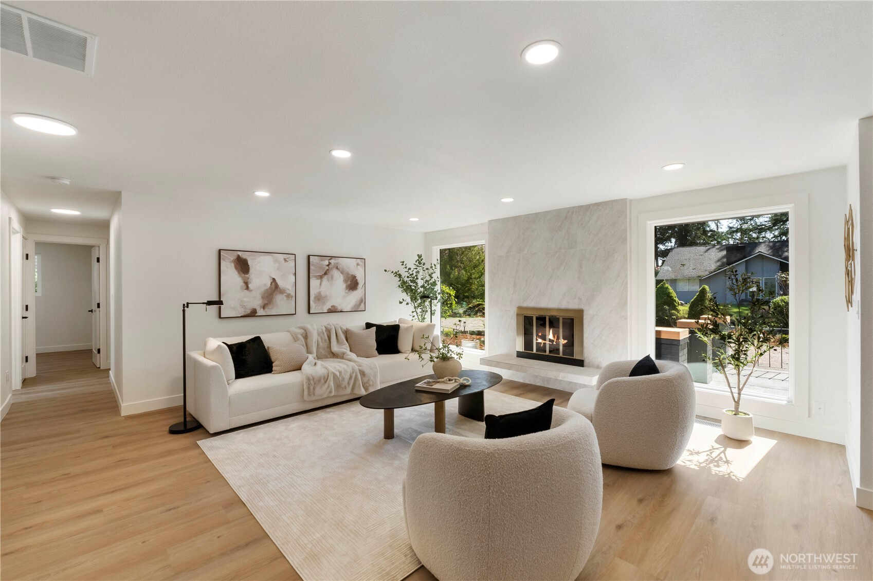 Beautifully updated with a fresh, modern aesthetic, this stunning single-level home offers effortless living in one of Lakewood’s most desirable neighborhoods—Oakbrook. Featuring 4 bedrooms and 2.75 baths, this home is thoughtfully designed to provide both comfort and flexibility.The open-concept layout creates a bright and inviting atmosphere, perfect for everyday living and entertaining. At the heart of the home, the kitchen shines with sleek finishes, a spacious island, and a highly functional layout that blends style and practicality. The living area feels warm and welcoming, anchored by a striking focal point that enhances the home’s modern appeal.The primary suite is a true retreat, complete with a luxurious 5-piece en suite bath designed for relaxation. Additional bedrooms offer versatility for guests, a home office, or evolving lifestyle needs. Step outside to a generous yard ready to be transformed into your own private oasis—ideal for outdoor living, entertaining, or peaceful relaxation. Set in the established and sought-after Oakbrook community, this home combines stylish updates, convenient one-level living, and an unbeatable location—an exceptional opportunity you don’t want to miss.