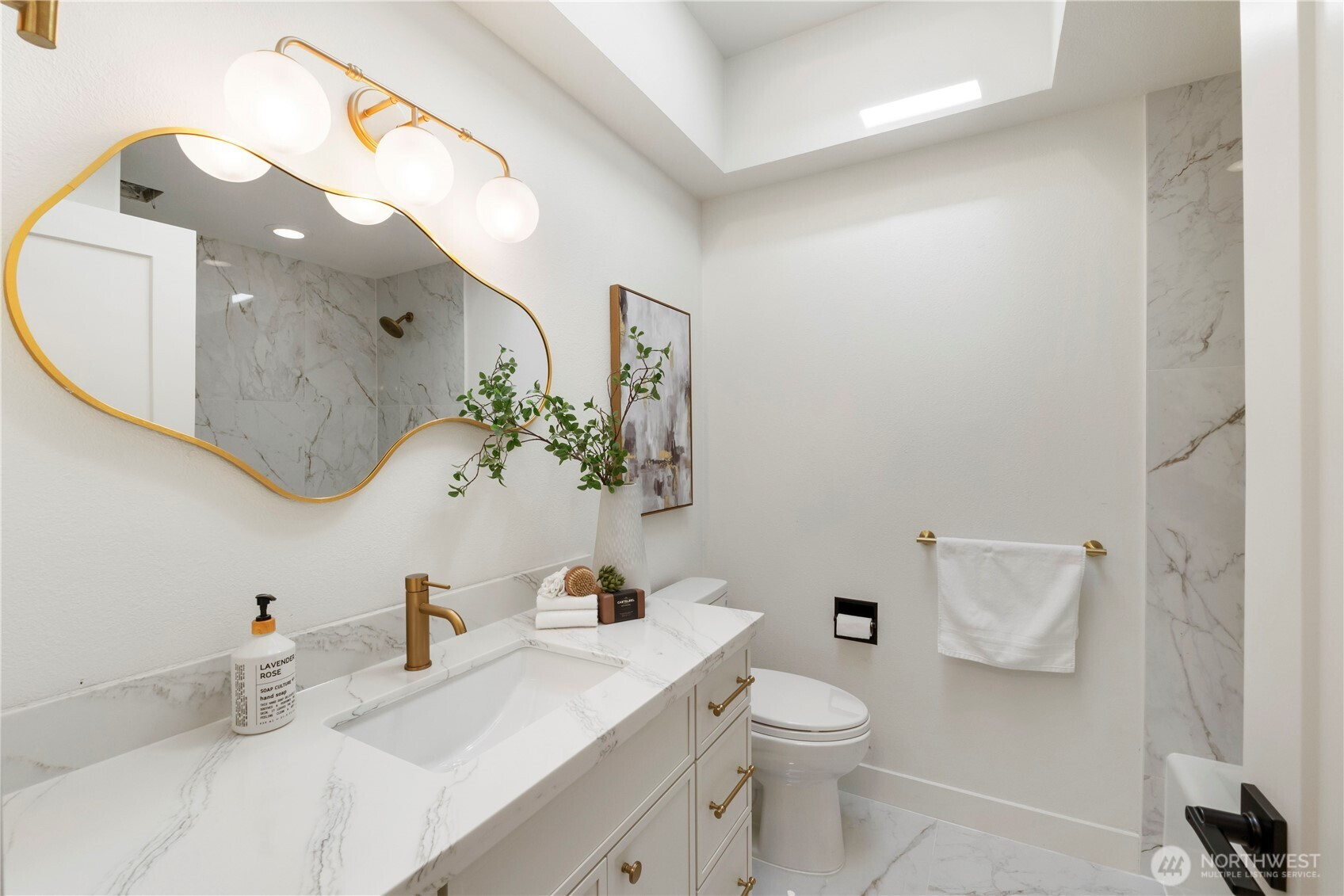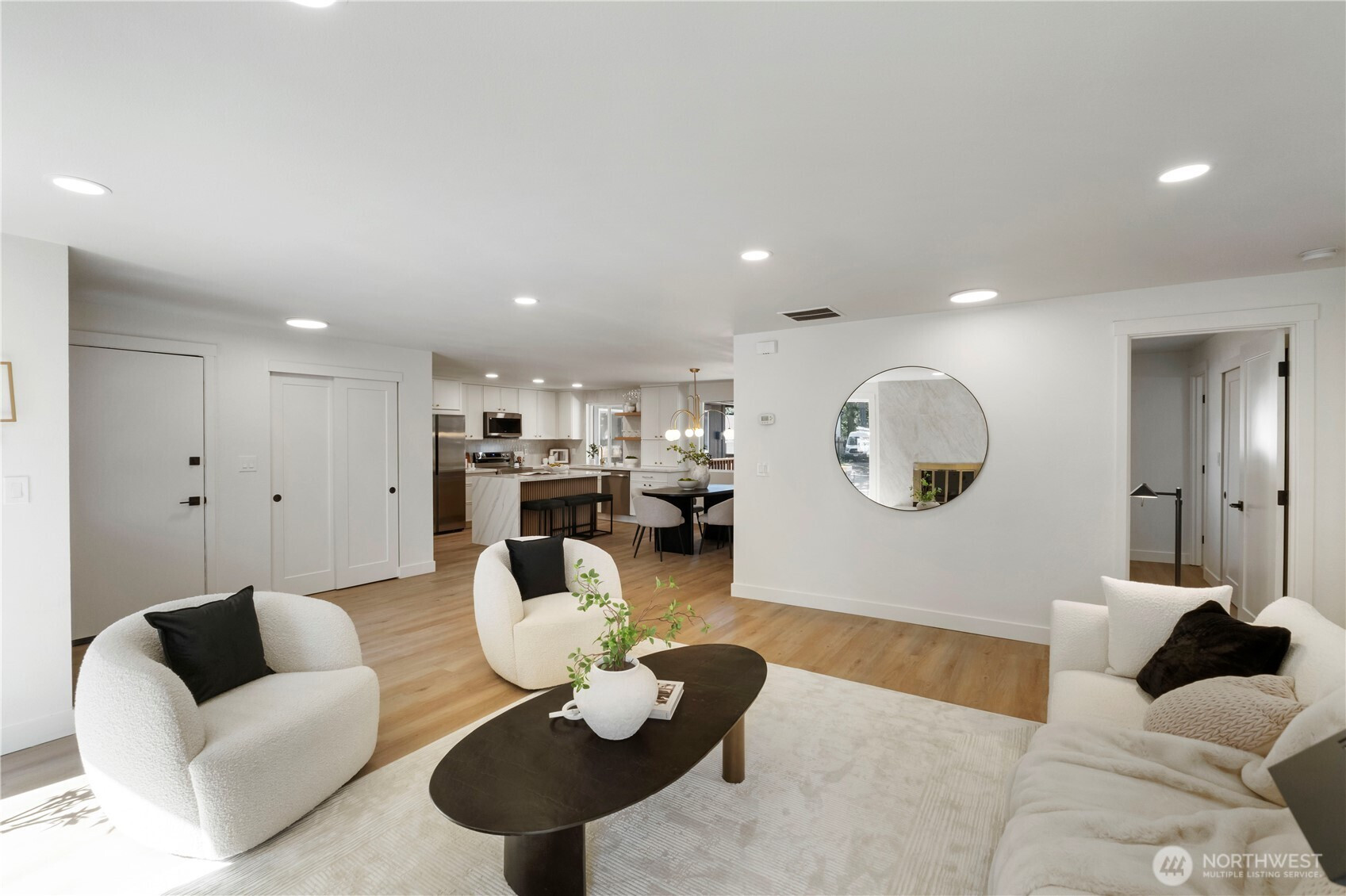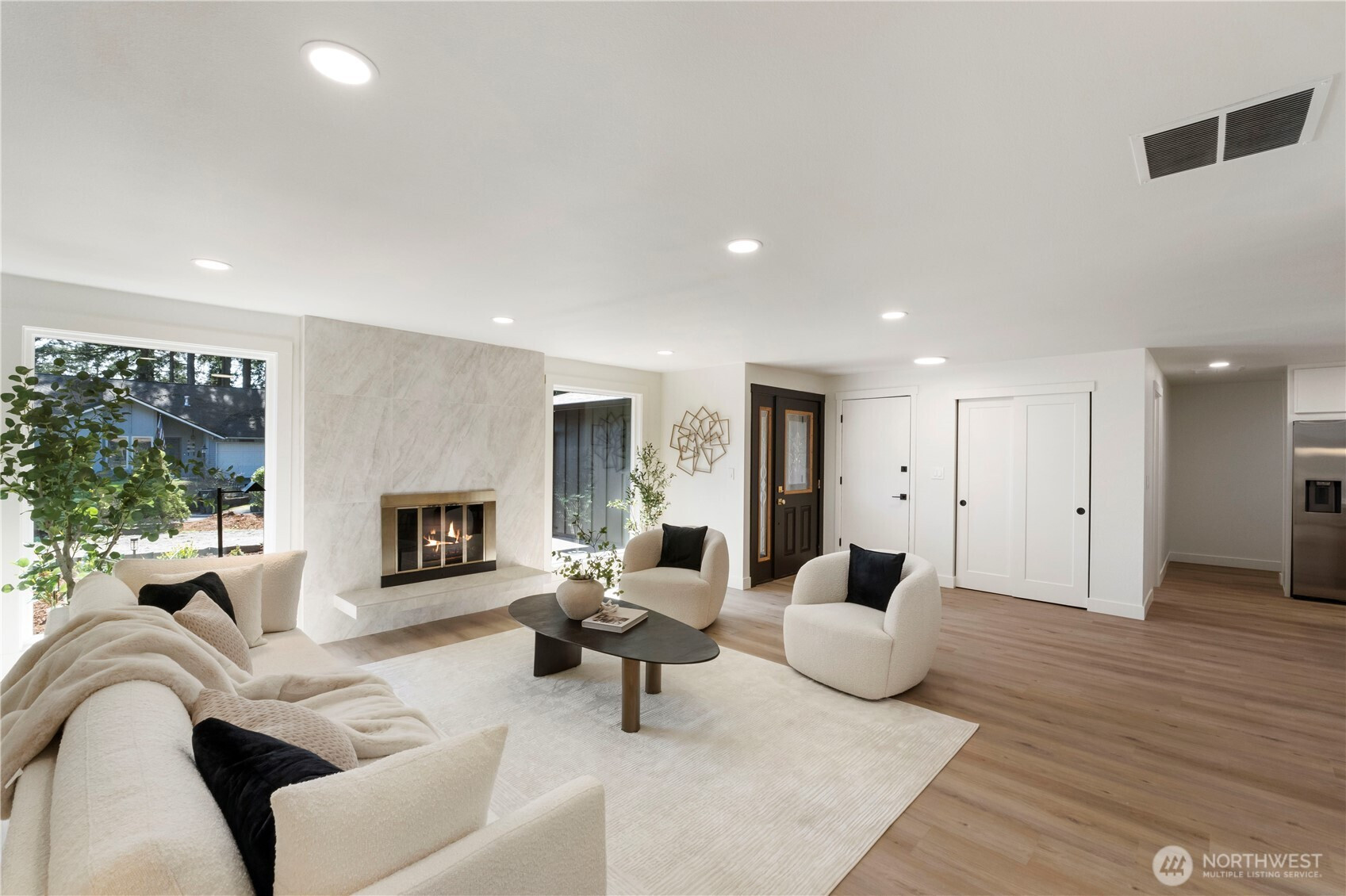 Beautifully updated with a fresh, modern aesthetic, this stunning single-level home offers effortless living in one of Lakewood’s most desirable neighborhoods—Oakbrook. Featuring 4 bedrooms and 2.75 baths, this home is thoughtfully designed to provide both comfort and flexibility.The open-concept layout creates a bright and inviting atmosphere, perfect for everyday living and entertaining. At the heart of the home, the kitchen shines with sleek finishes, a spacious island, and a highly functional layout that blends style and practicality. The living area feels warm and welcoming, anchored by a striking focal point that enhances the home’s modern appeal.The primary suite is a true retreat, complete with a luxurious 5-piece en suite bath designed for relaxation. Additional bedrooms offer versatility for guests, a home office, or evolving lifestyle needs. Step outside to a generous yard ready to be transformed into your own private oasis—ideal for outdoor living, entertaining, or peaceful relaxation. Set in the established and sought-after Oakbrook community, this home combines stylish updates, convenient one-level living, and an unbeatable location—an exceptional opportunity you don’t want to miss.