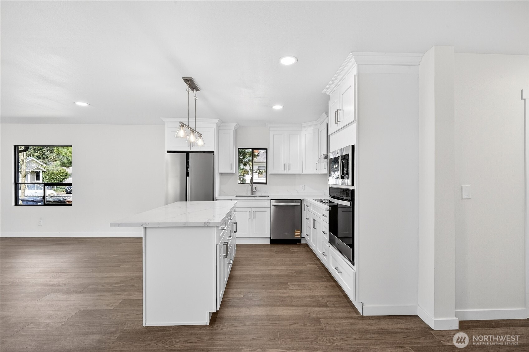 Step inside… and feel what happens when a home is done right. Not patched. Not flipped fast. Transformed. From the moment you walk through the door, you’re greeted by a wide-open living space flooded with natural light—clean lines, warm flooring, and a layout designed for real life (and real gatherings). The kind of space where conversations flow, and memories actually happen. Then your eyes land on the kitchen. Quartz counters. Crisp white cabinetry. Stainless steel appliances. A center island that doesn’t just look good—it pulls people in. This is where mornings start, weekends linger, and guests never want to leave. With 5 true bedrooms and 3 full baths, this home solves a problem most buyers can’t solve: space without compromise. Whether it’s multi-generational living, work-from-home flexibility, or simply room to breathe—you have it here. Every detail has been thought through. Fresh finishes. Updated systems. Clean, modern bathrooms. Even the laundry space is dialed in. And outside? A large lot, detached garage, and room for parking, projects, or future possibilities. No tight squeeze. No limitations. But here’s what matters most…Homes like this don’t sit. They attract attention fast—because buyers instantly recognize when something stands above the rest. What this means for you: You’re not just buying a house—you’re stepping into a home that’s already done, already dialed, and ready for your next chapter. Once you walk through… it will be hard to walk away.