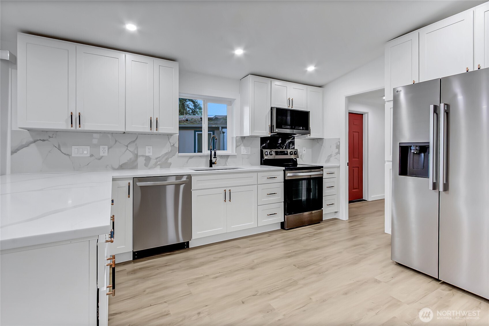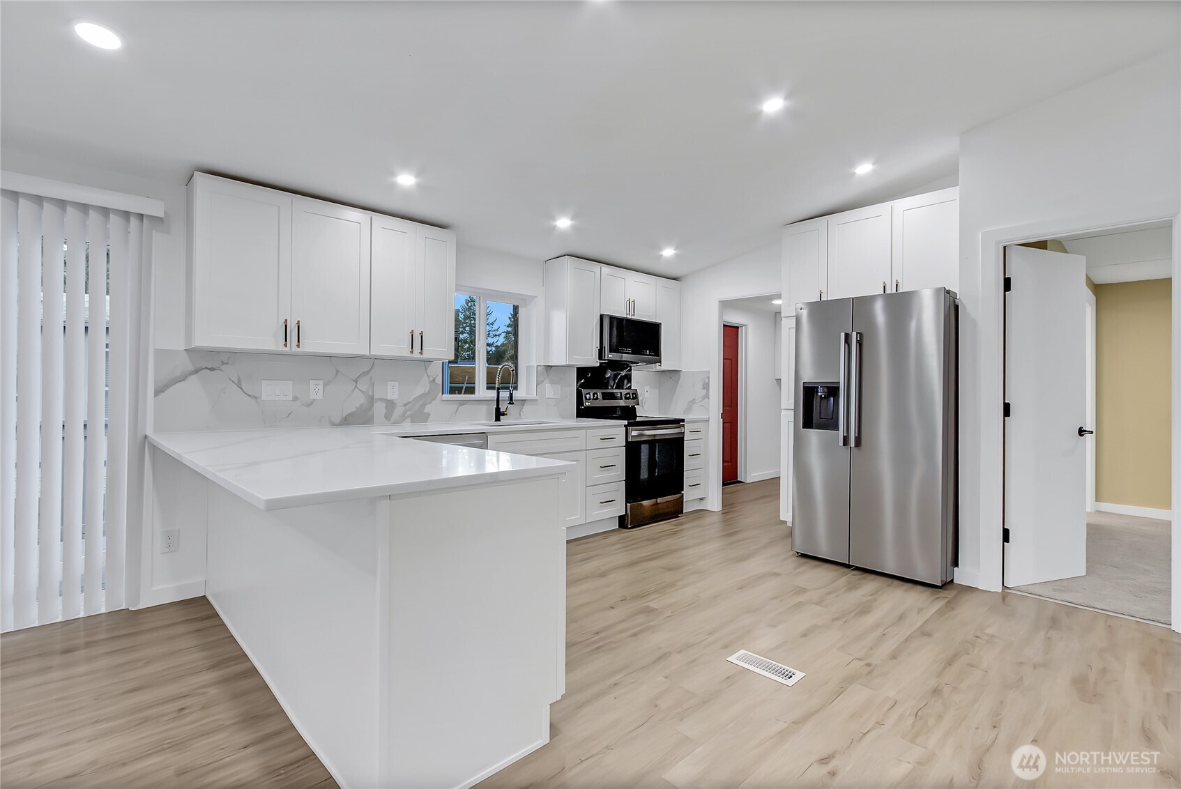 Wonderful Remodeled in all-age Winchester Village MH Park! Home offers 3 bedrooms 1.75 bath. Brand new kitchen w/lots of cabinet space & beautiful 3-seems quartz countertops with beautiful marble tile backsplash~New stainless steel appliances included. Spacious living room open to kitchen, dining space & kitchen breakfast bar. Great main bedroom with a large closet & bathroom featuring stunning marble tile on the walls and a new vanity with a quartz countertop. Two more spacious bedrooms with large closets. The hallway bathroom has a new vanity with a quartz countertop, a new tub, a new glass door & pretty much everything is new. New waterproof laminate flooring throughout most of the home & new carpet in the main bedroom. New roof~New windows~New plumbing-New lighting features~this MH is better than new. Plenty of parking 2-car carport & 2-car driveway~large storage space with power~huge backyard. This park is spotless and well-managed.