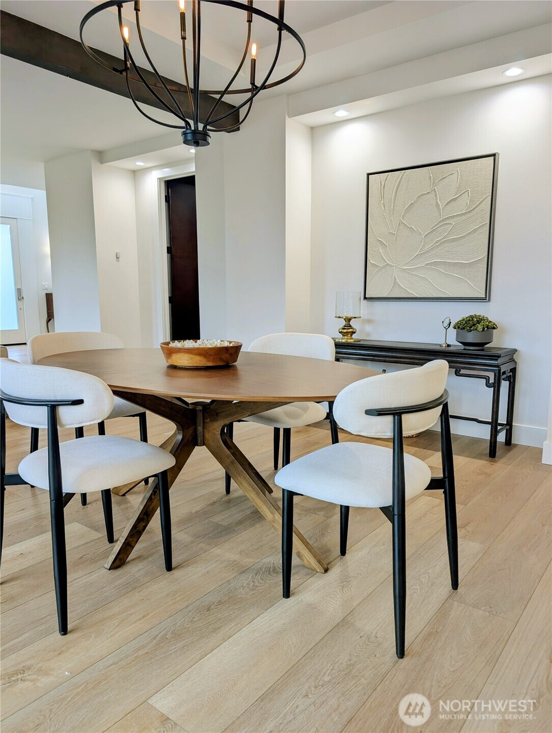The Gabriel, by Connie Kay Design, is a distinguished new-construction residence within the exclusive Bradford Development—a boutique collection of 12 luxury homes. This French-inspired home showcases elevated craftsmanship, refined finishes, and an exceptional level of detail that sets it beyond standard construction. The custom walnut staircase bridges the towering foyer and crystal chandelier, creating awe from the moment you arrive. The kitchen is a statement of form and function, featuring soft-close custom cabinetry, a prep sink, pot filler, high-end appliances, custom walnut hood, large island, and generous walk-in pantry. An expansive wood-wrapped covered patio, complete with skylights, makes for effortless entertaining. The main level’s exposed beams and abundant natural light combine with a sophisticated layout including a walnut-paneled home theater with under-cabinet beverage cooler, a bedroom with en-suite bath, and one of two conveniently located utility/laundry rooms. Upstairs, the primary suite hosts dual walk-in closets and French doors opening to a private balcony with a peekaboo water view. The bathroom showcases rich forest views, a luxurious tiled shower, a large soaking tub, and custom cabinets with toe-kick lighting. With exceptional attention to design, the craftsmanship of this home defines The Gabriel—where refined French architecture meets modern luxury living. All just minutes from historic Steilacoom, the ferry, beach, and waterfront parks.