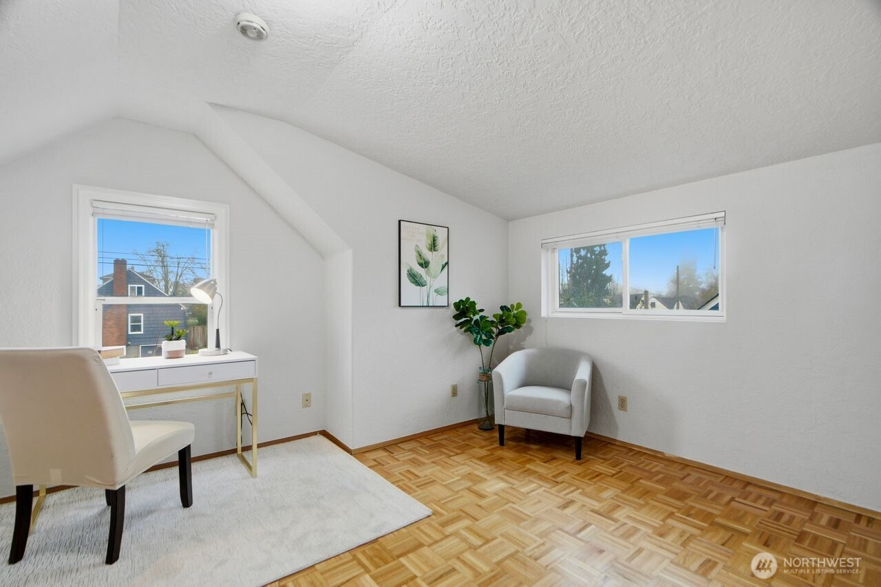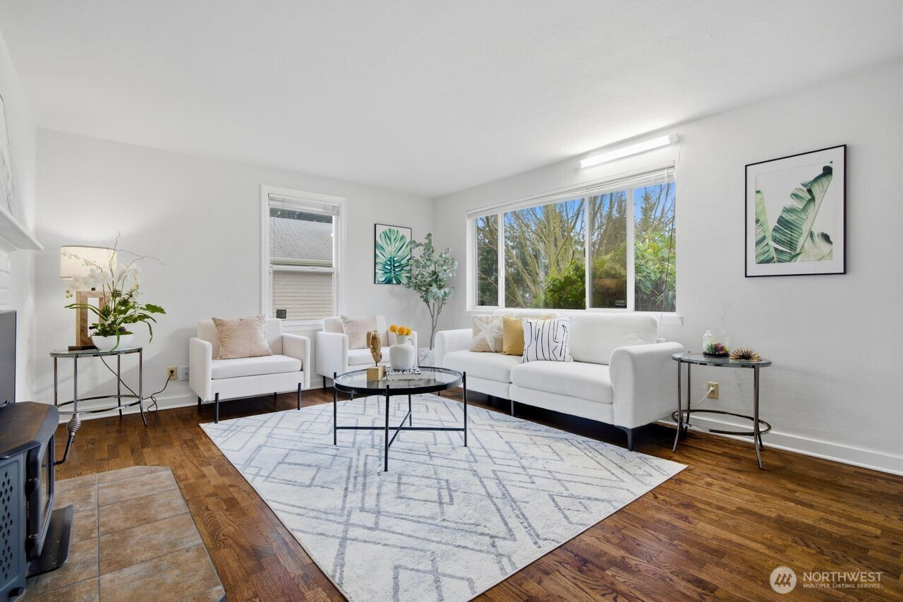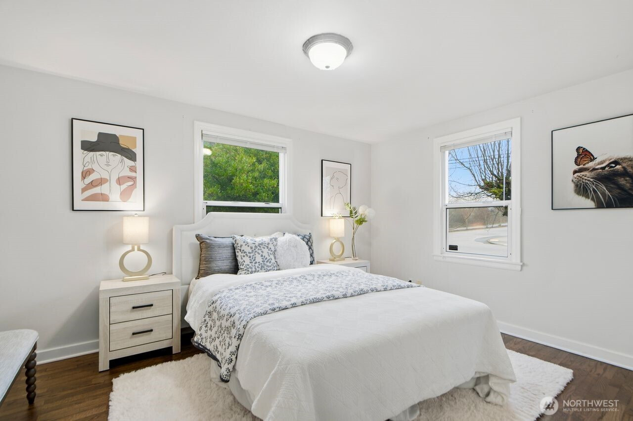 Rare opportunity to own this charming bungalow on a private dead-end street with an oversized lot and abundant storage. The property features a large 27’ x 38’ garage plus an additional 976 SF side yard with water and power, offering exceptional flexibility for a shop, vehicles, boats, toys, or even a camper/RV. Inside, the main level includes a comfortable living room, kitchen with breakfast bar, dining area, two bedrooms, and a beautifully remodeled bathroom. Upstairs offers a spacious primary suite with walk-in closet, a 3/4 bath, and a fourth bedroom. Situated on a desirable corner lot at the end of a quiet street, this home enjoys a peaceful setting with a peek-a-boo view of the Narrows Bridge. Conveniently located just minutes to Highway 16, Point Defiance Park, Ruston Way waterfront, and more. A rare find with excellent ADU/DADU potential—don’t miss this unique offering!