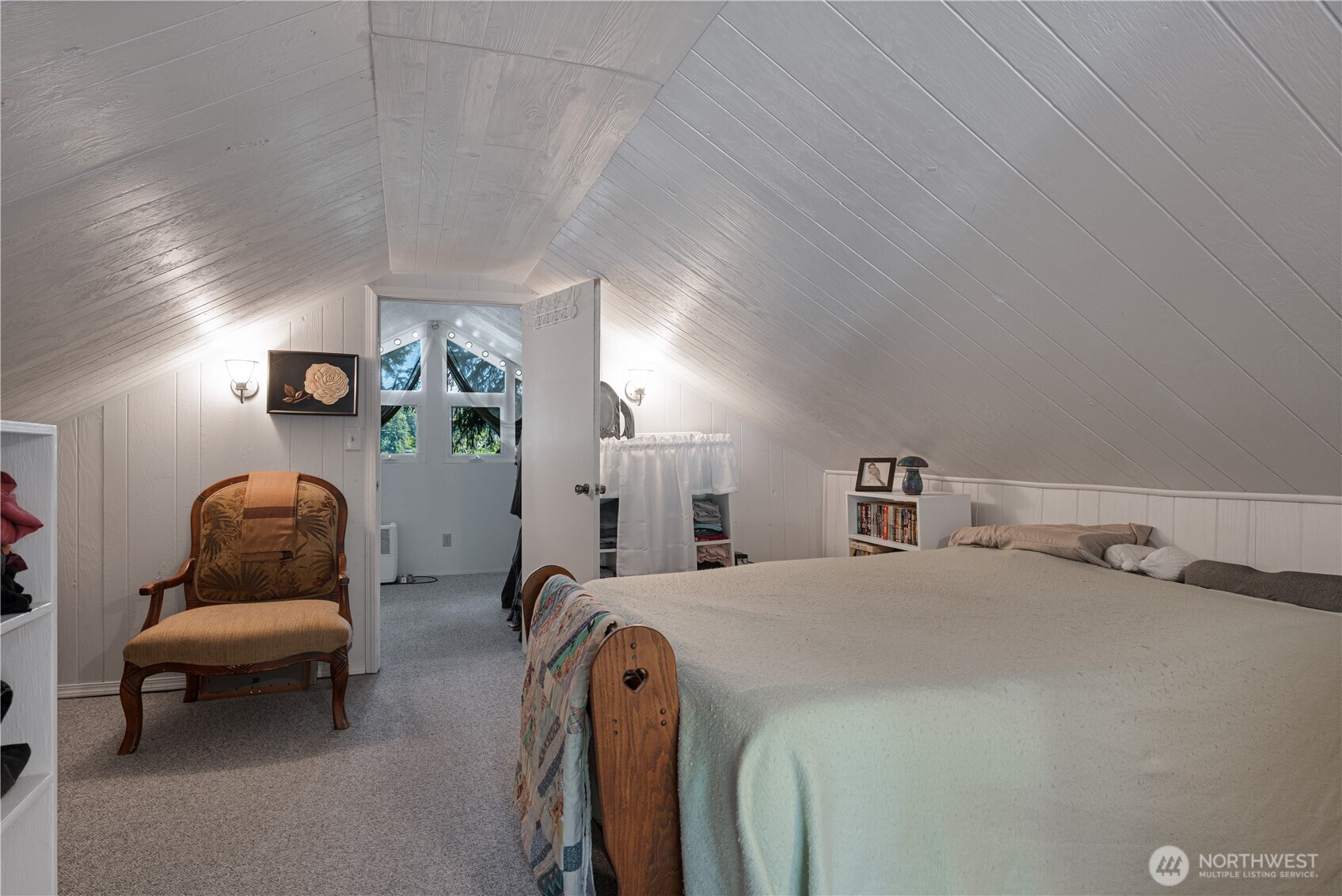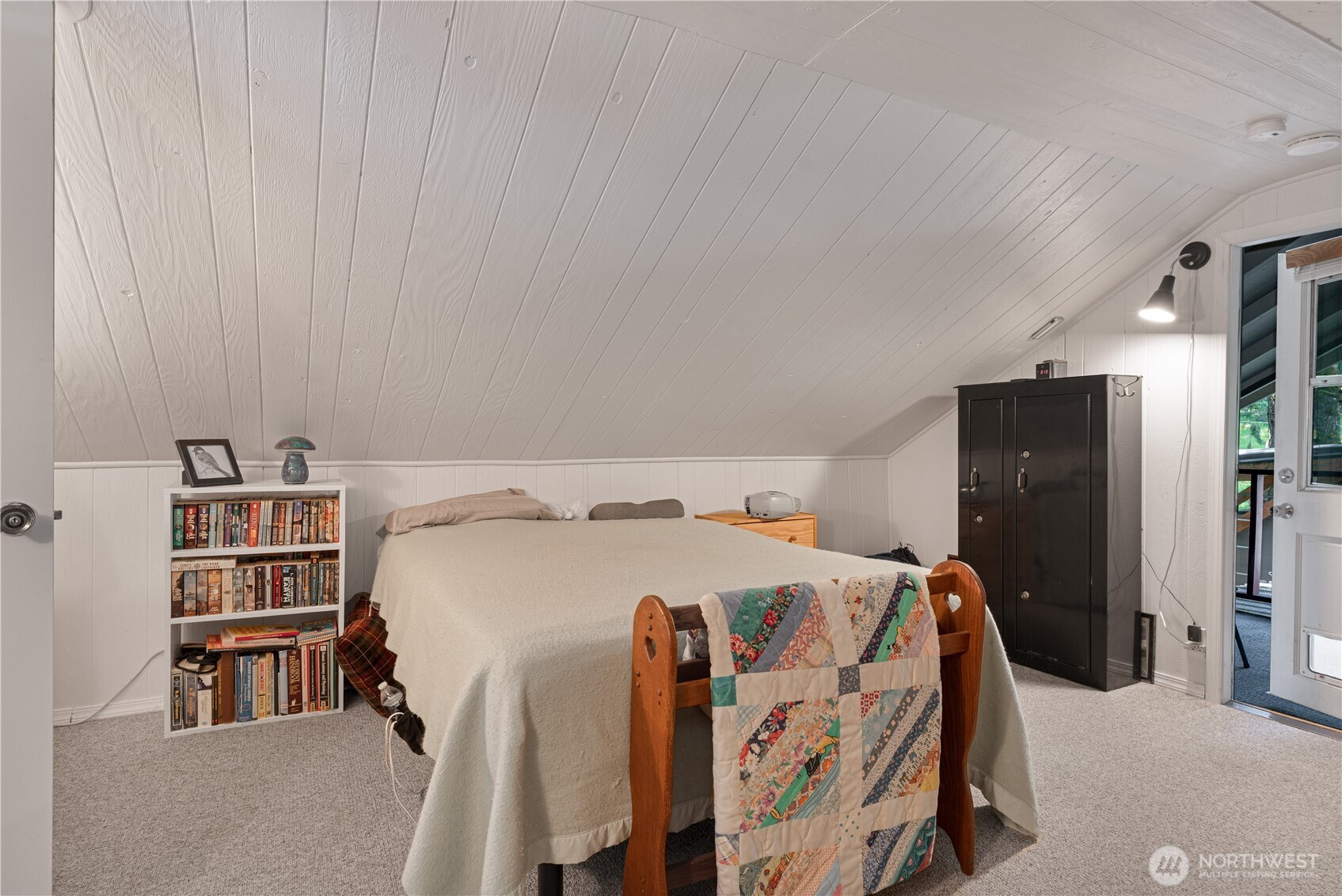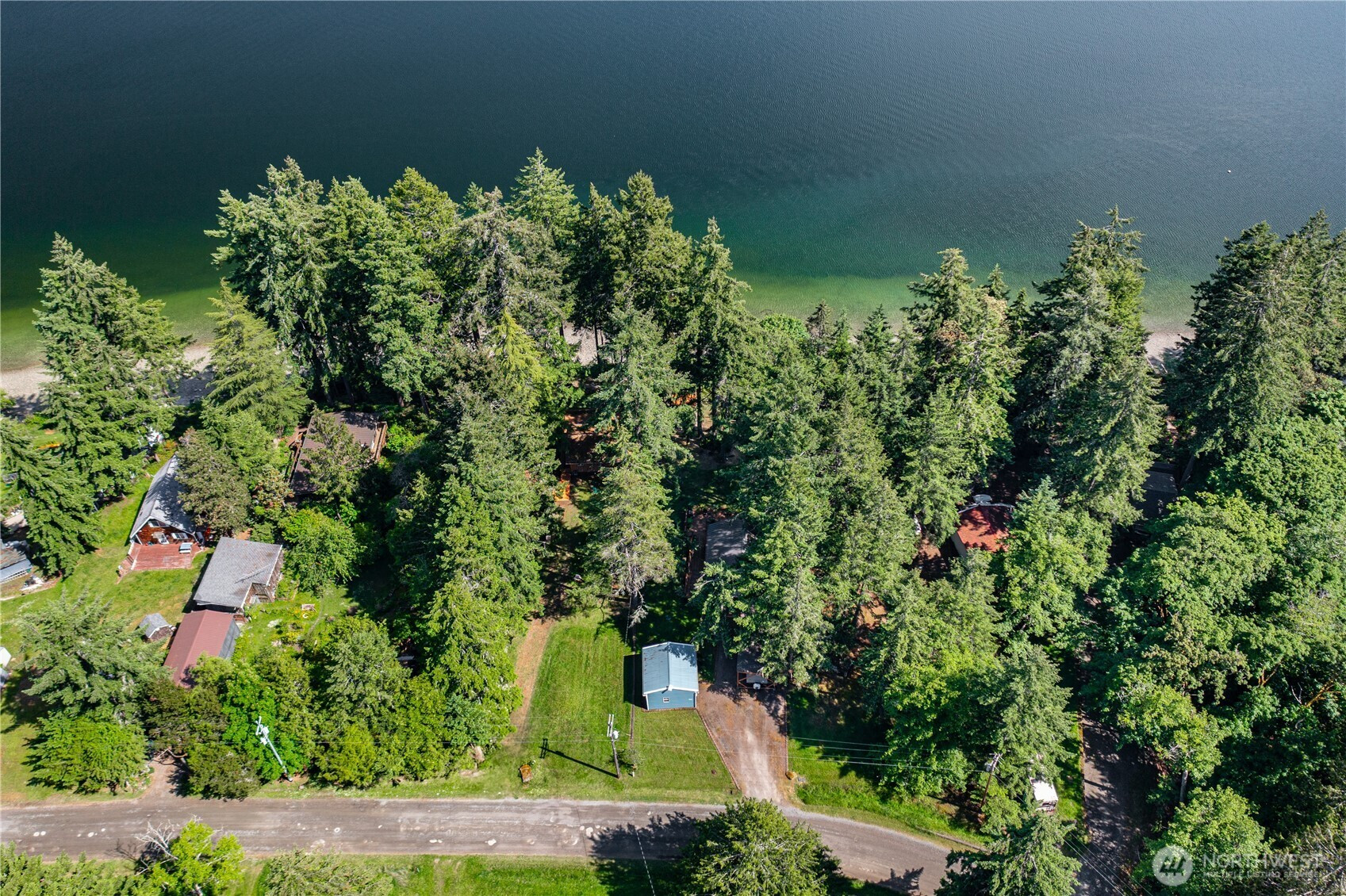 Perched above 60 feet of east-facing waterfront, including tidelands, this inviting island cabin offers the kind of peaceful escape that feels worlds away from the city — yet close enough for an easy weekend retreat. From its medium-bank setting, enjoy sweeping water views and breathtaking sunrises that greet you each morning in soft coastal light. Inside, the open living, dining, and kitchen area creates a relaxed gathering space — ideal for slow mornings, shared meals, and reconnecting without distractions. A ¾ bath and laundry are conveniently located on the main floor. Upstairs, two cozy bedrooms provide restful retreats, with the larger bedroom opening onto a covered deck — a quiet perch for morning coffee and the gentle rhythm of island life. The expansive wooden deck invites long, unhurried afternoons and easy evenings outdoors. The level 0.41-acre lot offers space to garden, play, or simply breathe a little deeper and enjoy the privacy. Whether you're looking for a weekend getaway from the city or a simpler full-time lifestyle, this cabin delivers water views, coastal charm, and that unmistakable sense of calm that only island living provides. A covered trailer is included at no cost to the buyer for overflow guests (or can be removed if preferred) and the 20’ x 18’ powered metal shop adds flexibility for storage, hobbies, or all your island gear.Wake with the sun, slow your pace, stay awhile! Community features: boat ramp, seasonal boat docks plus so much more!