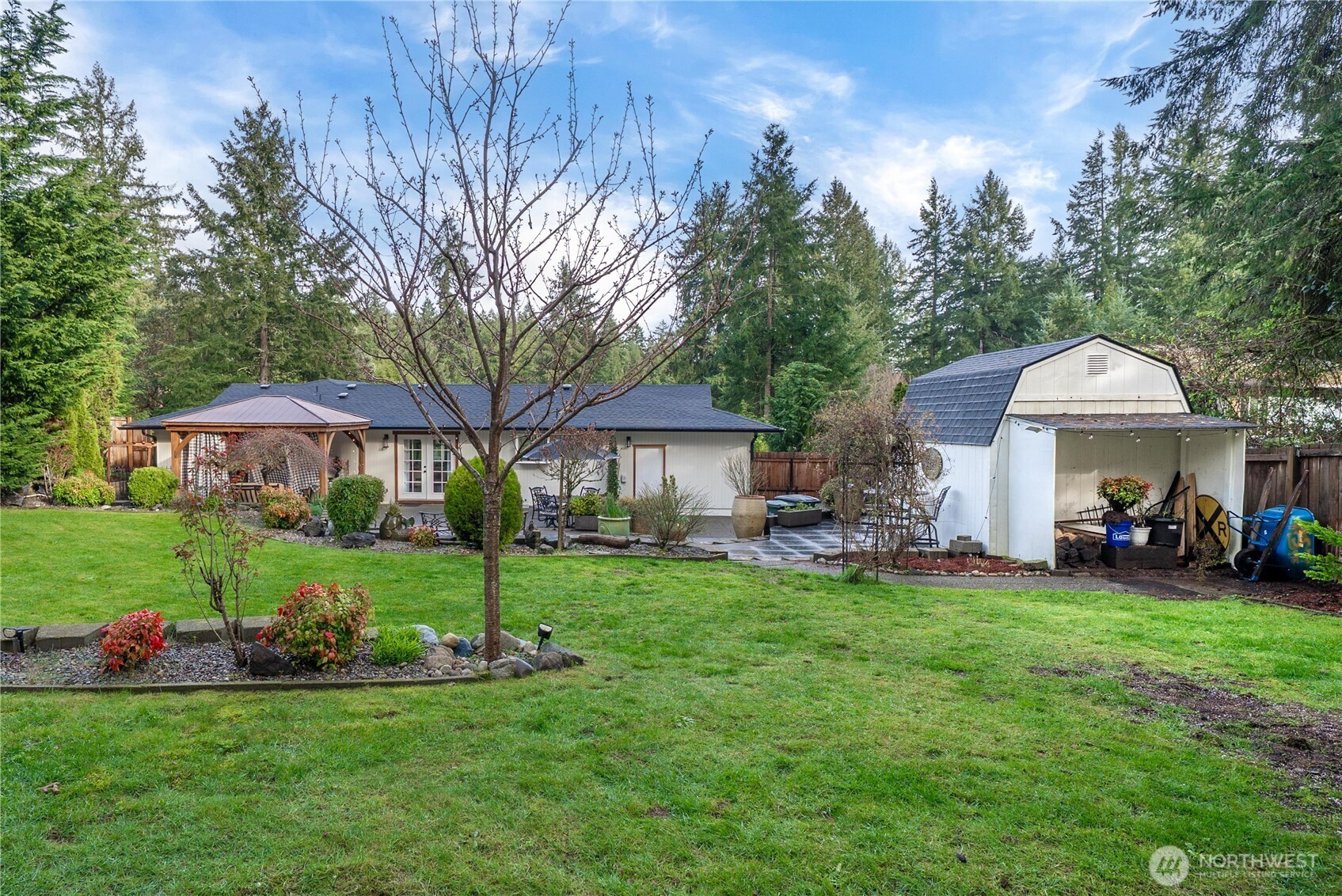 Welcome to this beautifully updated rambler on a spacious lot with mature, well-maintained landscaping and extensive hardscape features. The open-concept layout offers a bright and inviting space for everyday living and entertaining. The kitchen features granite countertops, updated cabinetry, newer appliances, and added lighting. Recent upgrades throughout the home include new flooring, fresh interior paint, updated trim, and modern light fixtures. The primary suite includes an updated vanity and backsplash, along with new ceiling fans in all bedrooms for added comfort. Major improvements such as a newer roof in 2024, new gutters in 2025, exterior paint, garage doors, and exterior lighting provide peace of mind. Enjoy the large yard with a pergola, thoughtfully designed outdoor spaces, and quality landscaping that has been carefully maintained. This home is move-in ready with upgrades inside and out.