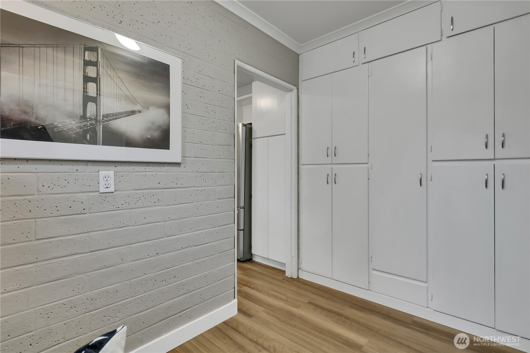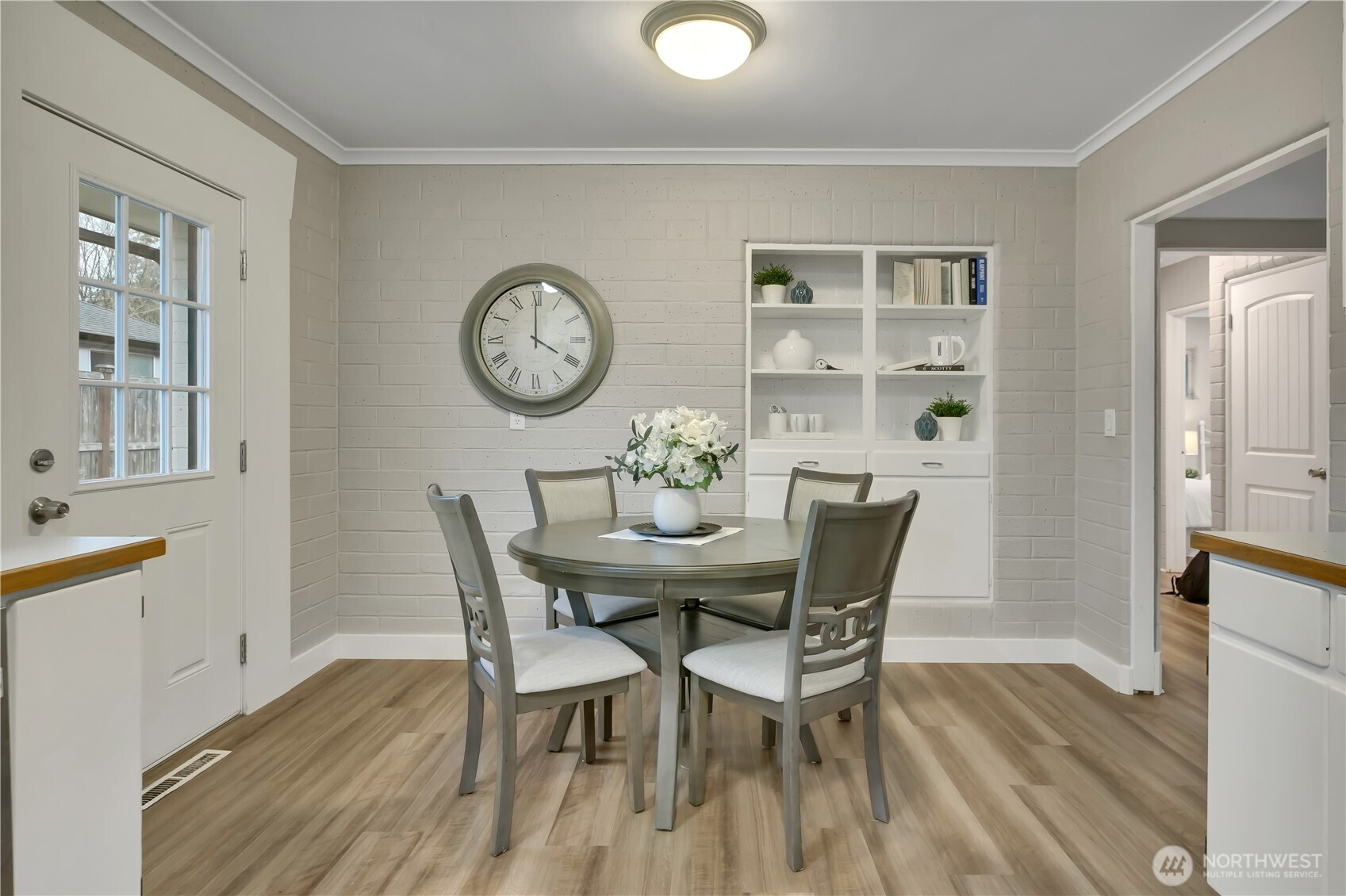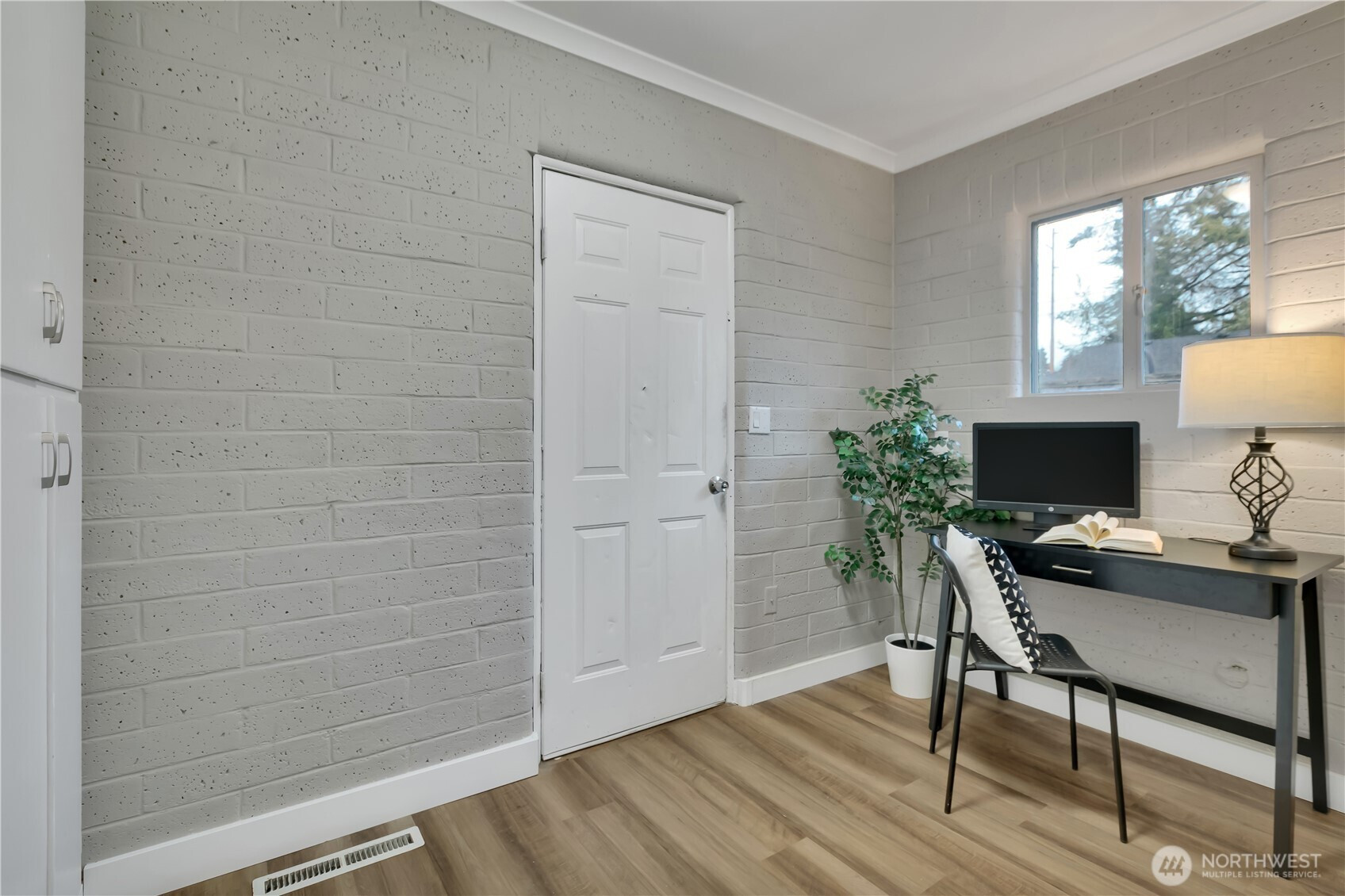 Timeless Mid-Century 1950 Brick Rambler on Lg Corner lot w/extensive RV/Boat Parking in Waller. Close to charming dt Puyallup, Tacoma, transit/train station, 512, I-5 & JBLM. NEW LVP floors throughout! Covered front porch opens to coffered ceilings & classic molding. Lg living rm w/cozy wood-burning fireplace. Kitchen w/ample counterspace, roll-out shelves & dining area. Hallway leads to primary bdrm w/dual closets, 2nd bdrm w/WIC & full bath w/wainscoting. Classic built-in storage in primary bdrm, dining area & in the pantry/office/storage room behind the kitchen. Oversized garage w/work shop/utility area/storage & access to fully fenced backyard, patio & storage shed. Lg yard w/raised garden & flower beds. Award-winning Puyallup Schools
