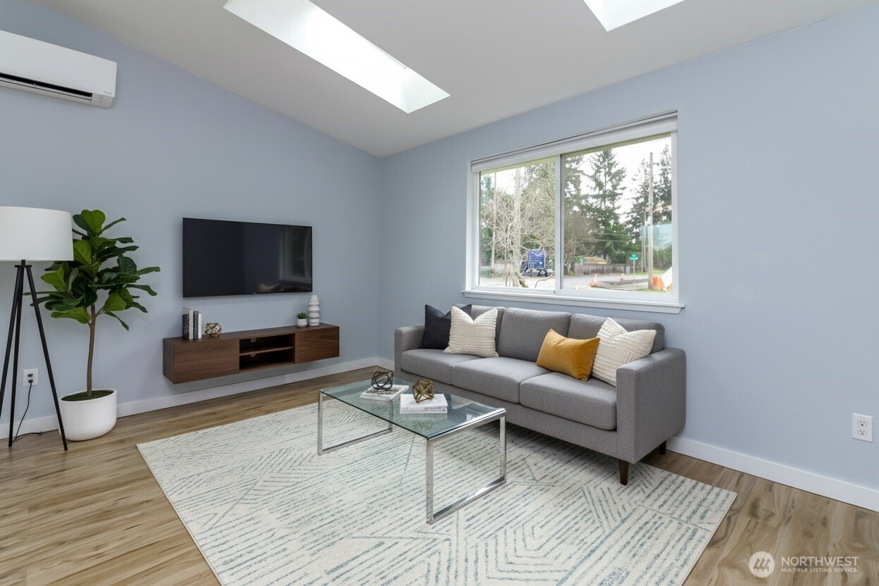 (503) 893-8874Amazing rambler home on a generous .26-acre lot with 3 bedrooms and one bath. Home has been well maintained and is move in ready. Enter into warm laminate flooring as the living room smoothly connect to the dining area, which offer a sliding glass door to an expansive deck and a beautiful large backyard that is pet friendly, perfect for gardening, and features a fire pit area for relaxing evenings. There is ample space for gatherings and entertaining, with a floor plan that effortlessly supports hosting. Skylights and large windows provide wonderful light throughout, the primary bedroom boasts a walk-in-closet, and the beautiful completely remodeled bathroom connects to the bedroom from the hallway for added convenience. This home is nicely situated on a .26 acre fenced corner lot with vinyl windows, newer ductless heat and ac units, large storage shed and RV parking. Home is in a great location close to all amenities, freeway access, and Joint Base Lewis-McChord. Listing has been virtually staged