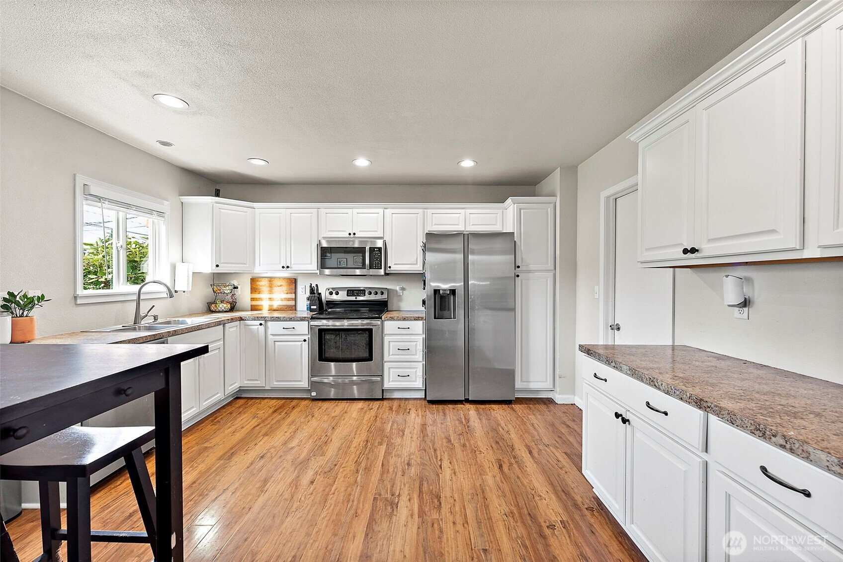 Charming and move-in ready home in the heart of downtown Puyallup! This 3-bedroom home blends classic character with thoughtful updates throughout. Recent improvements include a brand new roof, all-new exterior paint, plumbing and electrical has been updated, offering peace of mind and standout curb appeal. Inside, you’ll find a bright kitchen with white painted cabinetry, an updated bathroom, and a functional layout designed for everyday living. Step outside to a fully fenced, flat yard—perfect for pets, play, or entertaining. A detached shop with additional parking behind provides incredible flexibility for hobbies, storage, or extra vehicles. Conveniently located near parks, schools, shopping, dining, and commuter routes. You're not going to want to miss this one!