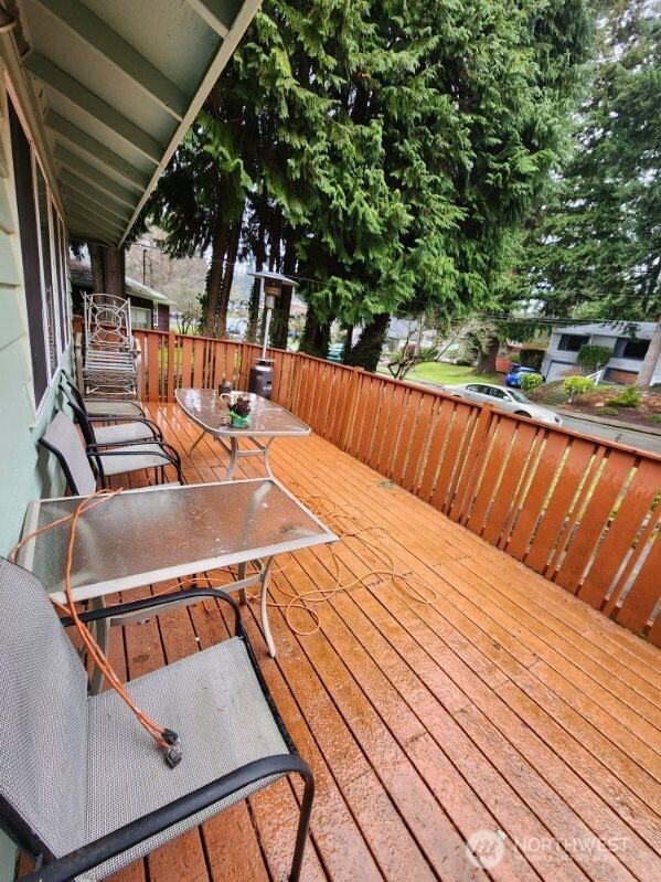 Location location location is what this 4 bedroom 2.25 bathroom split level home is all about. Comfortable enough to move into and slowly reenvision to your personal aesthetic taste over time, the literal meaning of sweat equity! The backyard is partially fenced and backs up to a park known as the "Tot Lot". In the backyard there's also a darling deck which is designed around one of the evergreens Fircrest is known for, back yard is plumbed/wired for a hot tub, shed and wood shed stay too. Next to parks, Fircrest Community Center, shopping, golfing, schools, this house is the one you've been waiting for. Two woodburning fireplaces, decks, original cabinetry, plenty of storage, four bedrooms, 2.25 bathrooms, plenty of room for your needs. All this and air conditioning too! Nudge this retro home into the next generation using your palette and creative design. Sold as is.