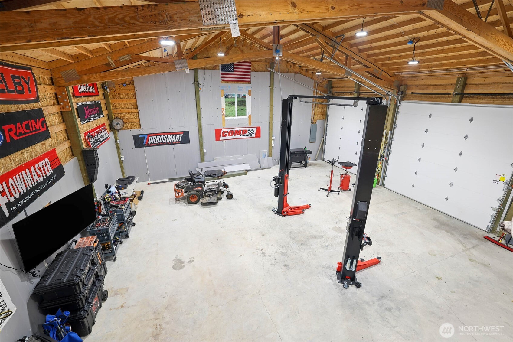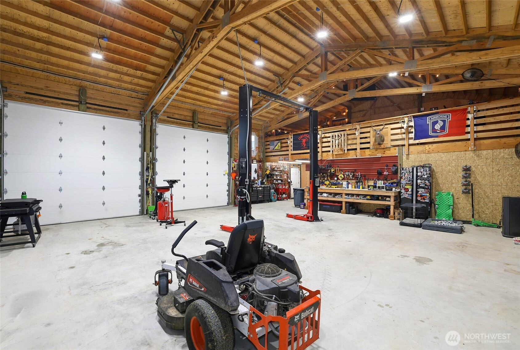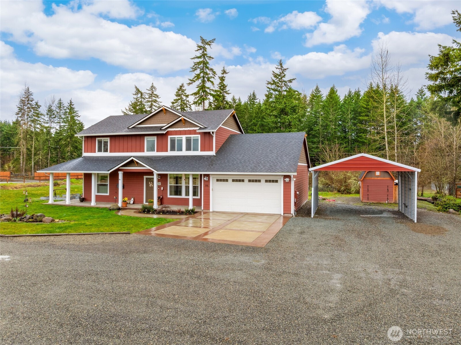 Experience the ultimate Pacific Northwest lifestyle in this stunning shy 4-acre gated estate, where modern luxury meets professional-grade utility. This meticulously maintained 2,000 sq. ft. home is designed for long-term comfort, featuring a coveted primary suite on the main floor and a bright, open-concept living area. The heart of the home boasts a chef’s kitchen with crisp quartz countertops, farmhouse-style cabinetry, and stainless steel appliances, all flowing toward the expansive covered wrap-around porch—the perfect vantage point to soak in the breathtaking, unobstructed mountain views. For the hobbyist or entrepreneur, this property is a rare find. The crown jewel is the extra-large detached shop, a professional workspace featuring a heavy-duty car lift that stays with the property. Storage is effortless with extra outbuildings, including a high-clearance RV/boat carport and a matching storage shed. From sleek barn doors and vaulted ceilings inside to functional exterior storage, every inch has been thoughtfully upgraded. The land is a standout: a level, 100% usable lot offering total privacy. A long driveway leads through a solar-powered security gate to vast lawns and a majestic evergreen perimeter. Whether you dream of a hobby farm, a massive garden, or a secure mountain sanctuary, this turnkey compound is ready for your next chapter. This is more than a home; it's the lifestyle you've been waiting for.