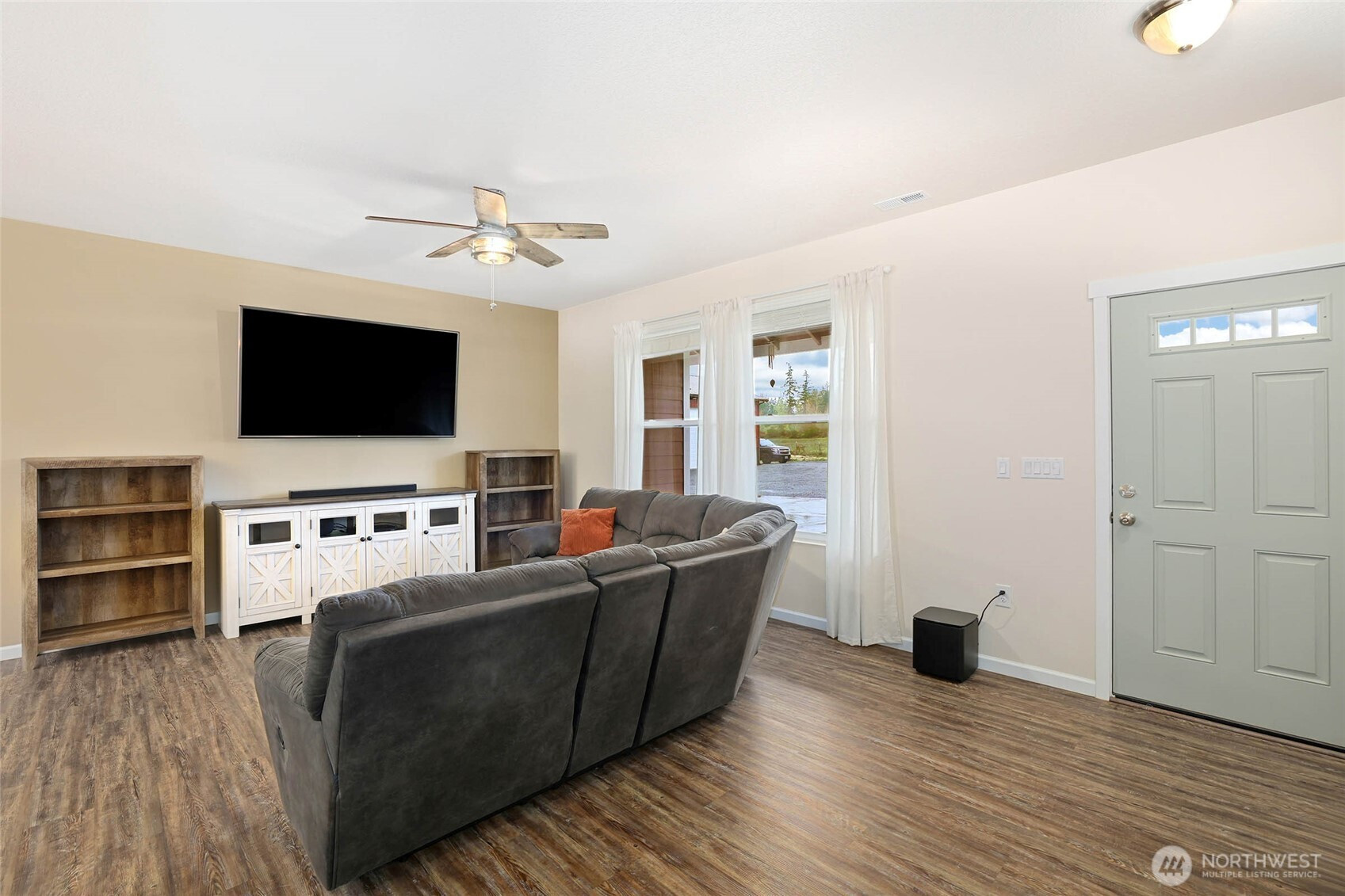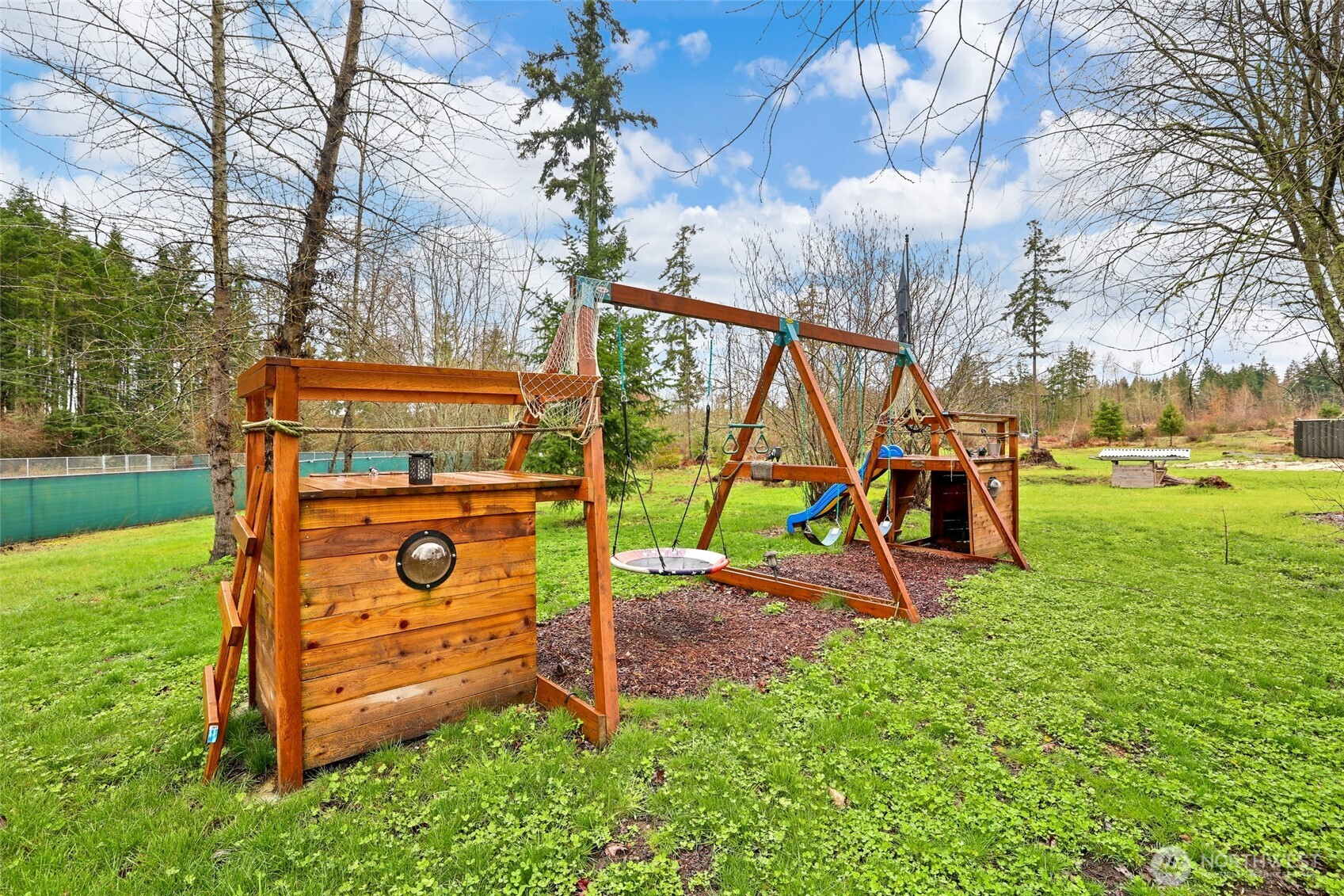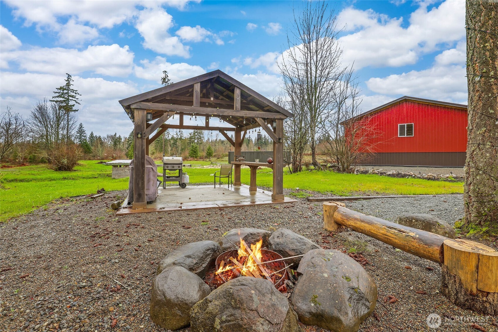 Experience the ultimate Pacific Northwest lifestyle in this stunning shy 4-acre gated estate, where modern luxury meets professional-grade utility. This meticulously maintained 2,000 sq. ft. home is designed for long-term comfort, featuring a coveted primary suite on the main floor and a bright, open-concept living area. The heart of the home boasts a chef’s kitchen with crisp quartz countertops, farmhouse-style cabinetry, and stainless steel appliances, all flowing toward the expansive covered wrap-around porch—the perfect vantage point to soak in the breathtaking, unobstructed mountain views. For the hobbyist or entrepreneur, this property is a rare find. The crown jewel is the extra-large detached shop, a professional workspace featuring a heavy-duty car lift that stays with the property. Storage is effortless with extra outbuildings, including a high-clearance RV/boat carport and a matching storage shed. From sleek barn doors and vaulted ceilings inside to functional exterior storage, every inch has been thoughtfully upgraded. The land is a standout: a level, 100% usable lot offering total privacy. A long driveway leads through a solar-powered security gate to vast lawns and a majestic evergreen perimeter. Whether you dream of a hobby farm, a massive garden, or a secure mountain sanctuary, this turnkey compound is ready for your next chapter. This is more than a home; it's the lifestyle you've been waiting for.