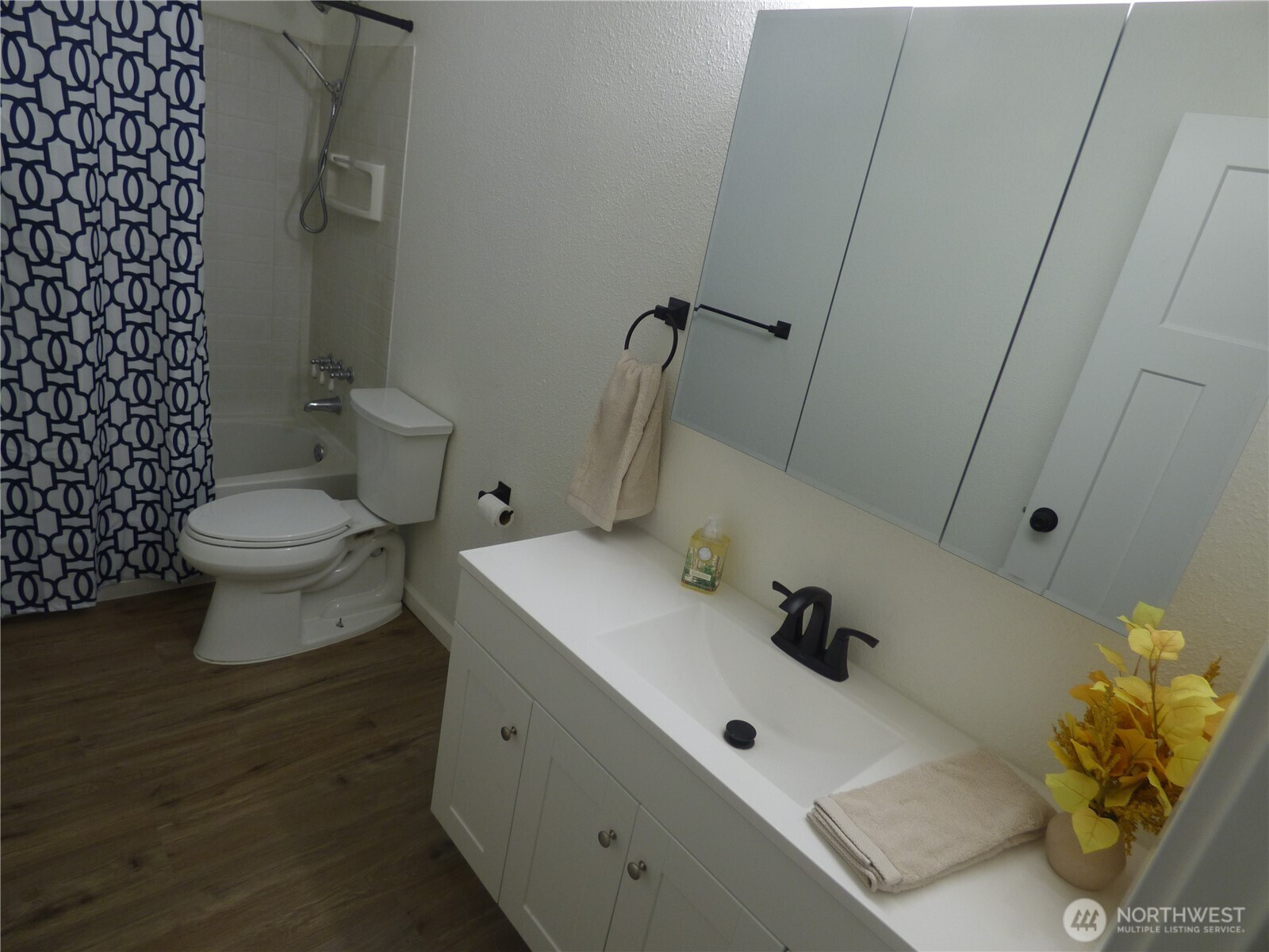 All new from floor to roof on this inviting Steilacoom single story home! Everything has been updated inside including all new vinyl plank flooring, paint, trim and doors, kitchen cabinets and quartz countertops, brand new appliances, bath with new vanity and countertop, and fresh carpet in the bedrooms. Enjoy peace-of-mind with a brand new roof with warranty. Property is adjacent to a long driveway and is situated like a corner lot and is 7,200 sq/ft with room to expand or add parking. Handy attached garage with new door. Recent exterior paint and all brand new windows! Stress free drive to JBLM and shopping, and just a few steps from the waters of the Puget Sound. Welcome home!