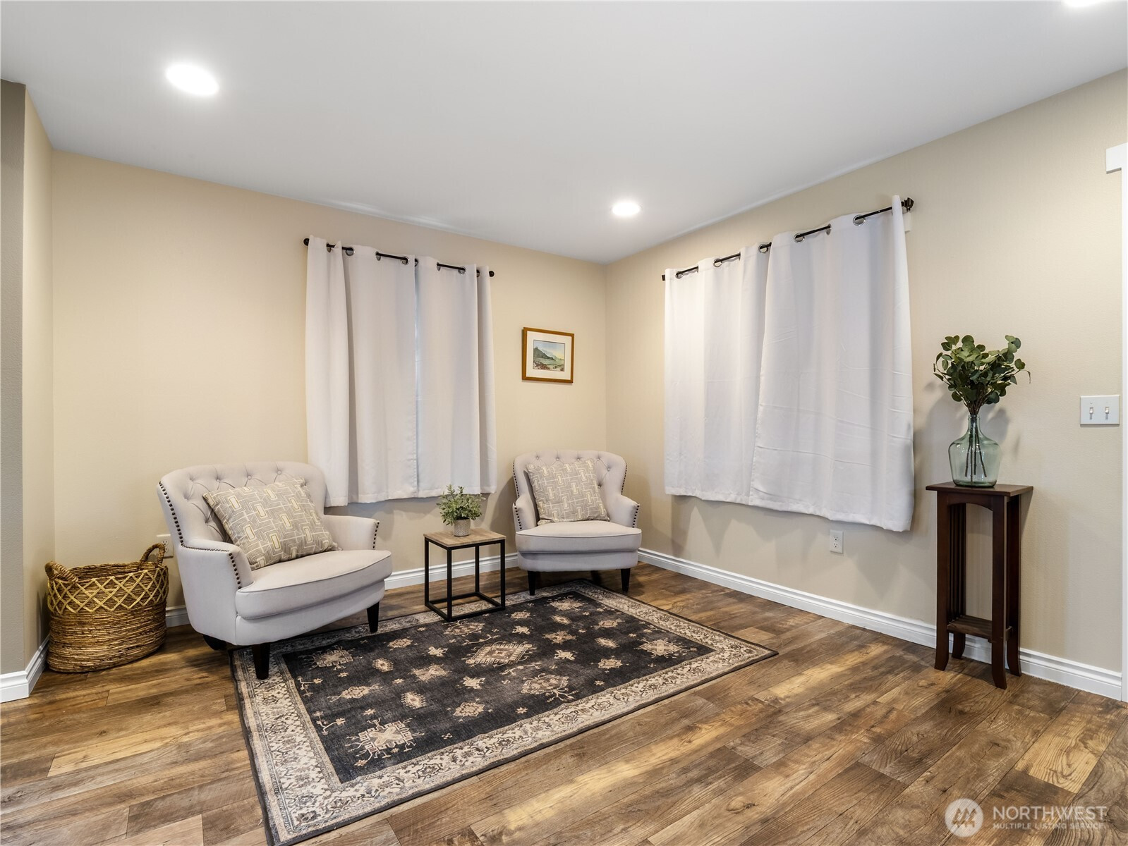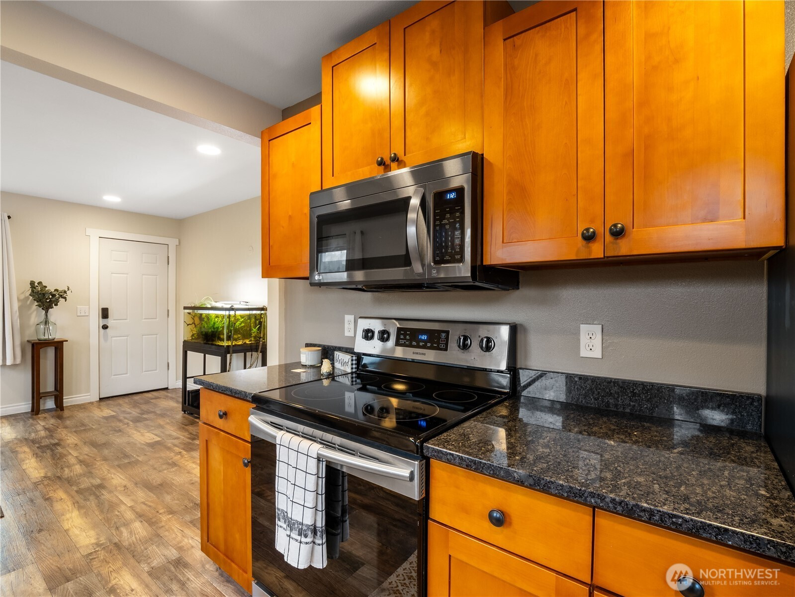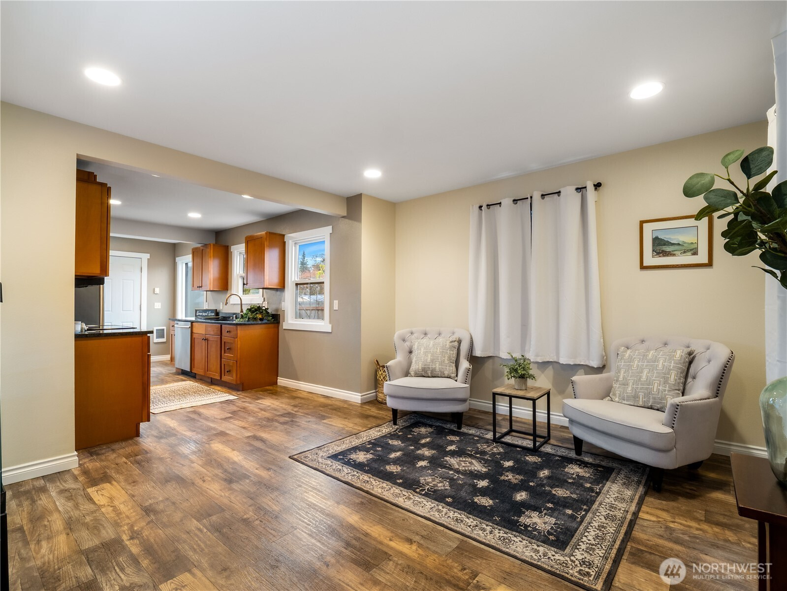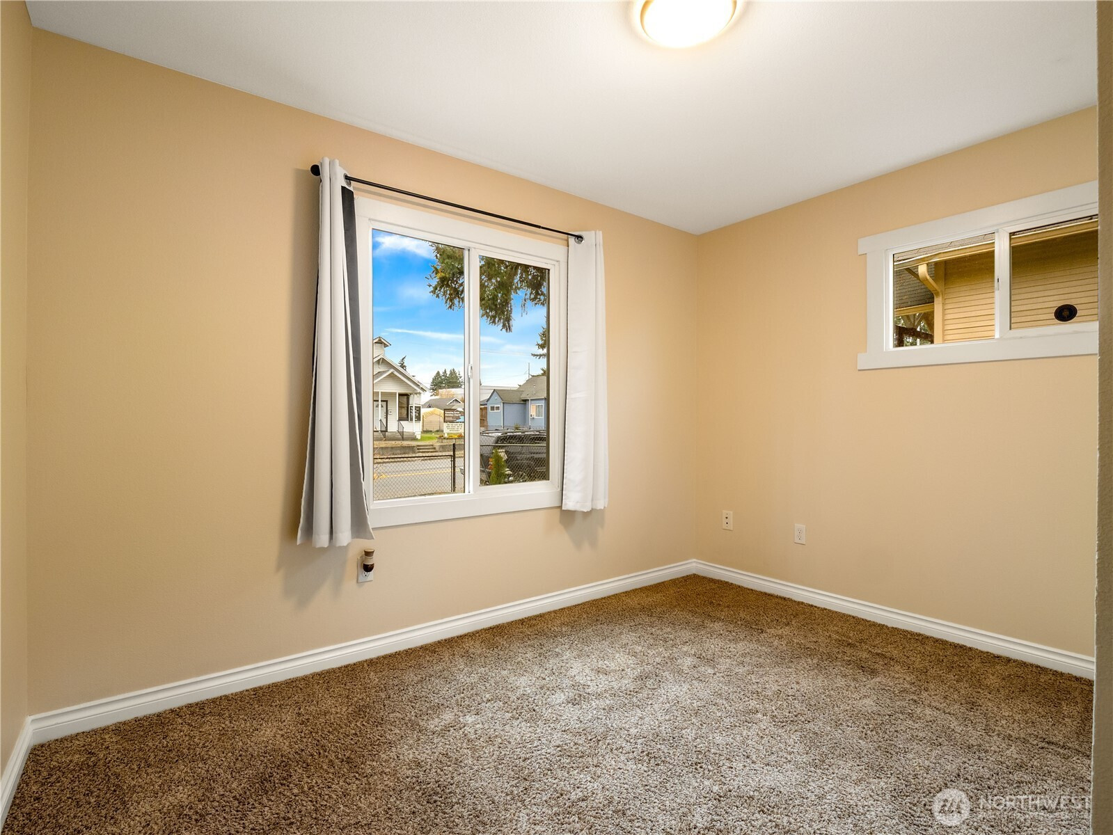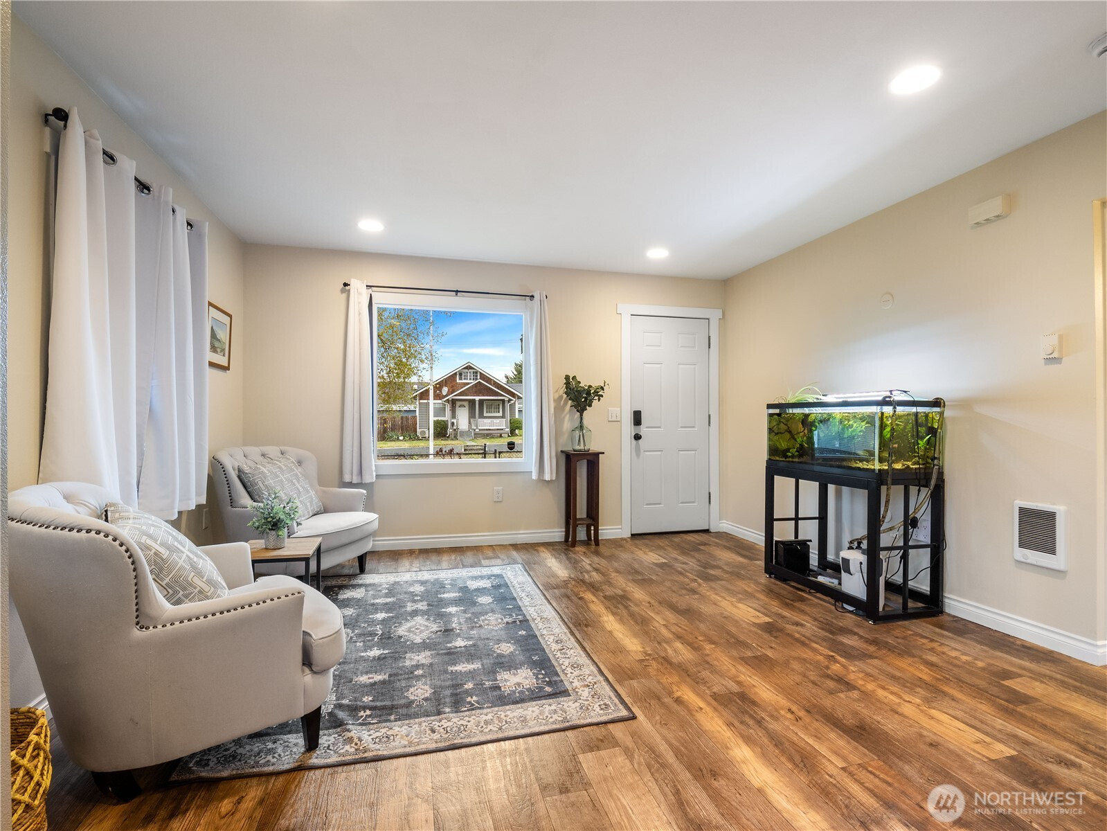 This charming 2-bedroom, 1-bath bungalow sits on a desirable corner lot near the Tacoma Mall. The open kitchen flows into the living room and features a cozy breakfast nook. Just off the main living area are two bedrooms and a full bath. The home includes granite countertops, stainless steel appliances, and newer LVP flooring, along with fresh interior paint throughout. A washer/dryer combo is also included. The private backyard offers a patio area, raised garden beds, fruit trees, and full cedar fencing for added privacy. Gated alley access leads to a single-car garage w/ parking area inside gate. Conveniently located just minutes from freeways, shopping, and schools. Additional updates include a newer roof, water heater, and electrical.