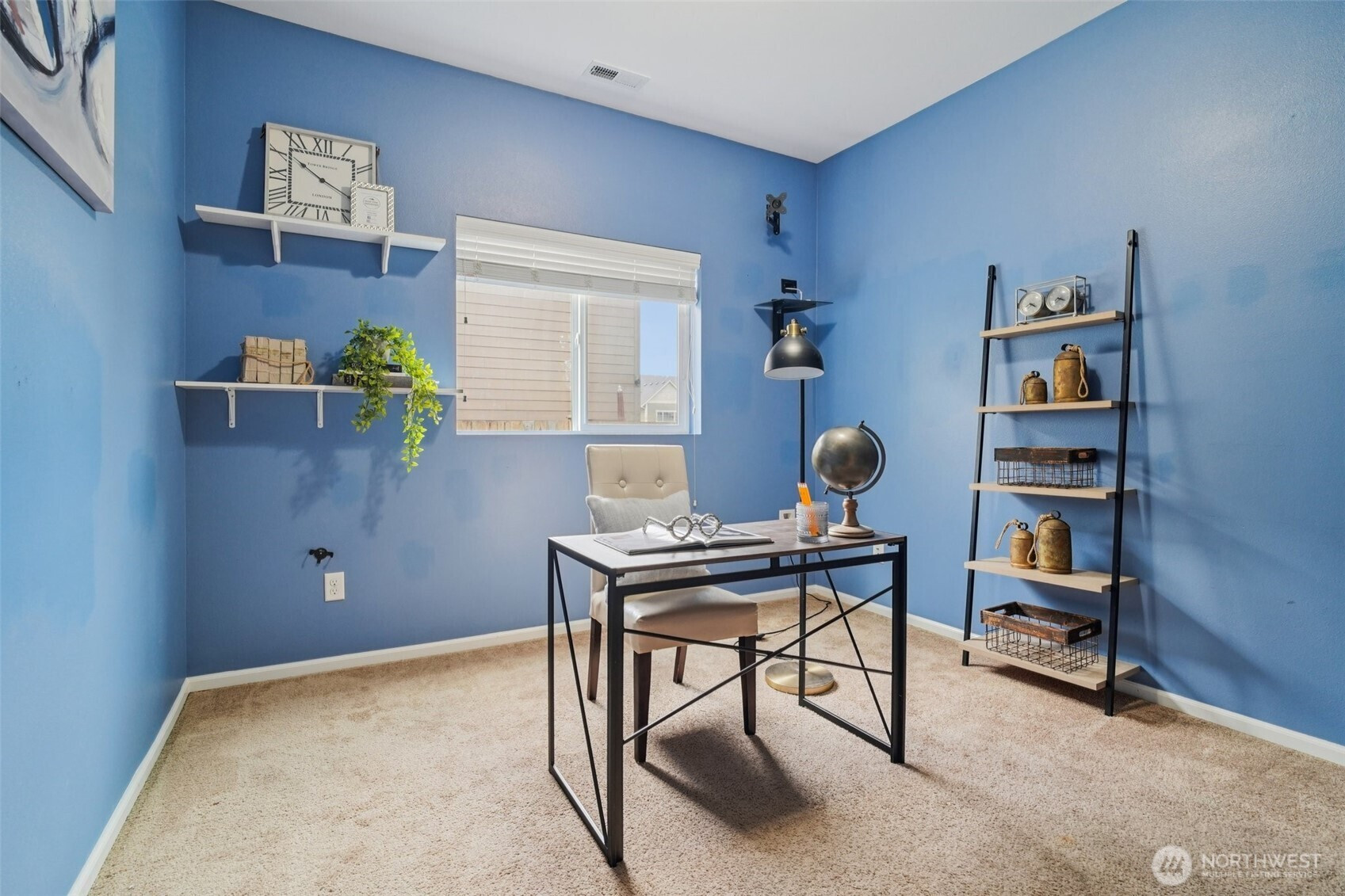 Spacious 5-bed, 2.75-bath home in sought-after Fredrickson Estates! Features include fresh exterior paint, new LVP flooring on the main level, A/C, and a rare main-floor bedroom with ¾ bath—ideal for guests or multi-generational living. Open kitchen with gas stove flows into cozy living area with gas fireplace. Upstairs primary suite offers dual vanities, soaking tub, walk-in shower, and custom walk-in closet. Additional upstairs bedrooms plus bonus room and convenient utility room. Enjoy a fully fenced backyard with dog run and peaceful greenbelt views. 3-car garage with built-in storage. Prime location near community park, shopping, and multiple grocery stores just minutes away.