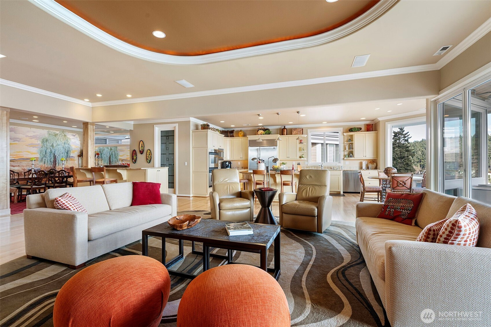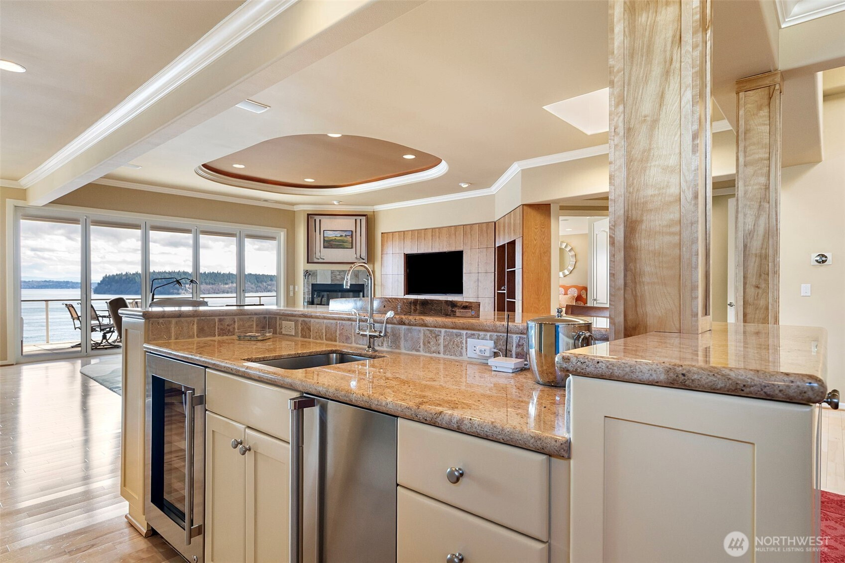 Perched above the shoreline near downtown Gig Harbor, this exceptional single-level condo offers refined waterfront living with sweeping views of the Harbor, Puget Sound, and iconic Mount Rainier. Spanning approximately 3,200 square feet, the thoughtfully designed layout blends sophistication with comfort—ideal for downsizers seeking space without compromise. Expansive sliding doors that frame ever-changing vistas of boats, eagles, and occasional orcas, while a fireplace anchors the elegant great room. The chef’s kitchen is beautifully appointed with high-end appliances, a walk-in pantry, a wet bar that includes an icemaker and wine fridge, all flowing seamlessly into the main living areas for effortless entertaining. A generous covered patio extends the living space outdoors, creating a private retreat to relax and take in the beauty of the Harbor.Luxury, convenience, and breathtaking views—this is waterfront living at its finest.