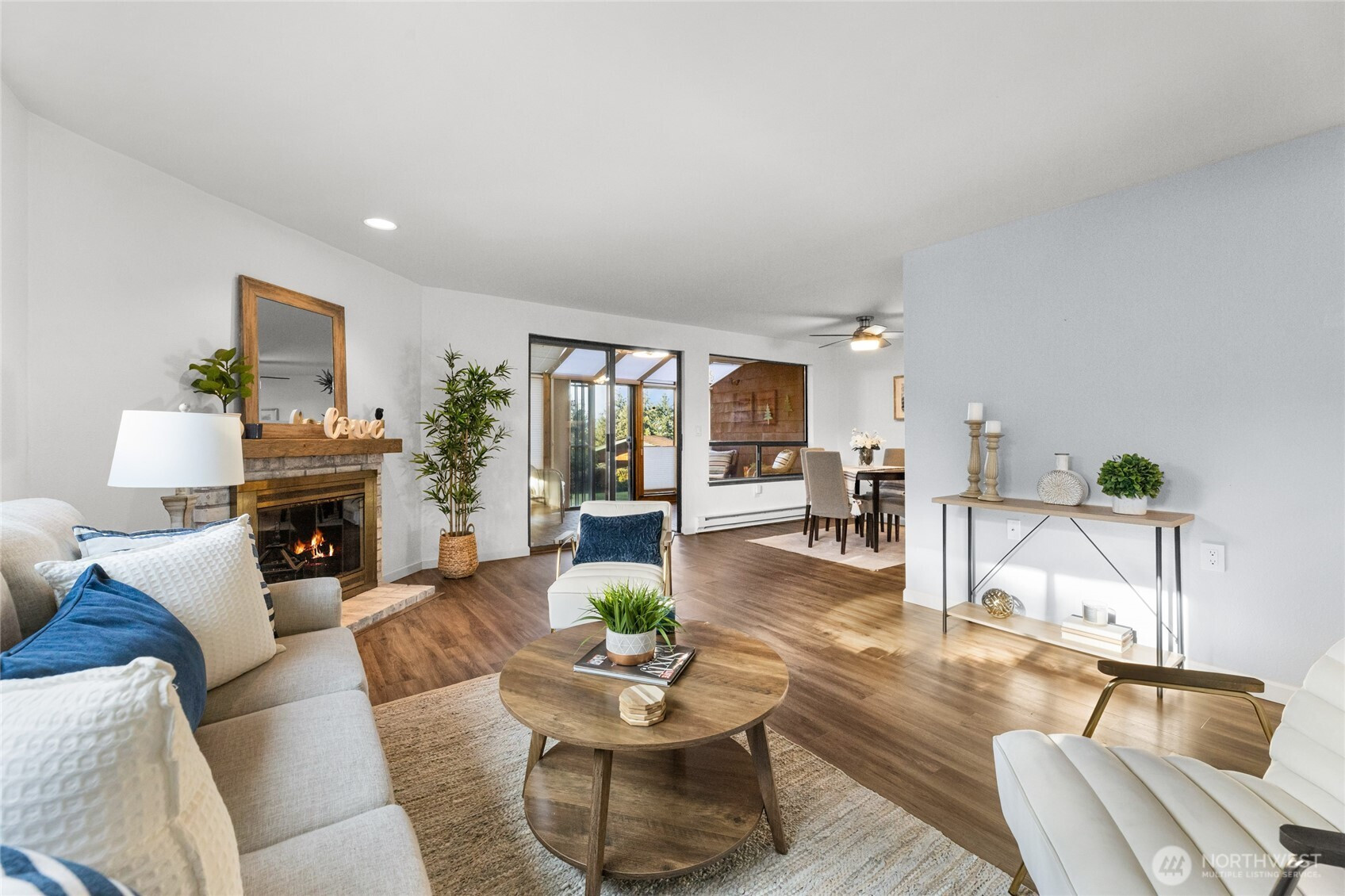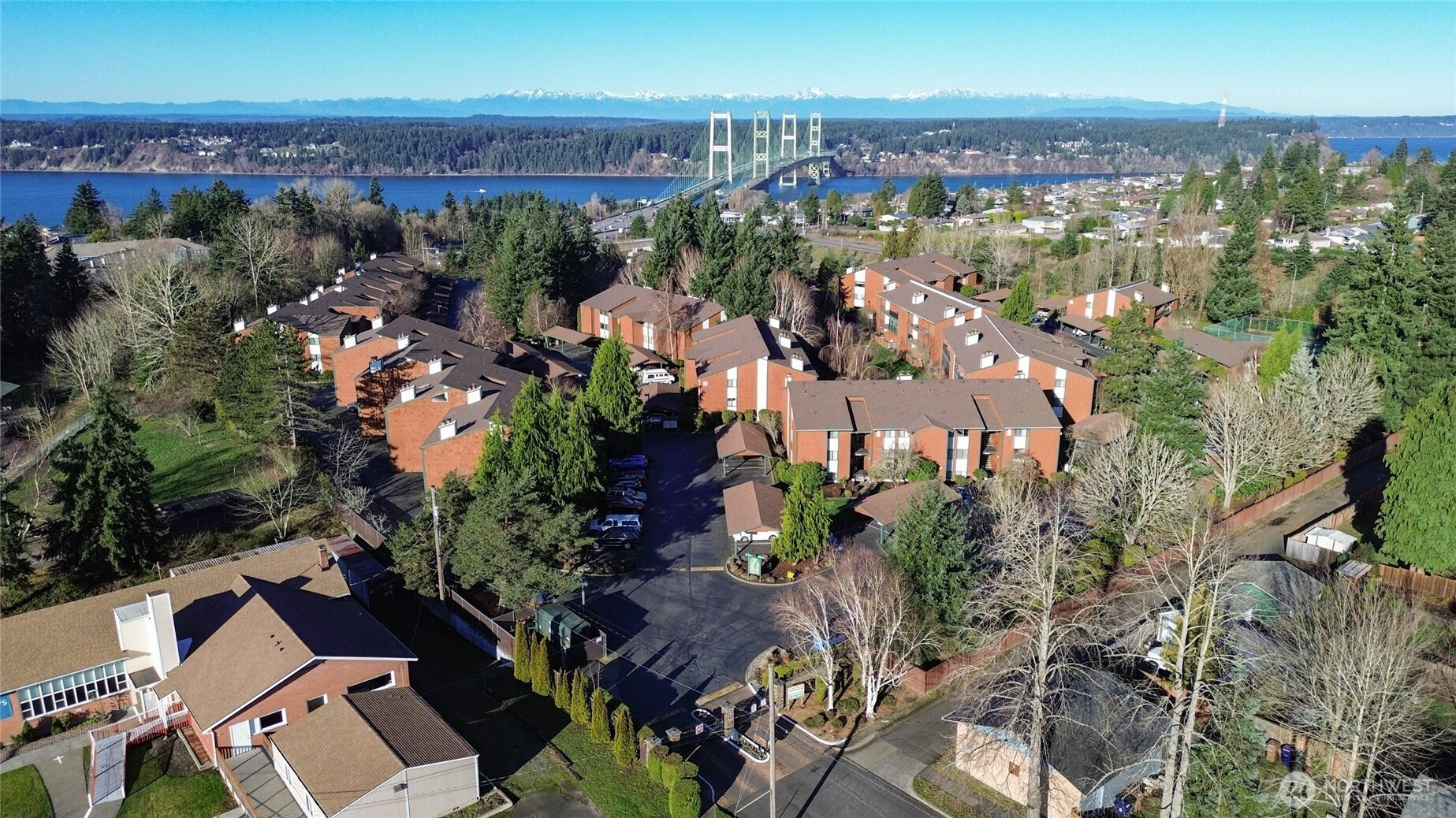 This adorable, North End, main level, corner unit condo is walking distance to restaurants, shops and the waterfront with views of the Narrows Bridge from the patio. Open concept living with a spacious living room which flows into the dining and kitchen and steps out to a fully enclosed 4-season porch with electricity, which could be office, guest space or for outdoor enjoyment. Primary bedroom with bath featuring walk-in shower plus a 2nd bedroom and full bath. Newer floors, paint & carpets. Laundry & storage in unit. You will feel like you are on vacation as Sunset Plaza is a premier, gated community with an outdoor pool, tennis court, a clubhouse with workout room, sauna, kitchen & pool table and more. Located right off 6th Avenue & Pearl you are close to freeways, Point Defiance Park, Trader Joe's, Whole Foods & every amenity you can think of! Pets allowed.